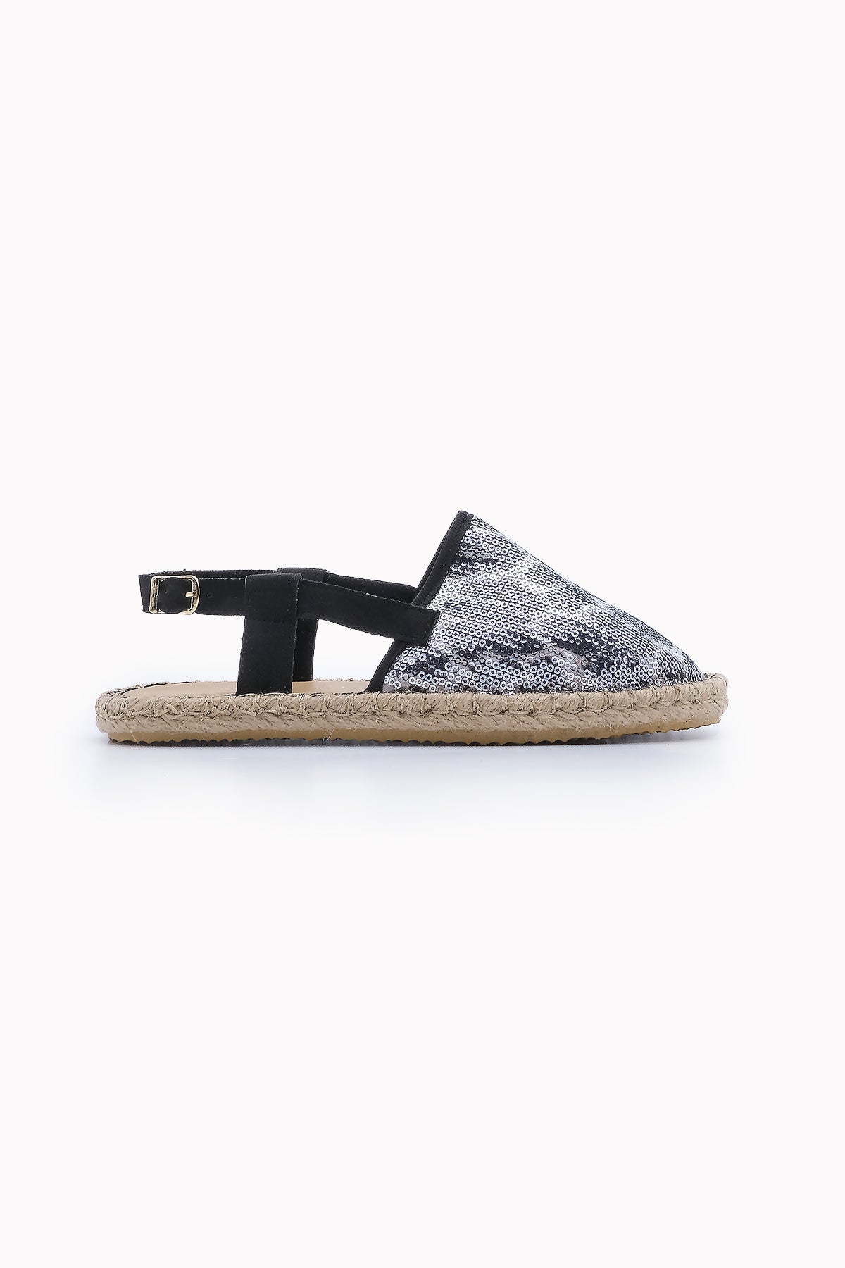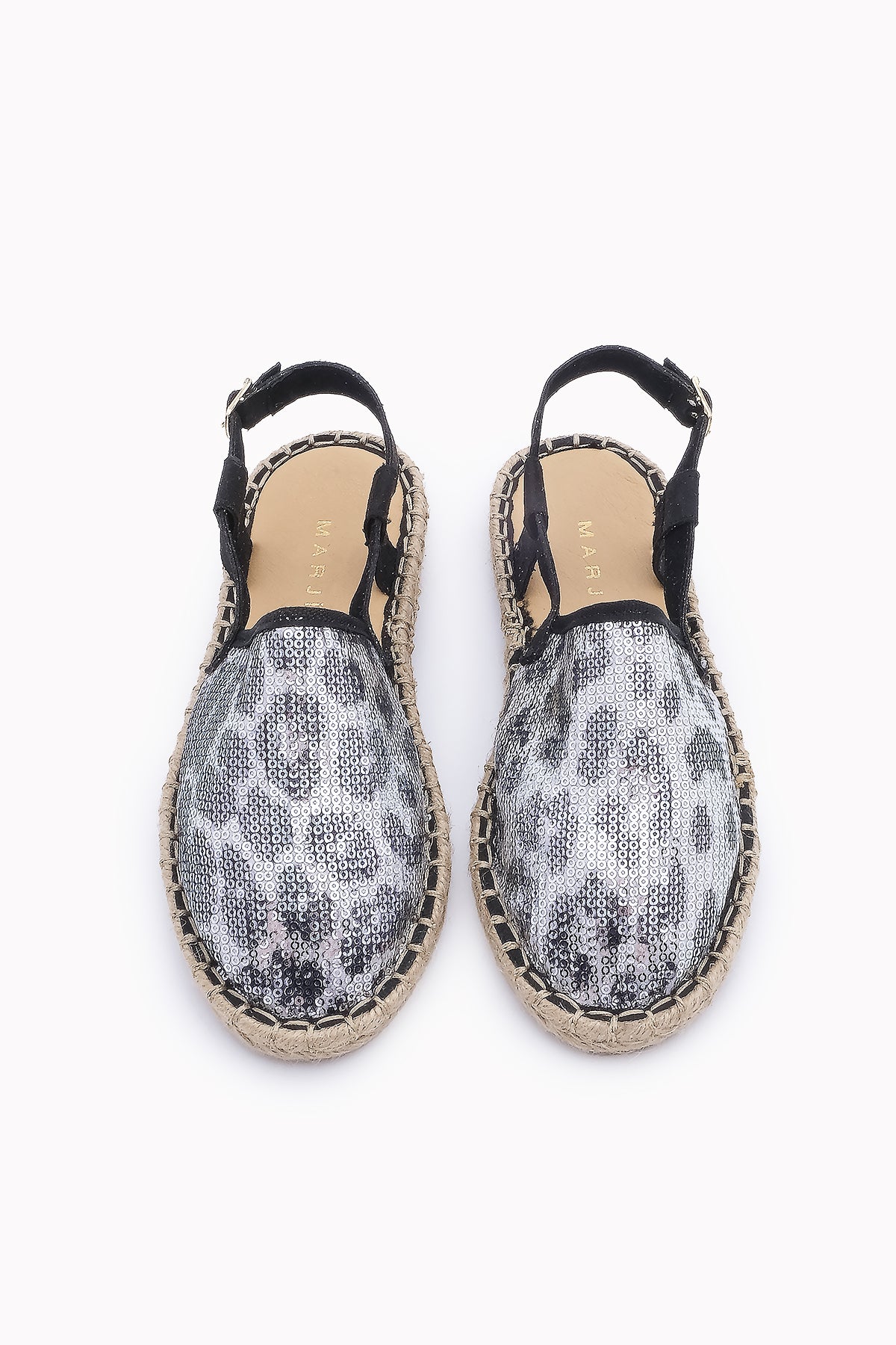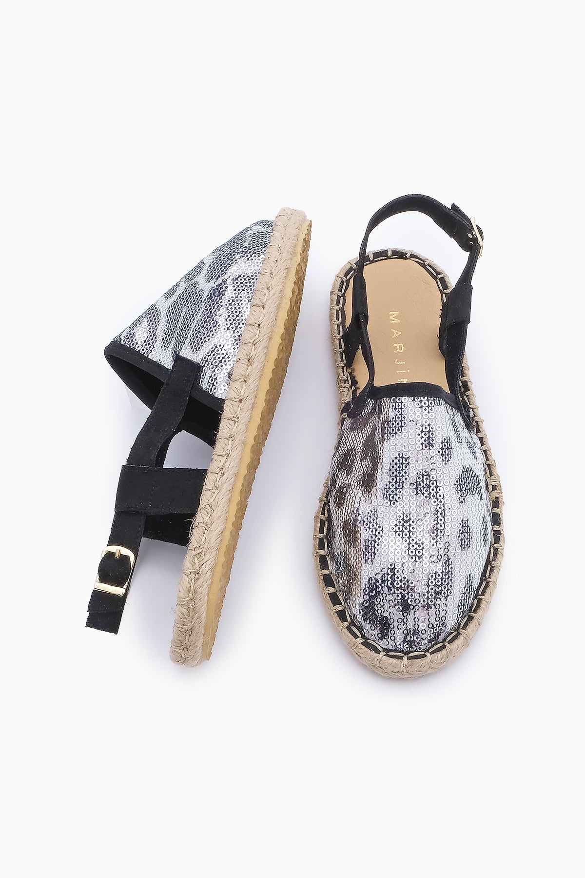 Kadın Pullu Leopar Günlük Jüt Espadril Sandalet Dolva - Gümüş