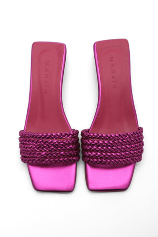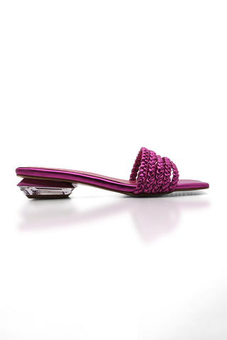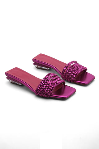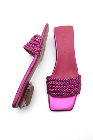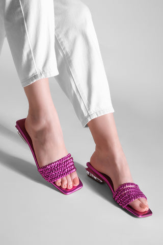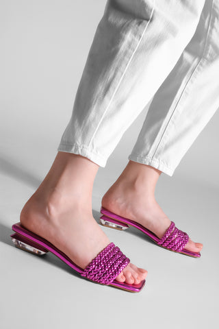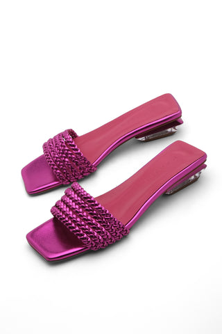 Kadın Şeffaf Ökçe Topuklu Metalik Terlik Mekta - Fuşya