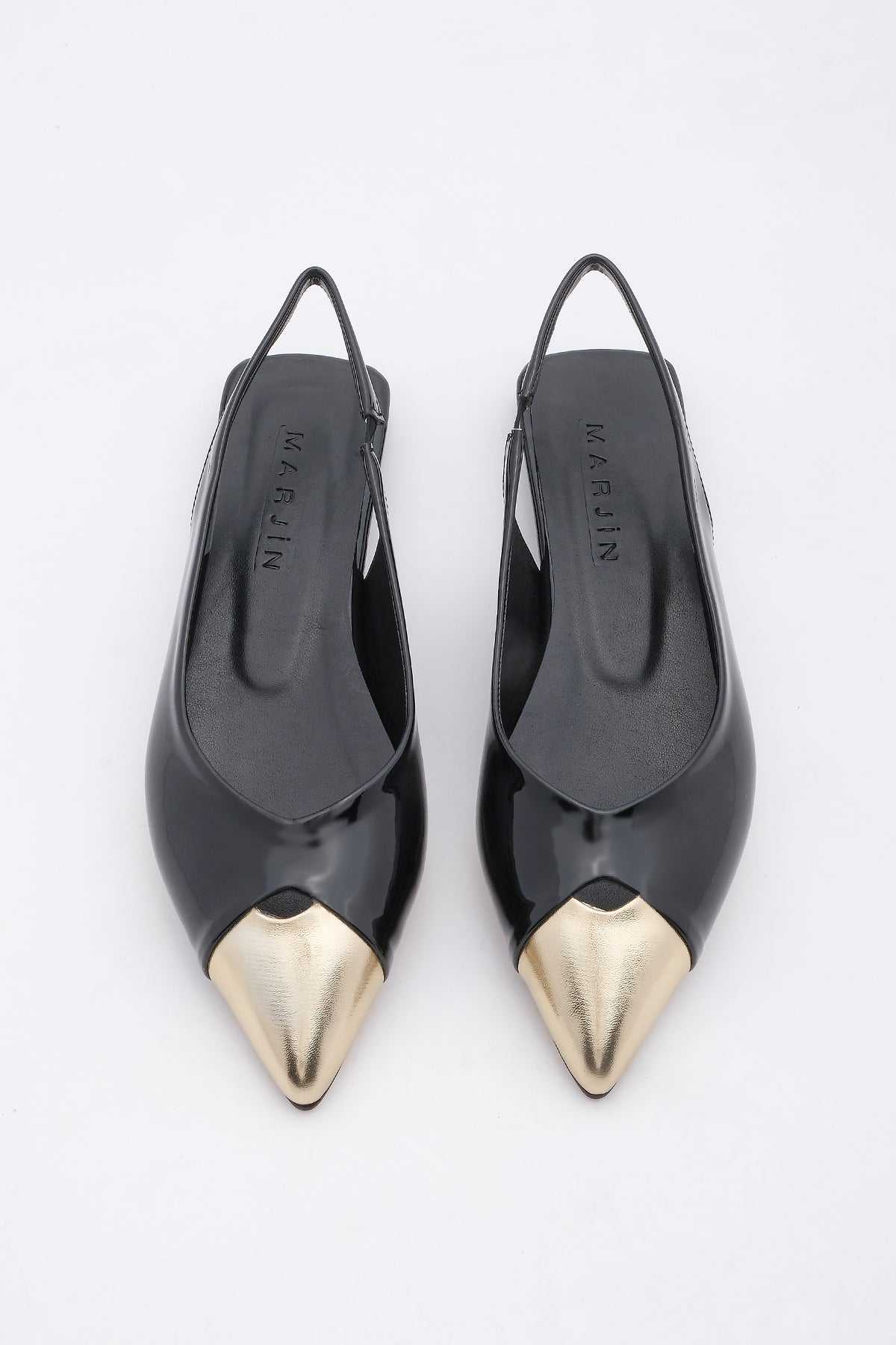 Kadın Sivri Burun Babet Apelas - Siyah Rugan