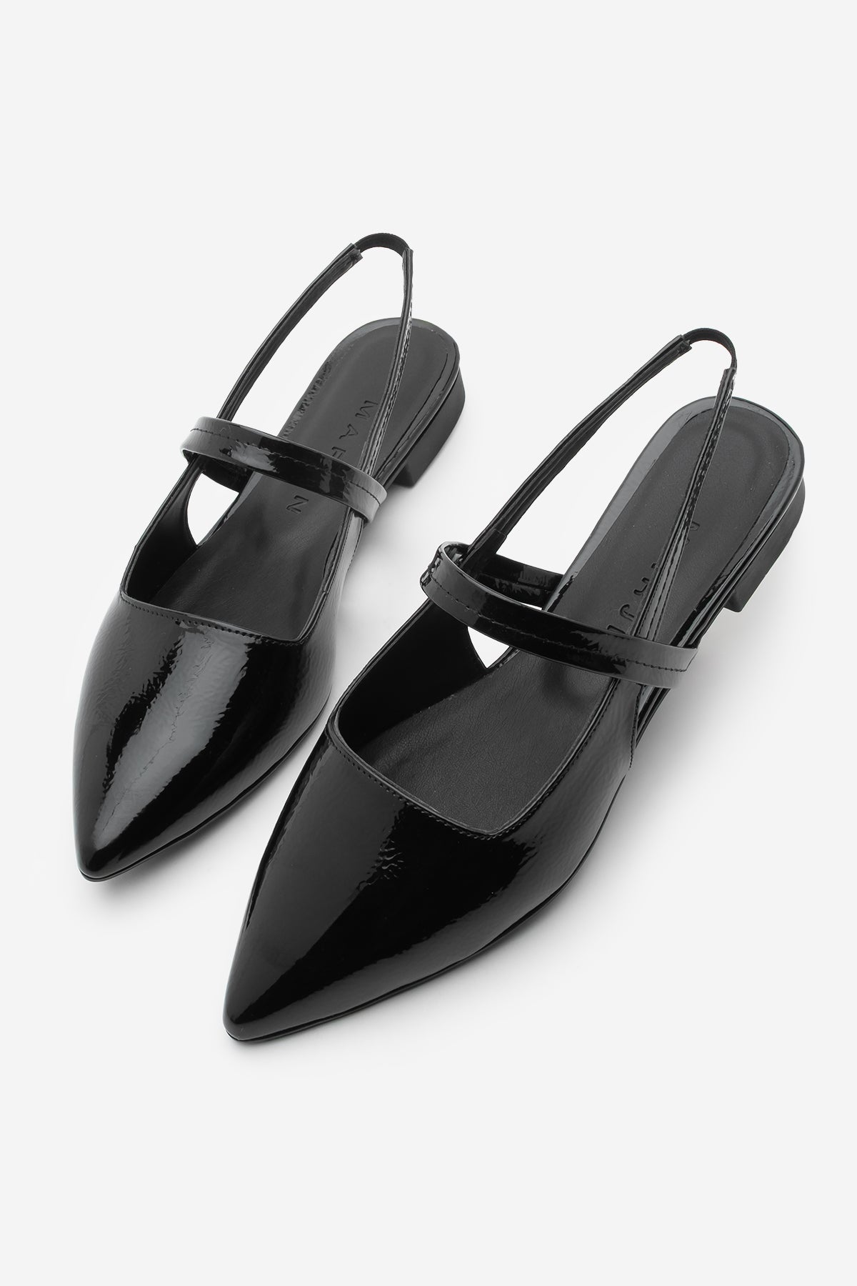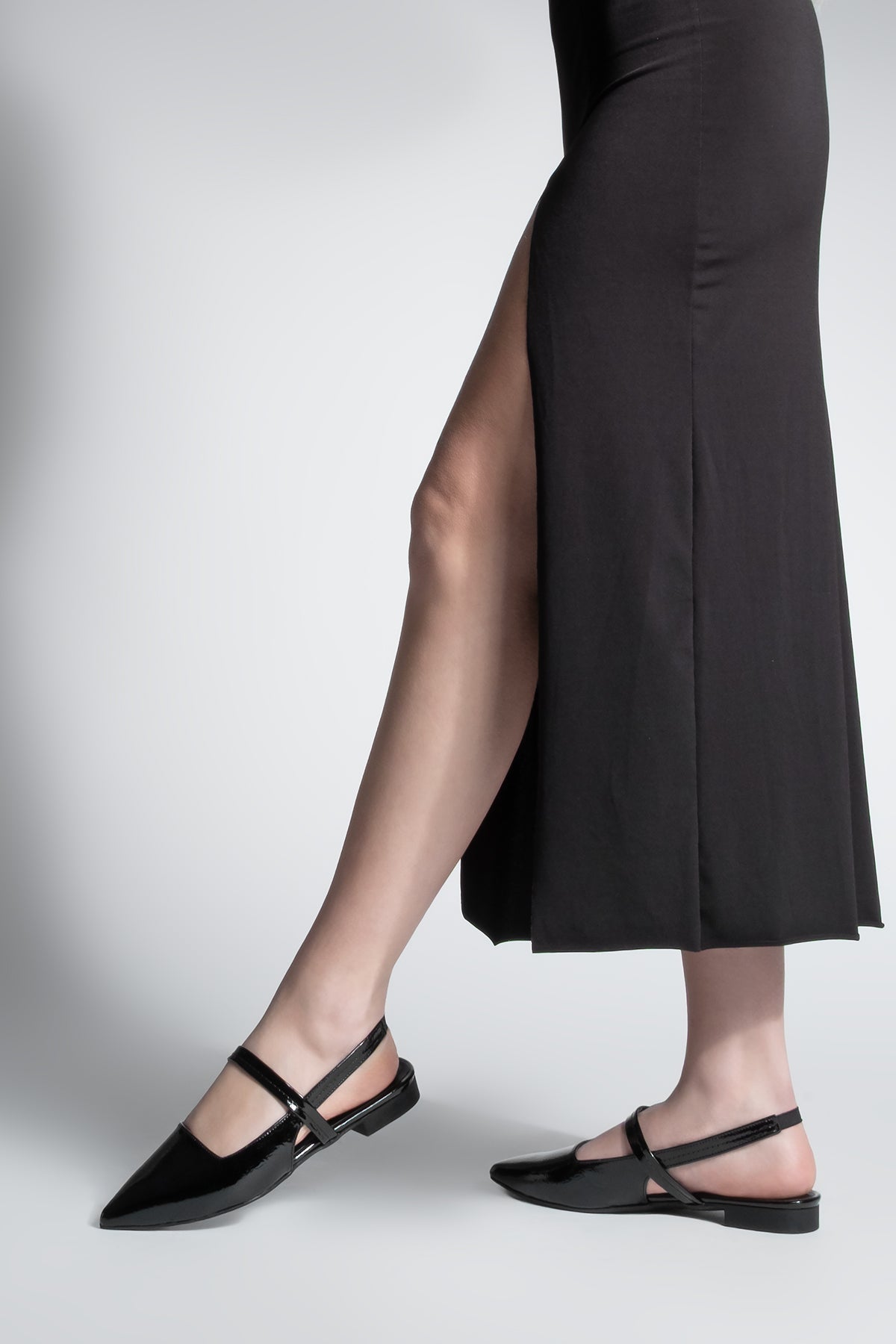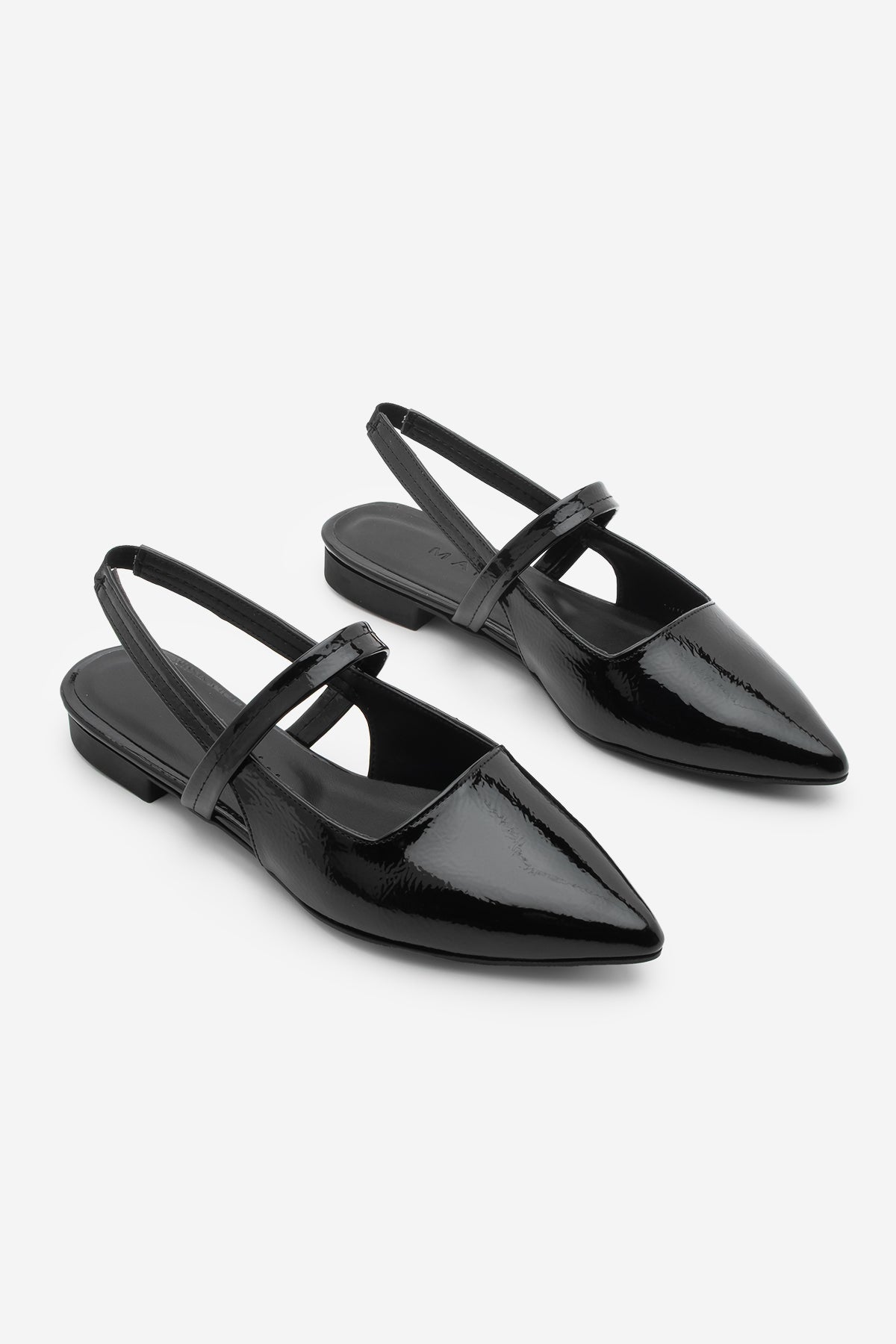 Kadın Sivri Burun Bantlı Günlük Babet Dales - Siyah Rugan