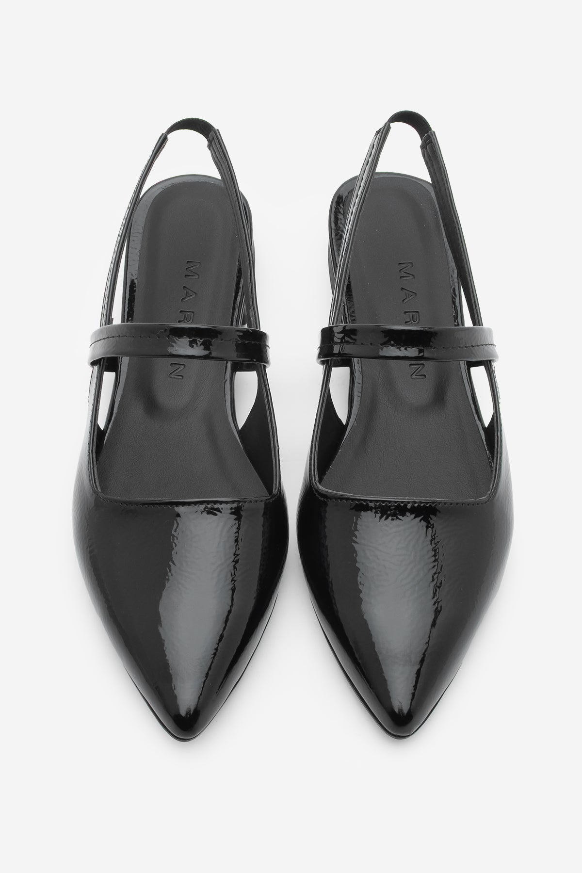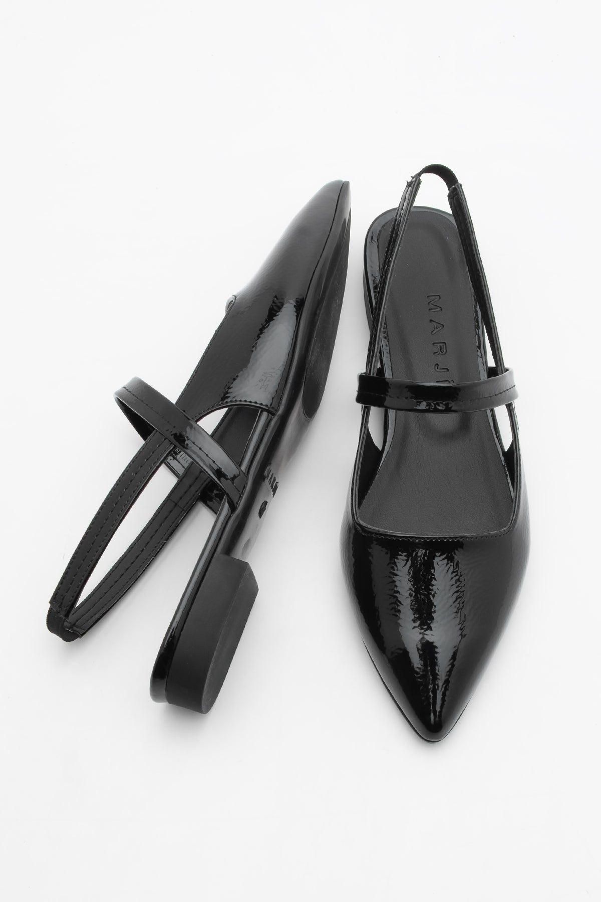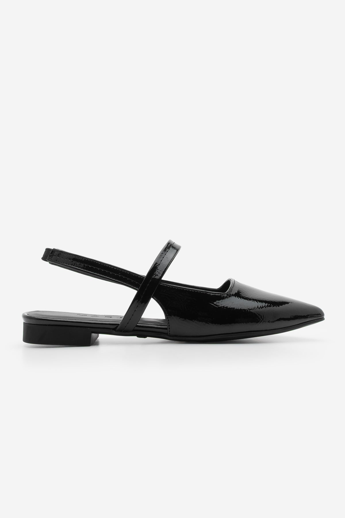 Kadın Sivri Burun Bantlı Günlük Babet Dales - Siyah Rugan