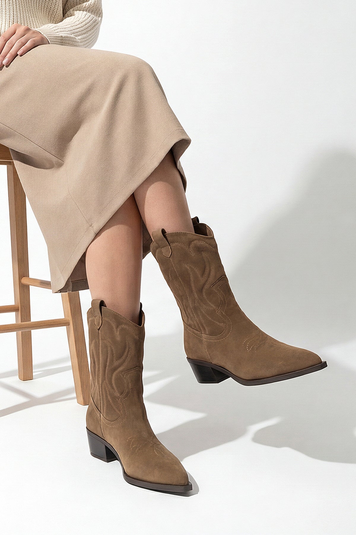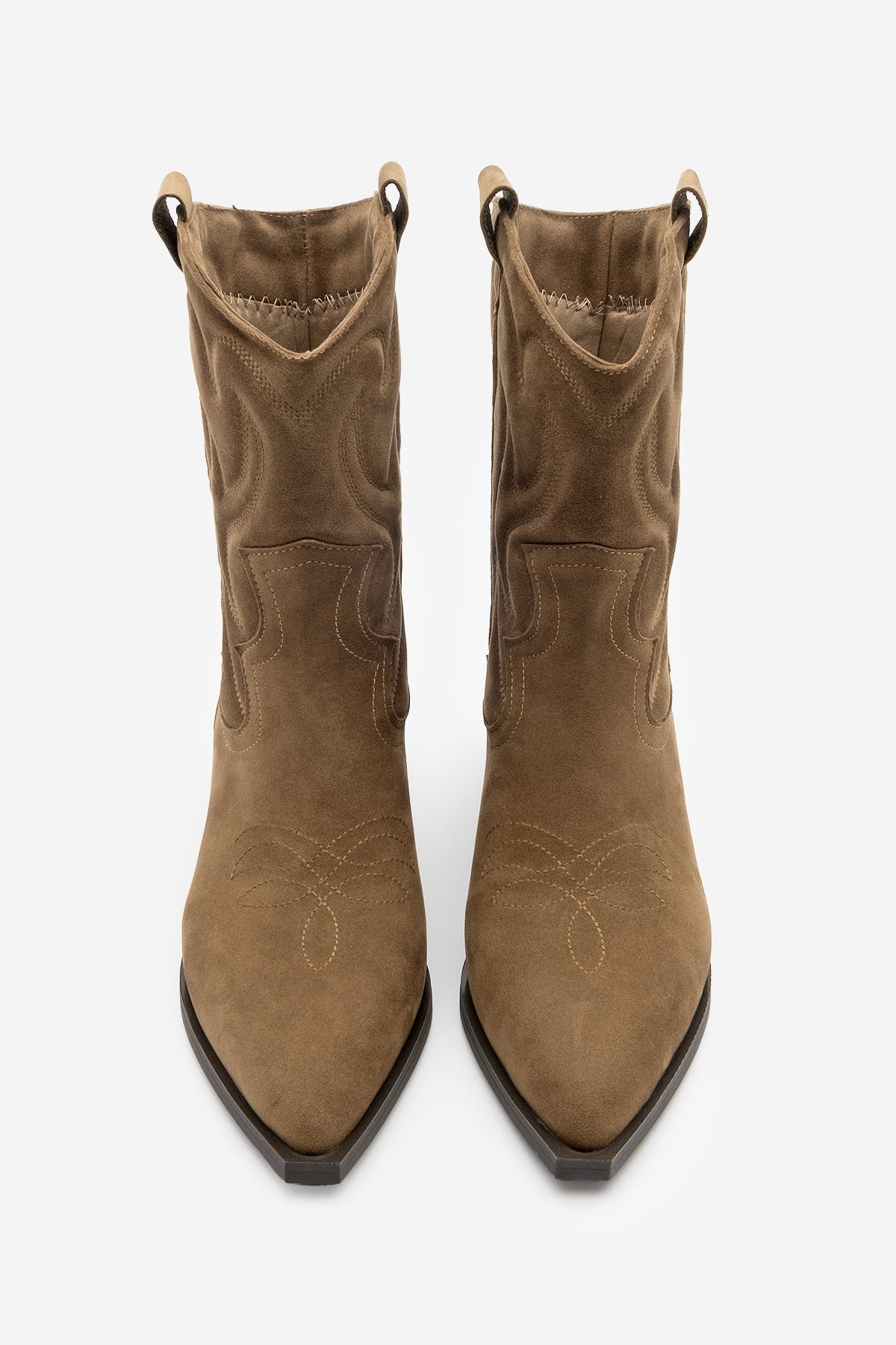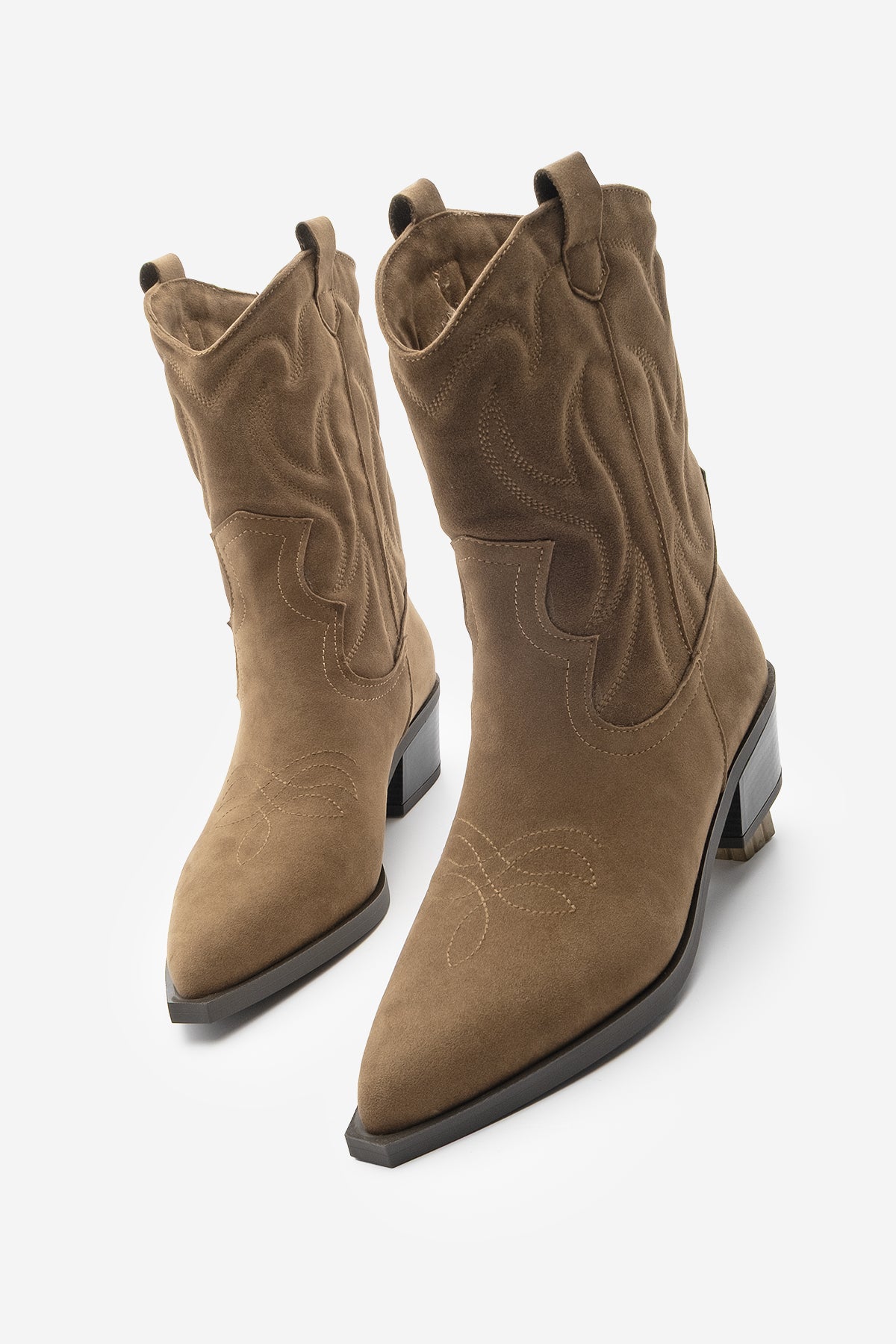Kadın Sivri Burun Nakışlı Western Bot Tayko - Taba Süet