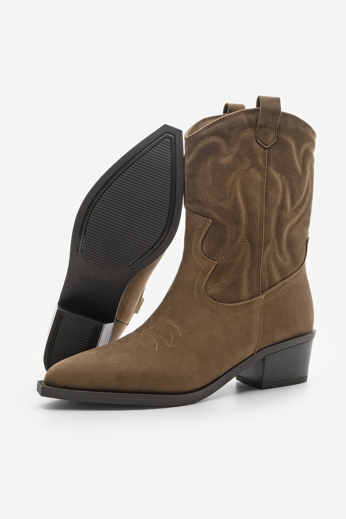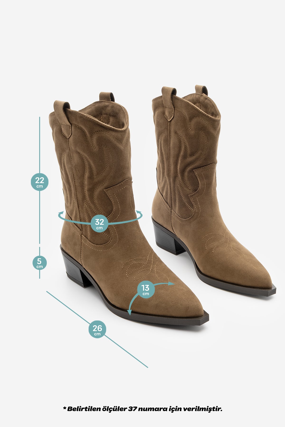 Marjin Kadın Sivri Burun Western Bot Tayko: Batı esintilerini modern bir çizgiyle buluşturan bu kadın Western bot modeli, süet dokusuyla ilk bakışta sofistike bir etki yaratıyor. İnce dikiş detayları, tasarıma hareket katarken kalın topuğu gün boyu rahatlık sağlıyor. Sivri burun formu ise şıklığı ön plana çıkaran zarif bir dokunuş sunuyor. Kahve süet rengi doğal tonlarıyla günlük kombinlerde öne çıkarken, taba süet seçeneği sıcak havasıyla sonbahar ve kış stillerine canlılık katıyor. Vizon süet tonu ise zamansız şıklığın anahtarı olarak her renkle kolayca uyum sağlıyor. Jean pantolonlarla şehir hayatında, elbiselerle ise özel davetlerde kombinlenebilecek bu bot, tarzınızı güçlendiren joker parçalar arasında yer alıyor.