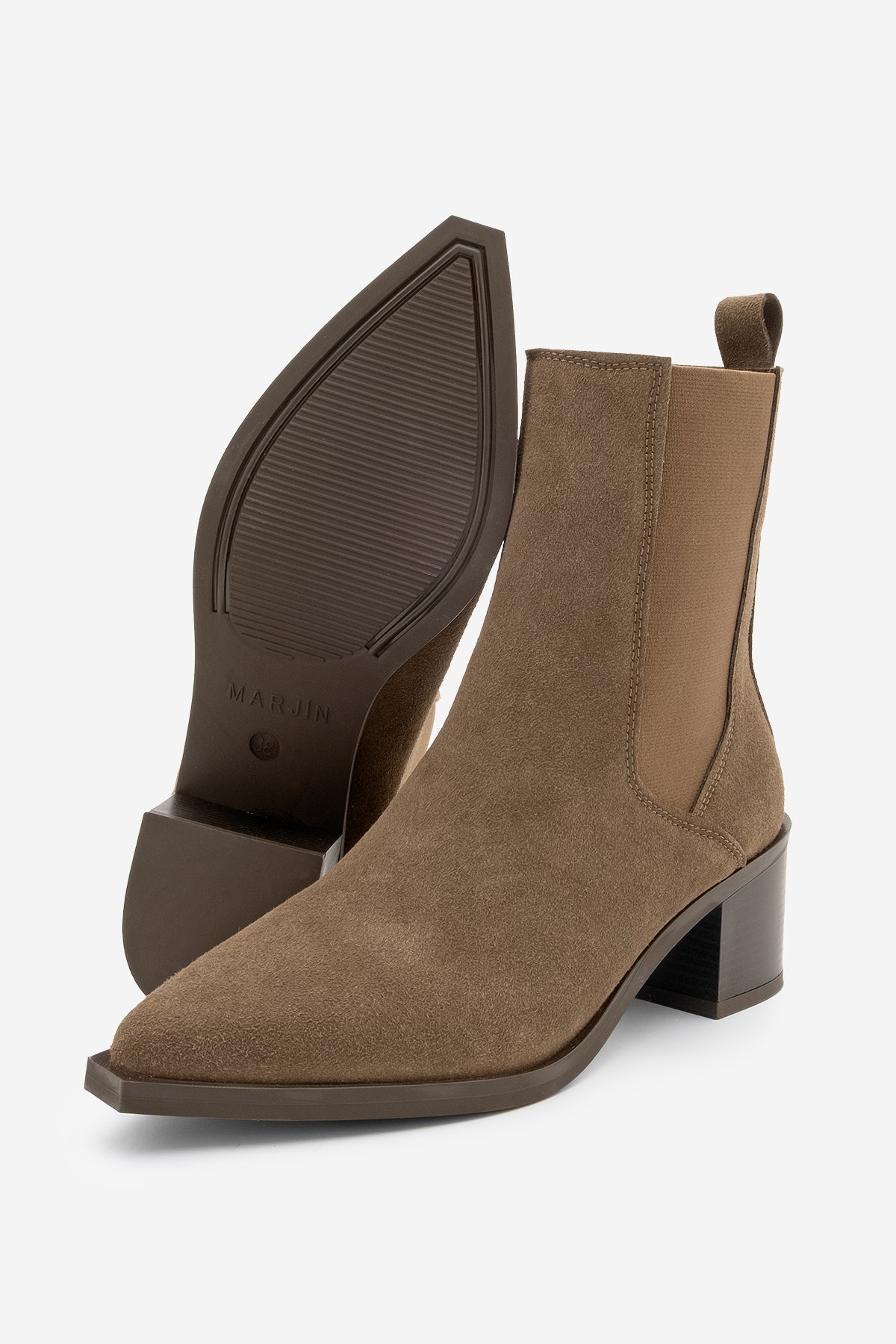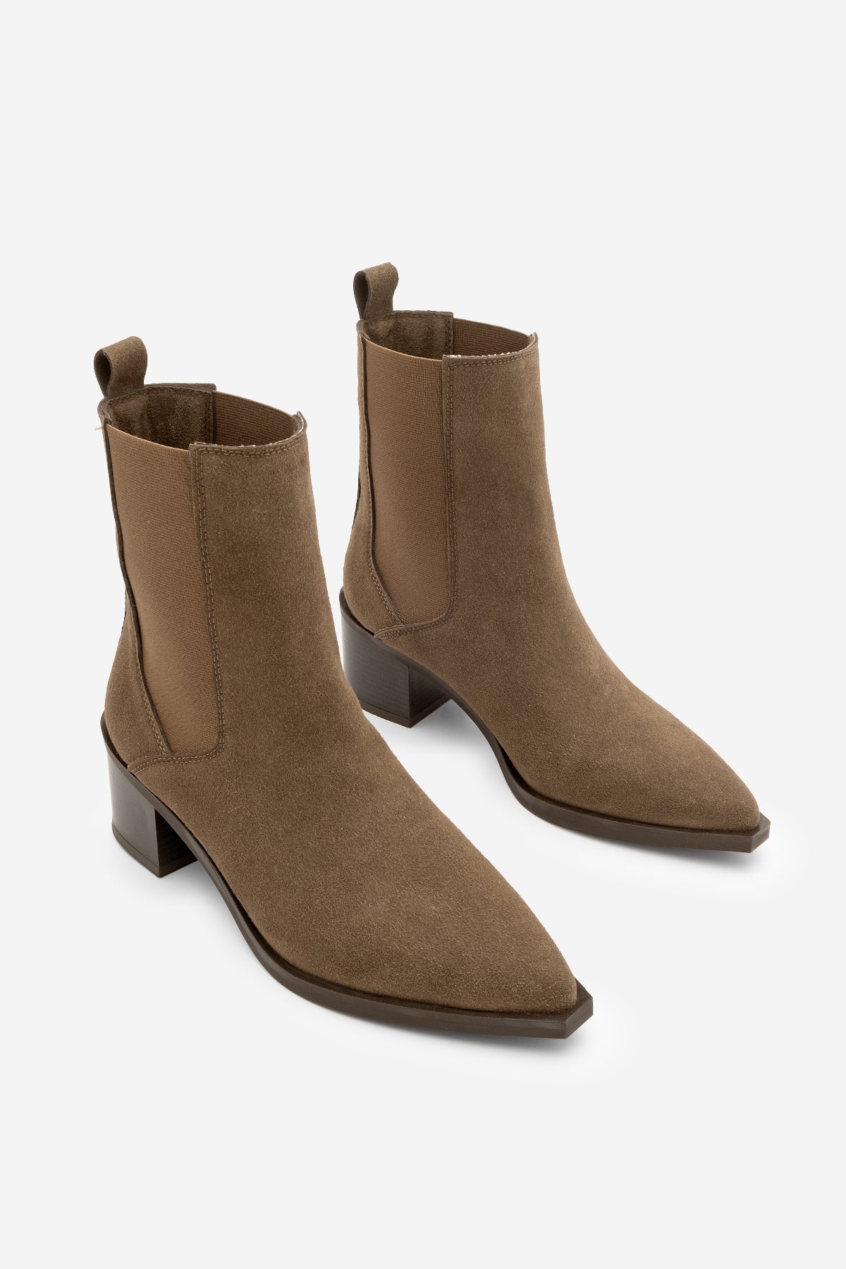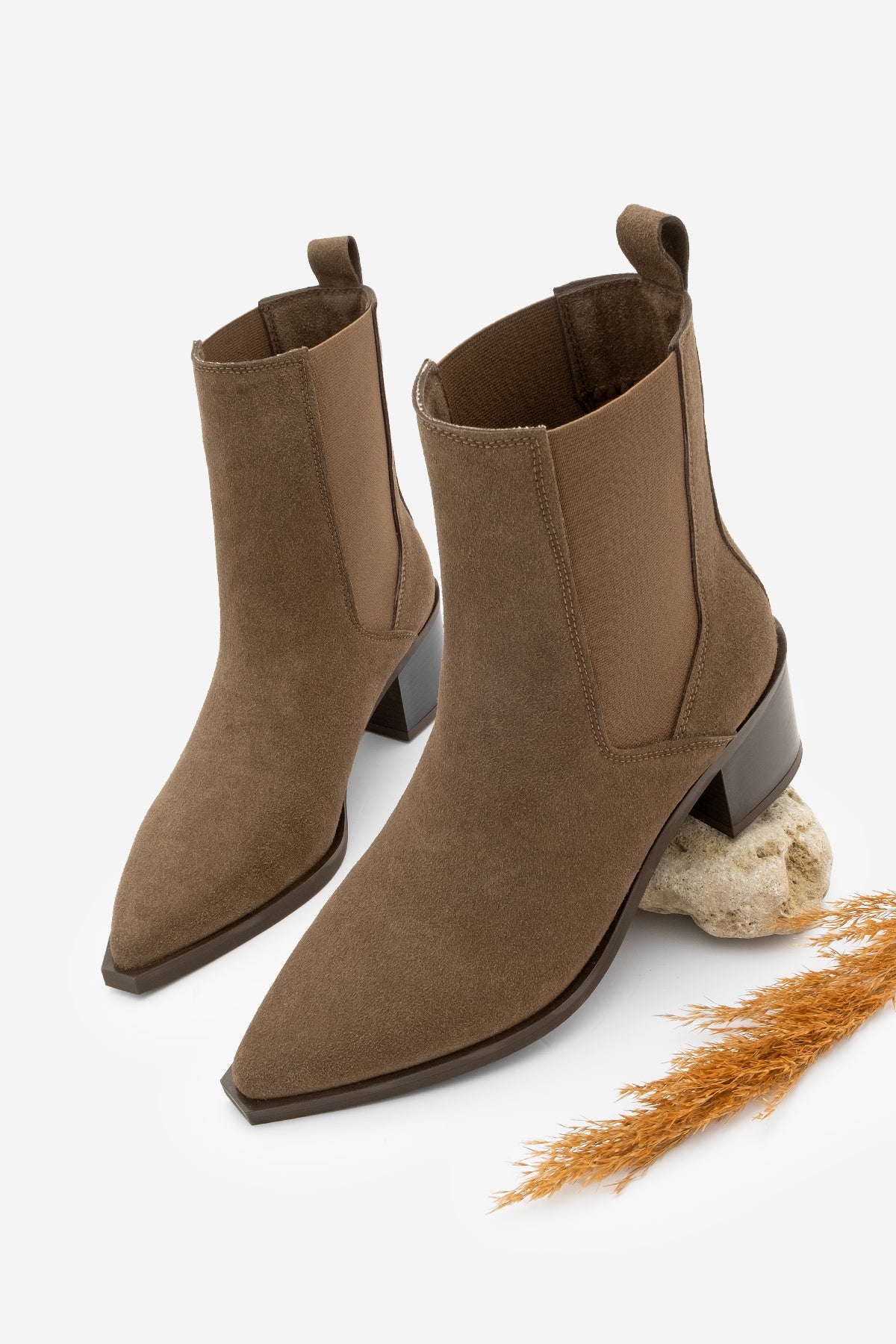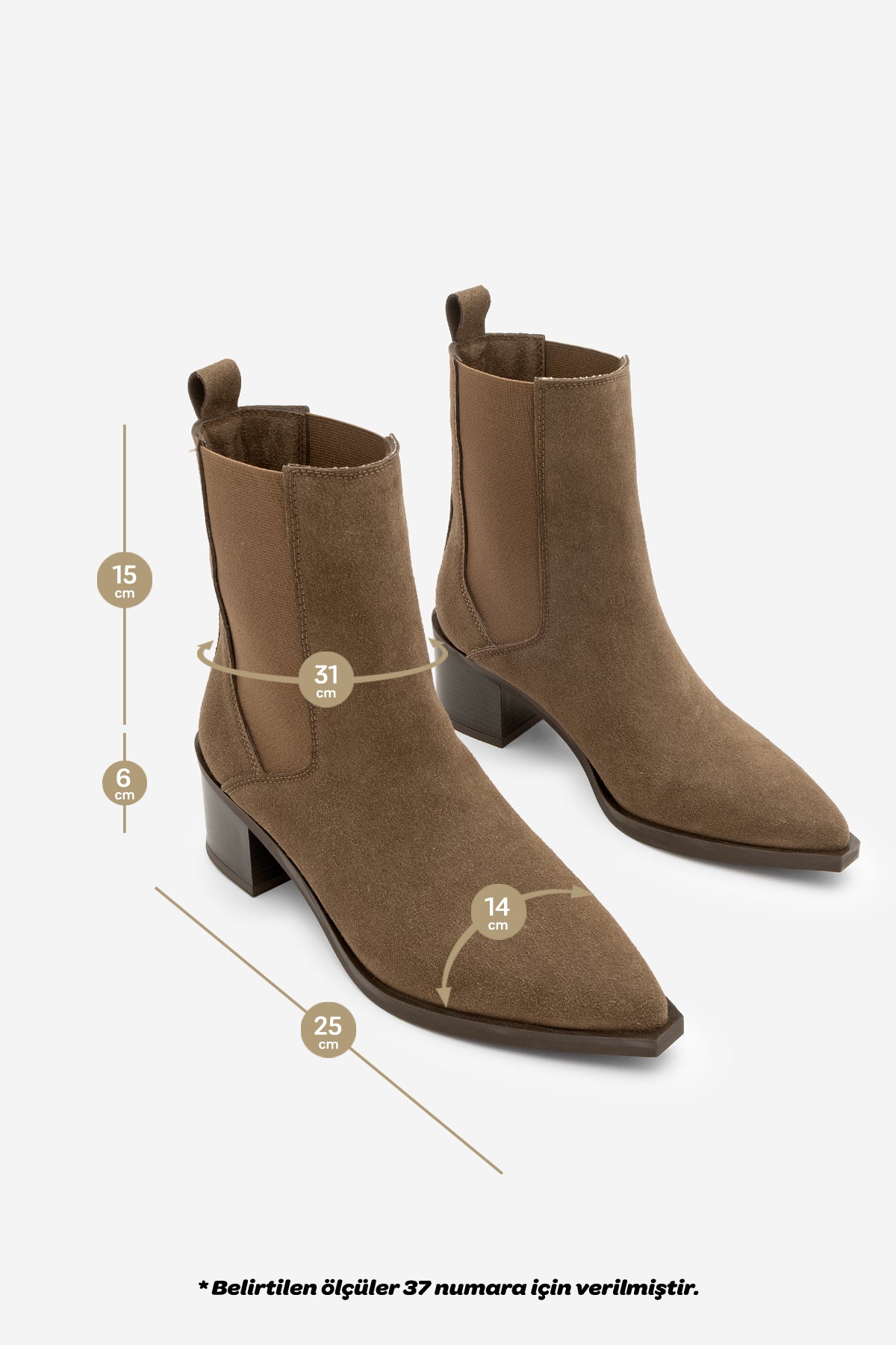 Kadın Sivri Burun Topuklu Bot Zefina - Kahve Süet