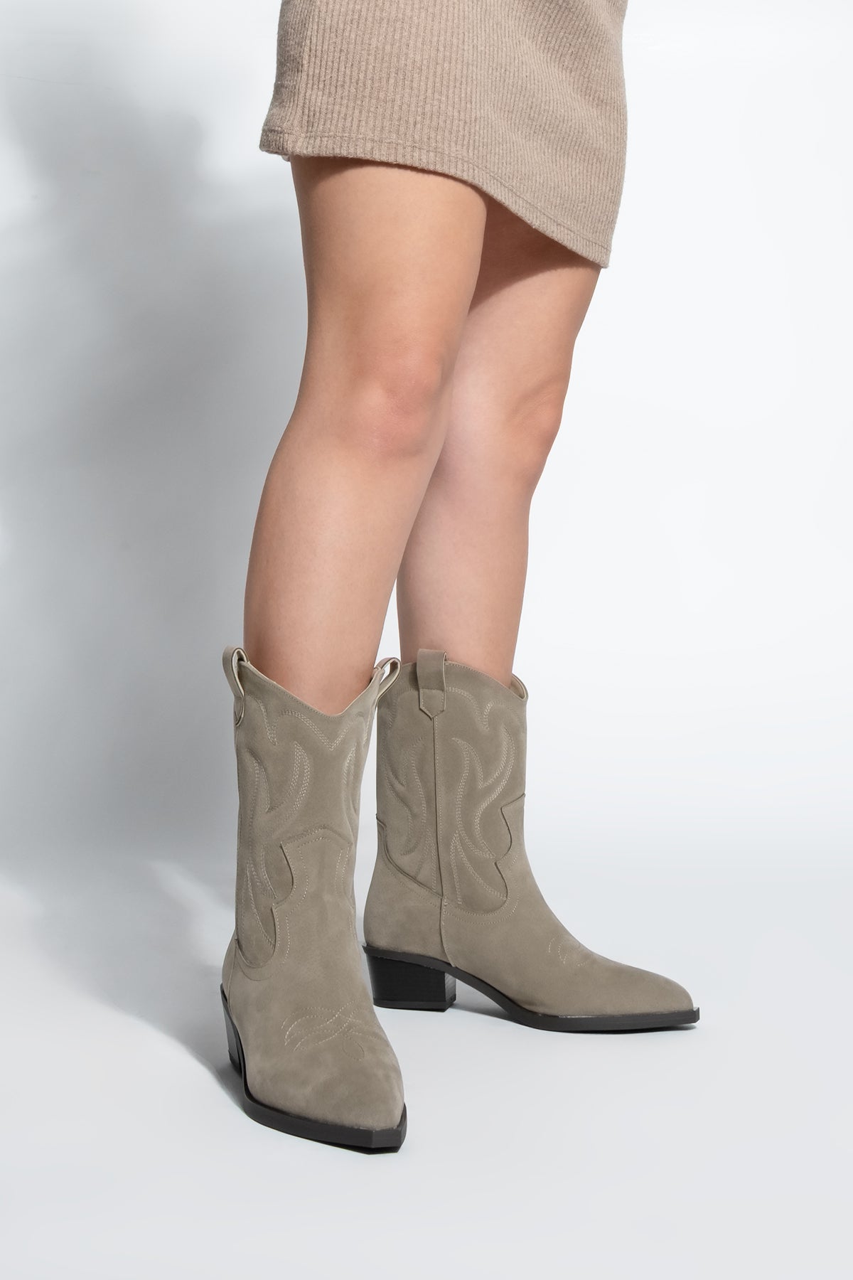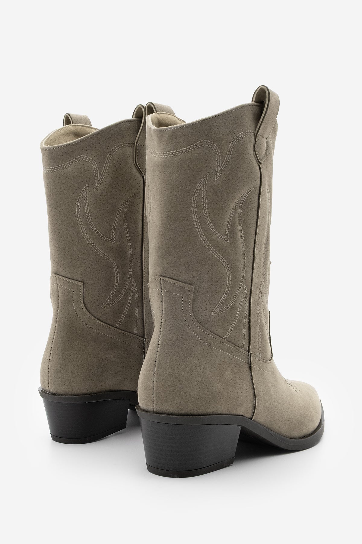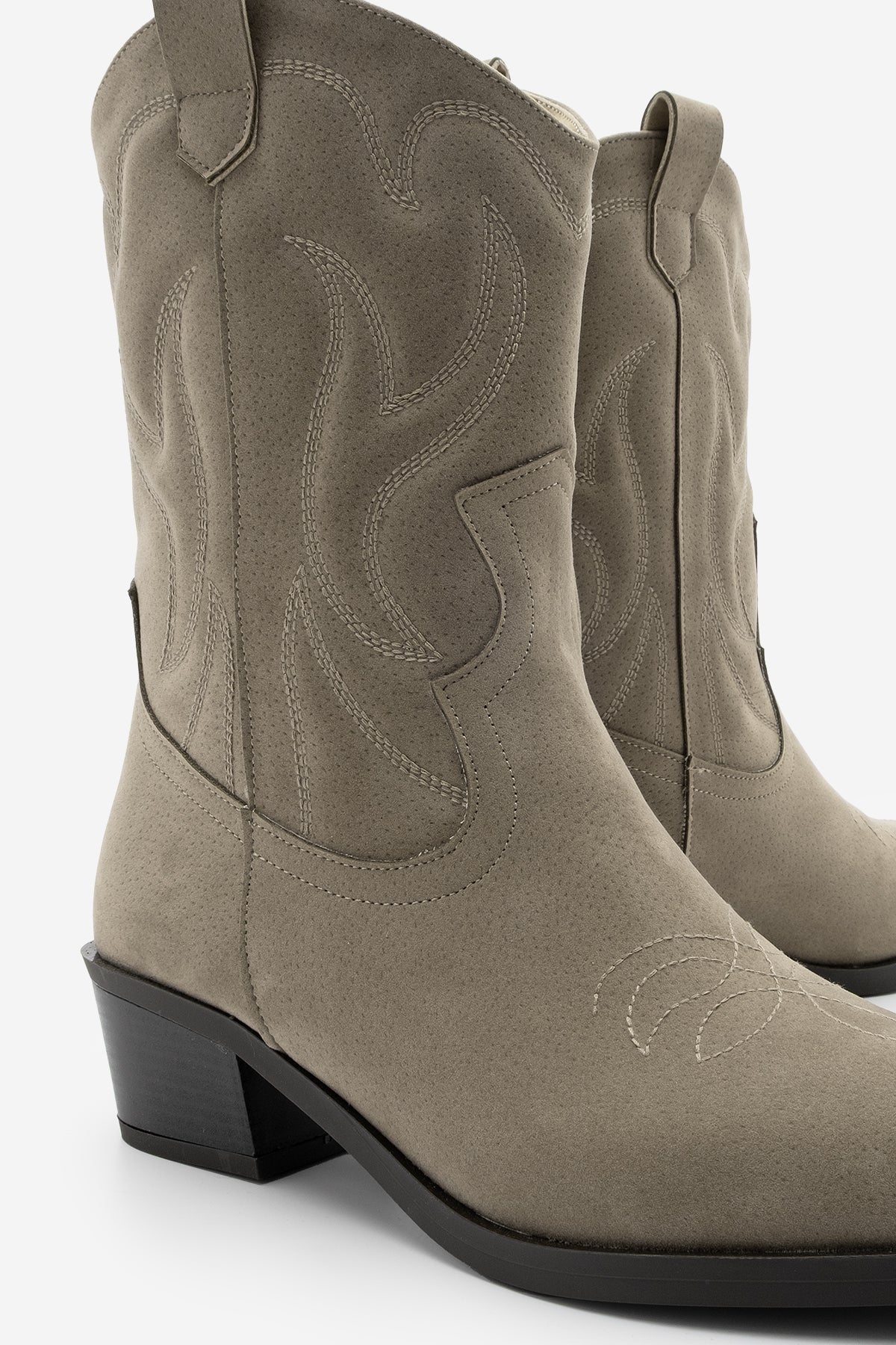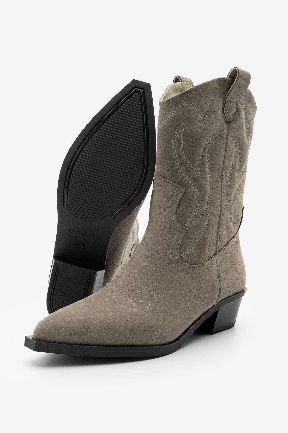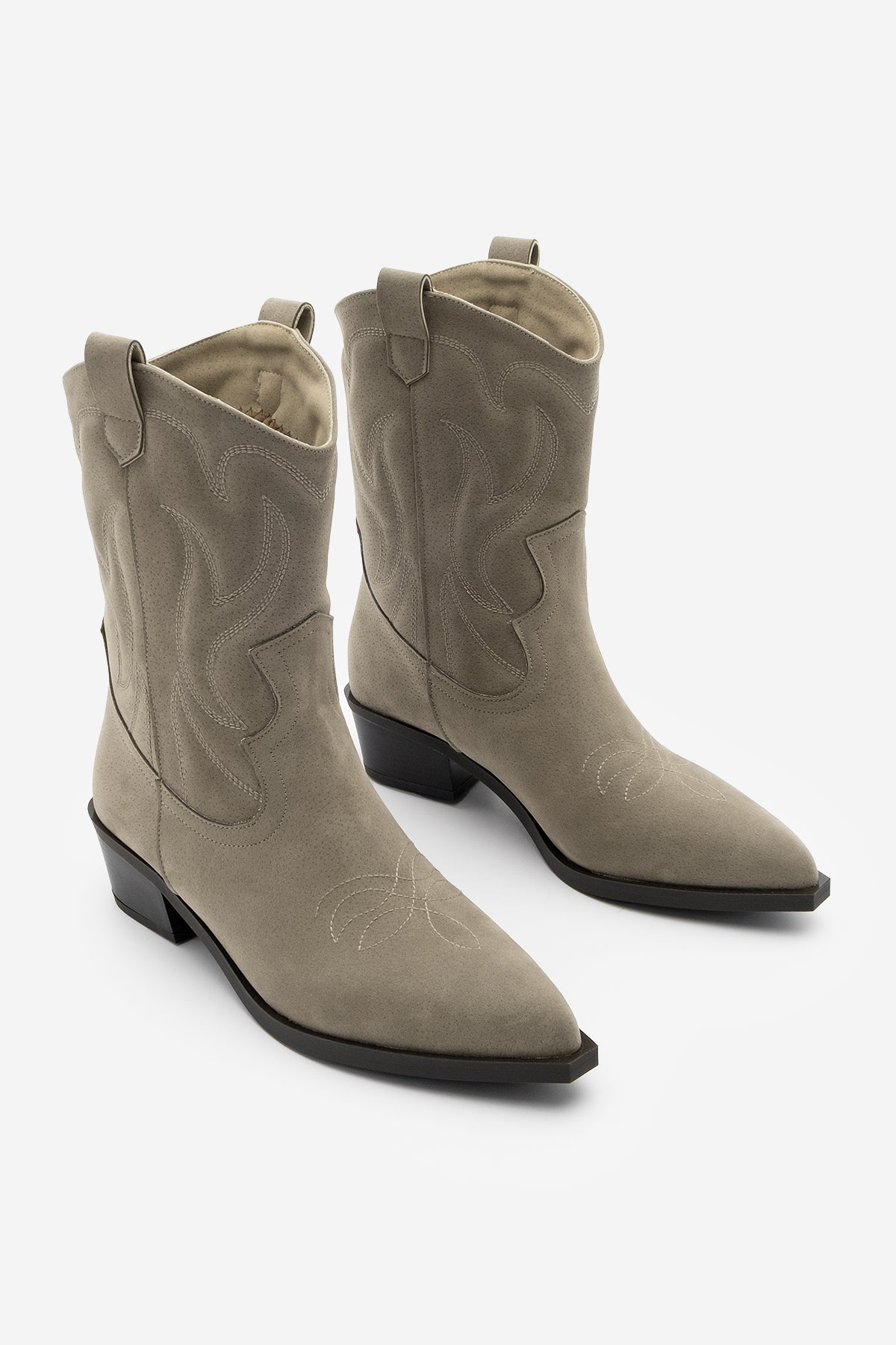Kadın Sivri Burun Nakışlı Western Bot Nilva - Vizon Süet