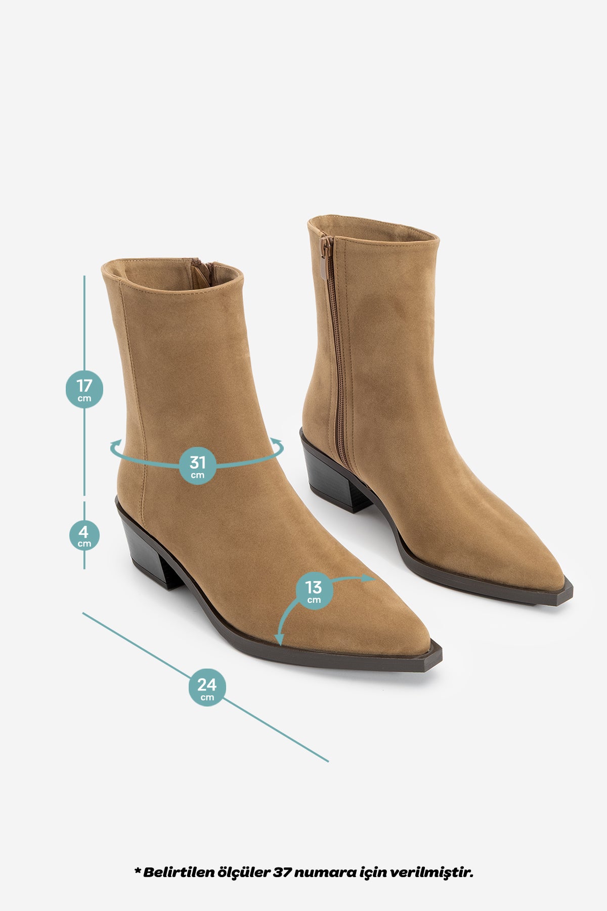 Kadın Sivri Burun Western Bot Tahis - Taba Süet