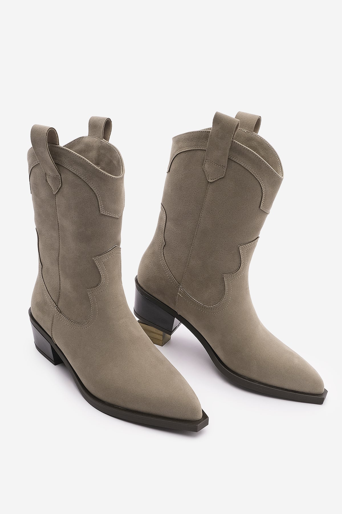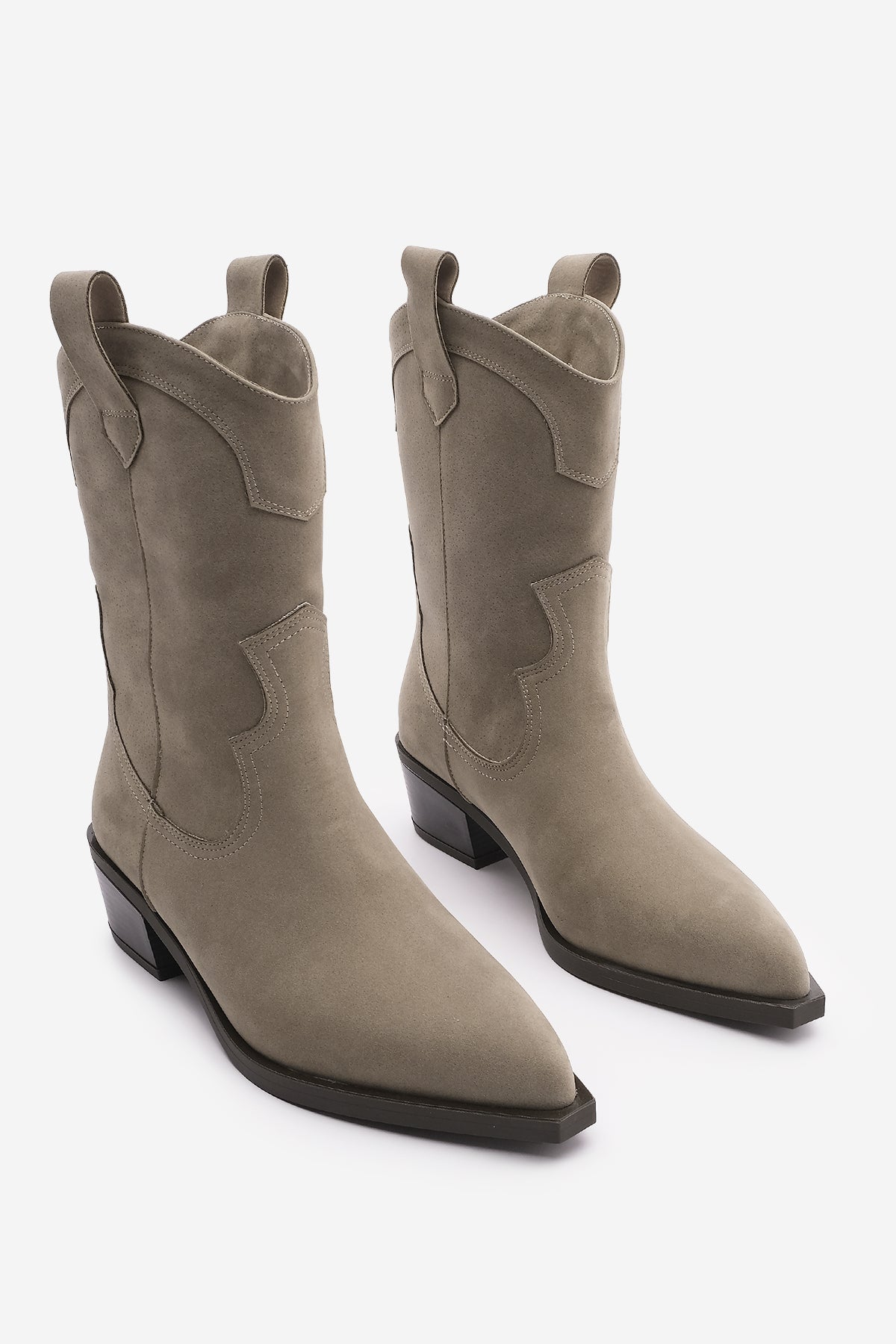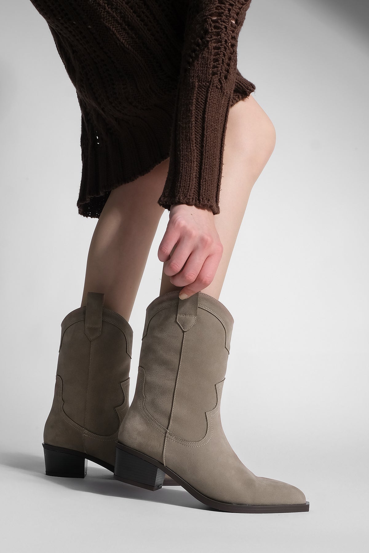 Kadın Sivri Burun Western Bot Voleta - Vizon Süet