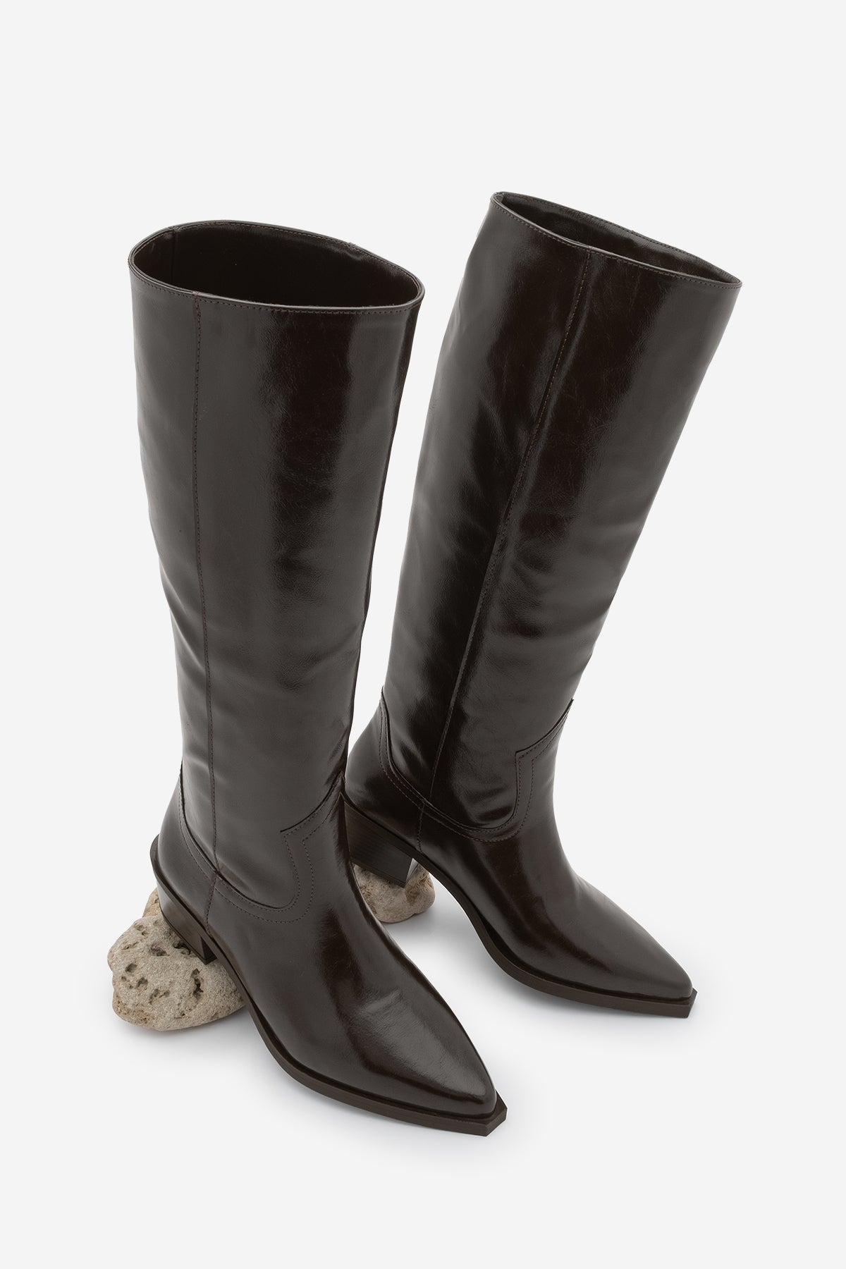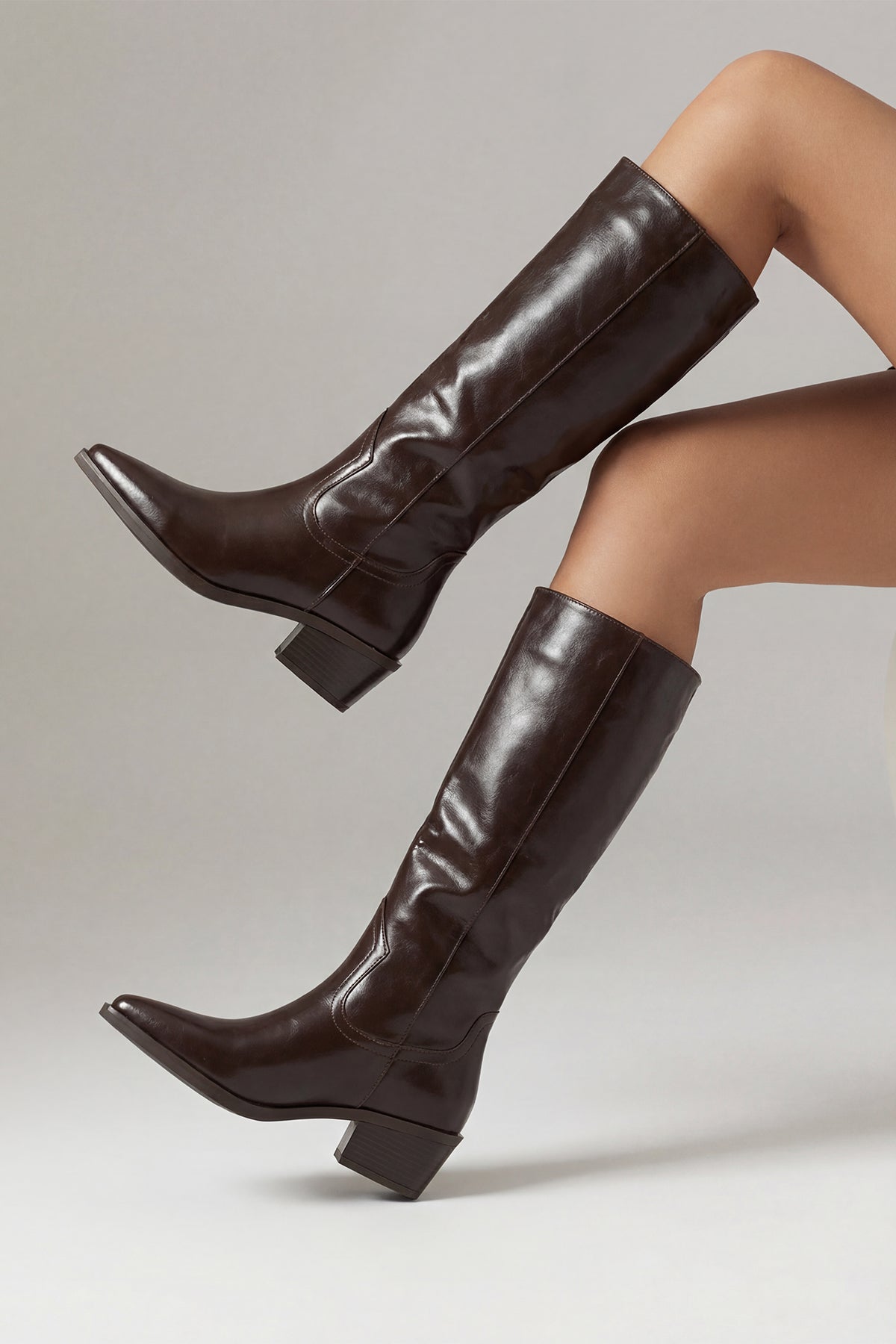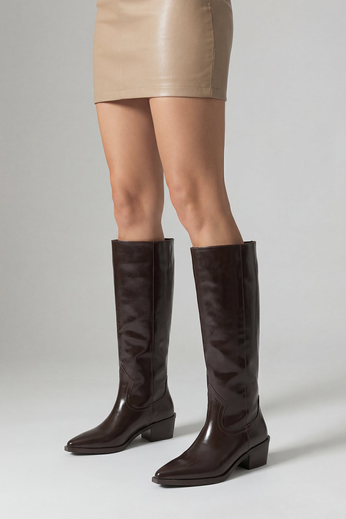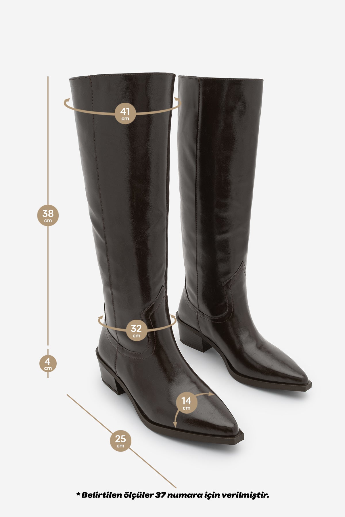 Kadın Sivri Burun Western Çizme Mivez - Kahve