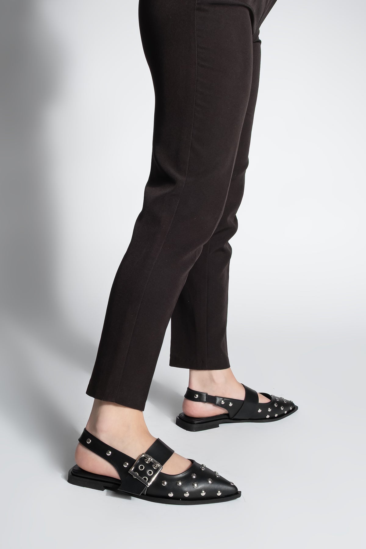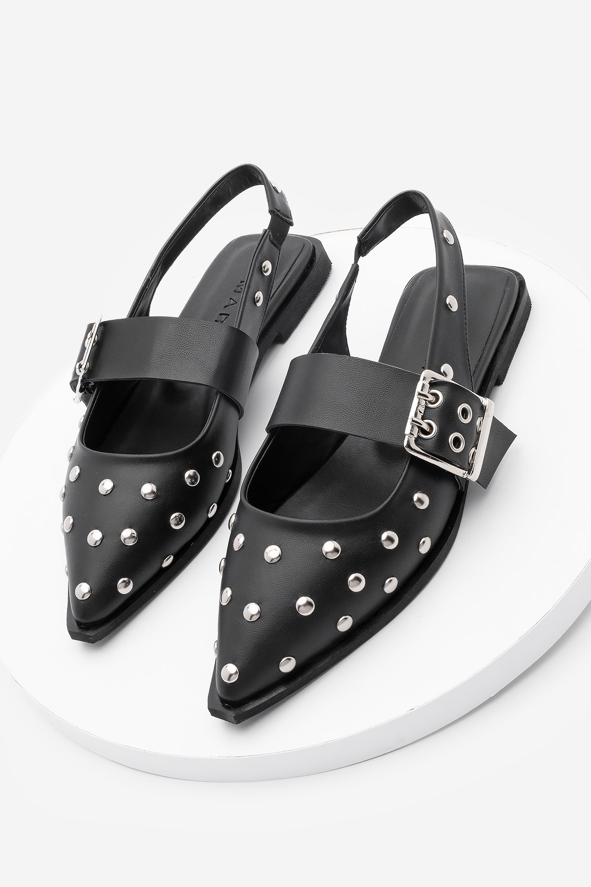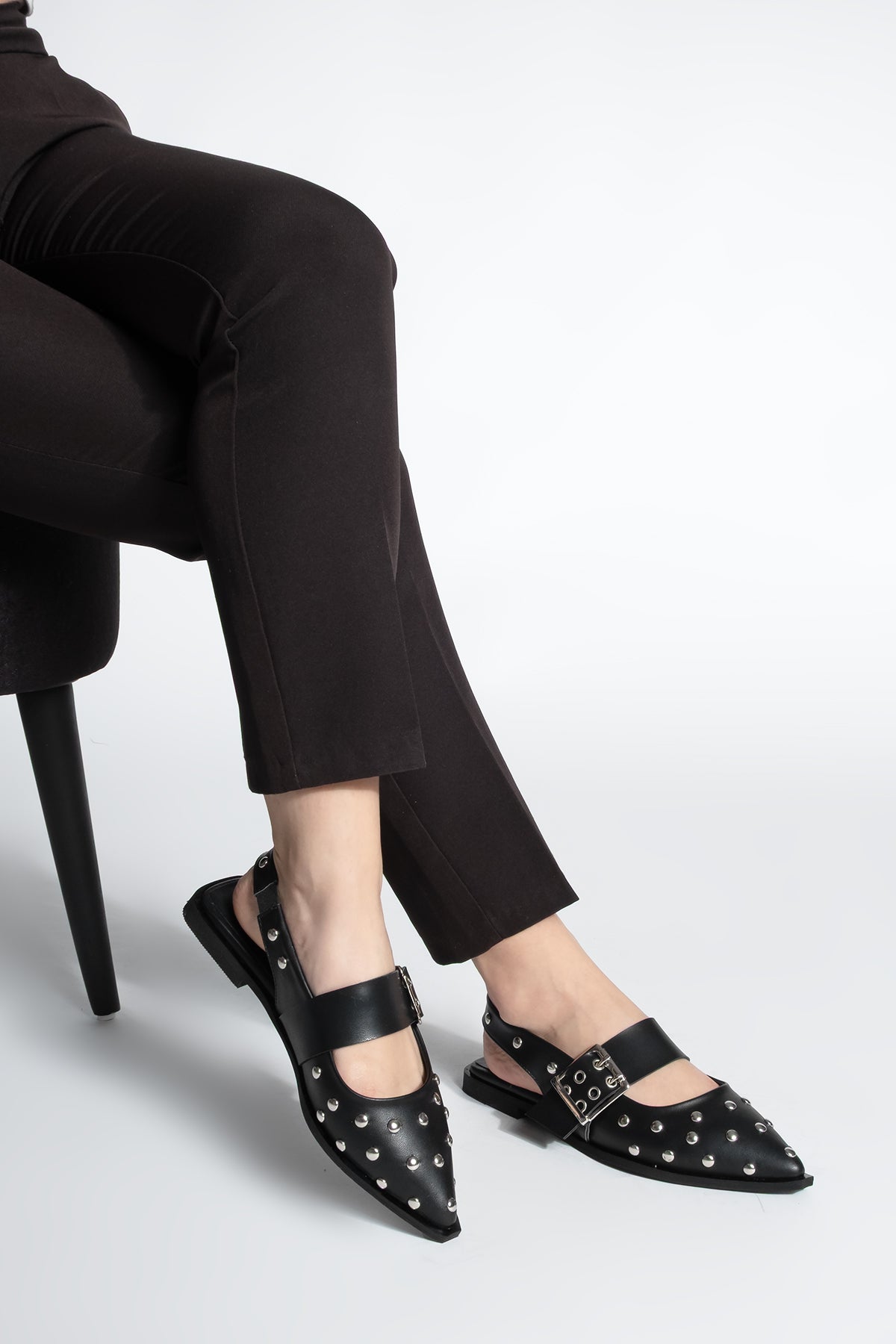 Kadın Sivri Burun Zımbalı Babet Olima - Siyah