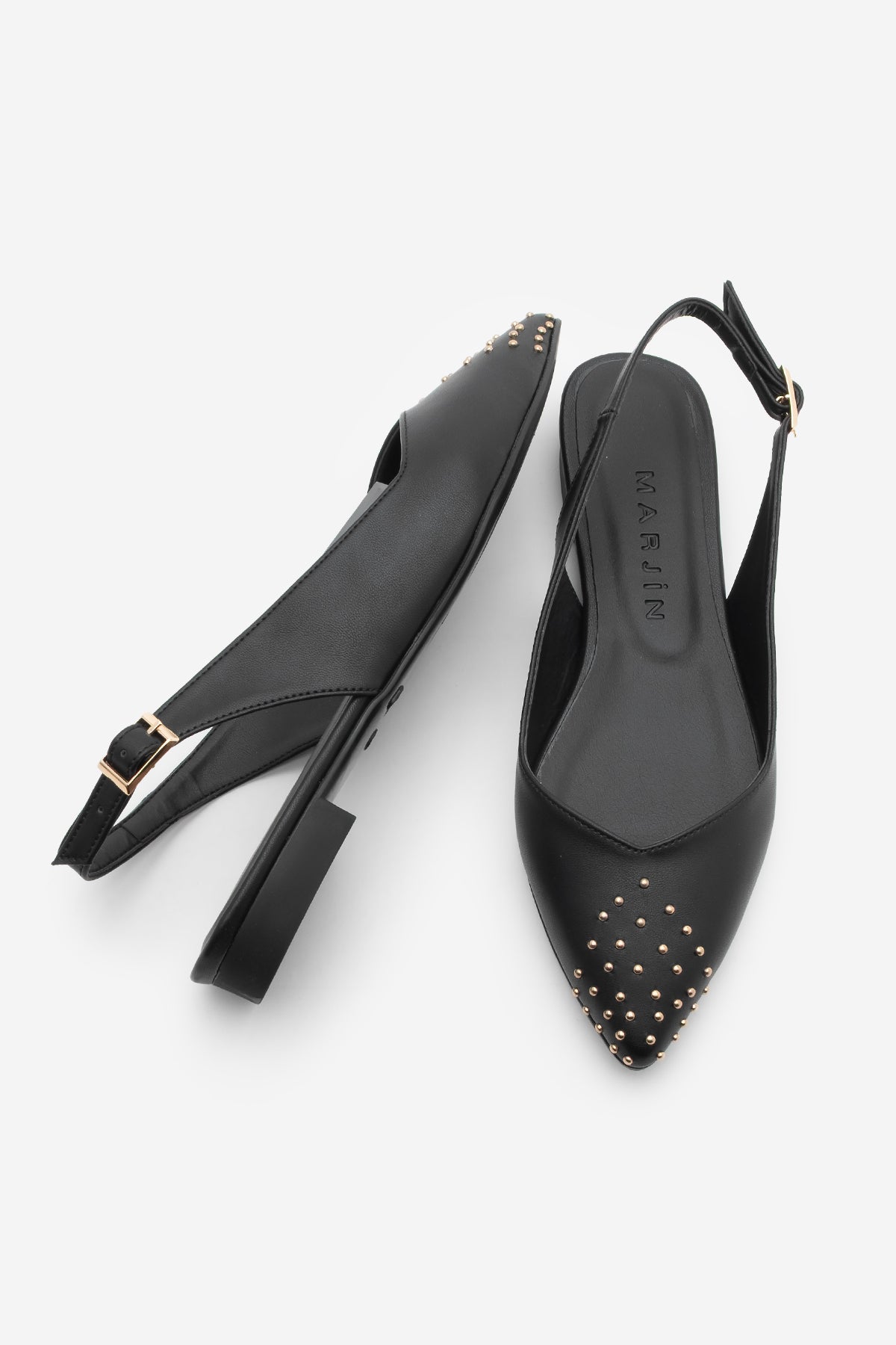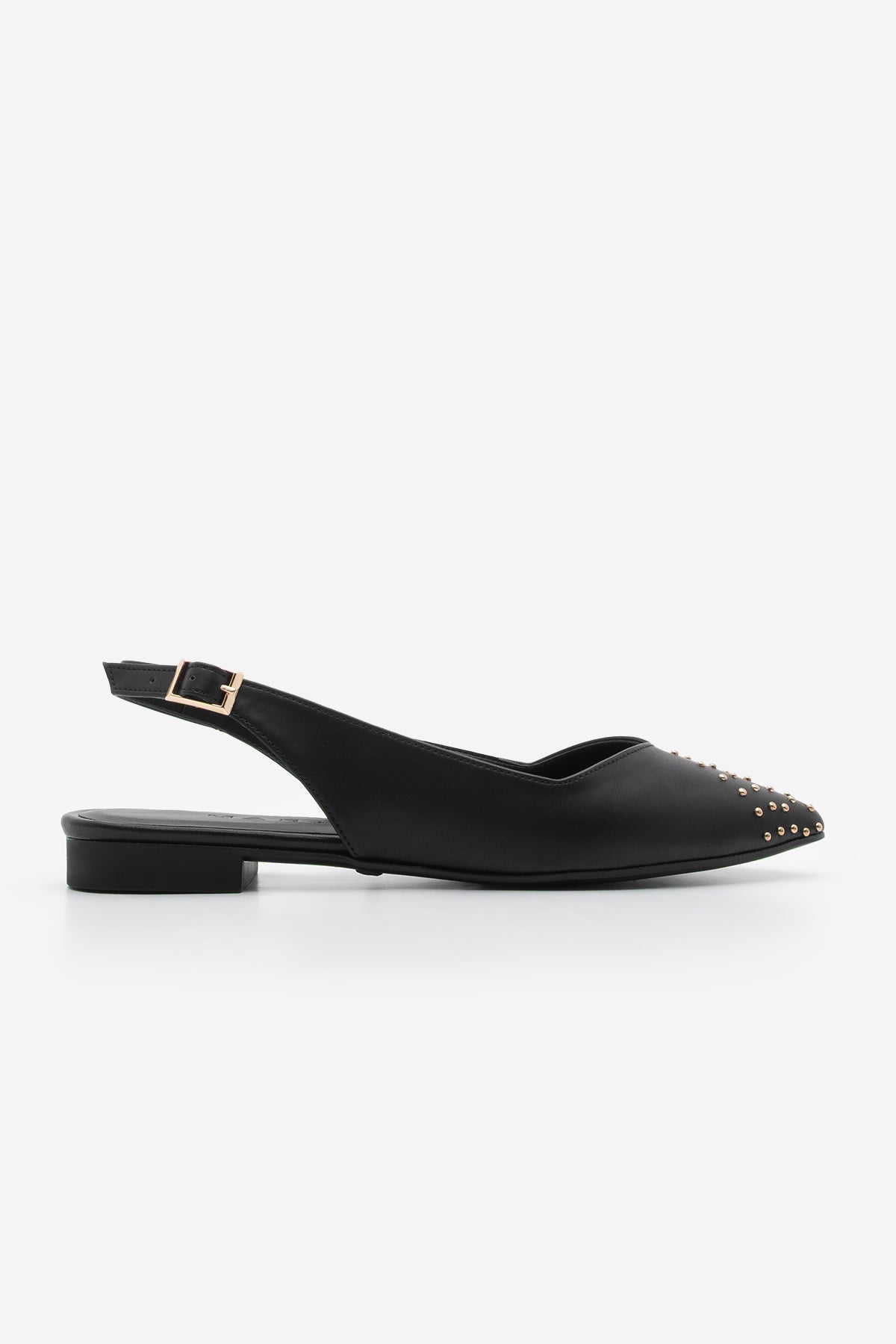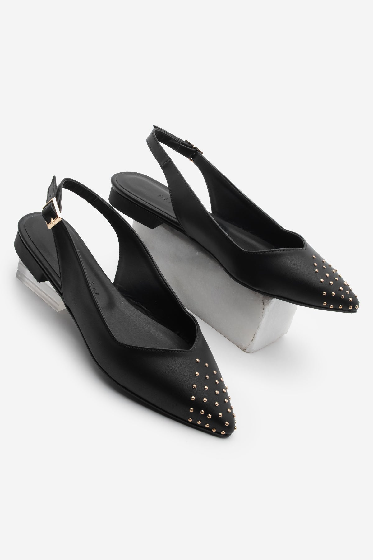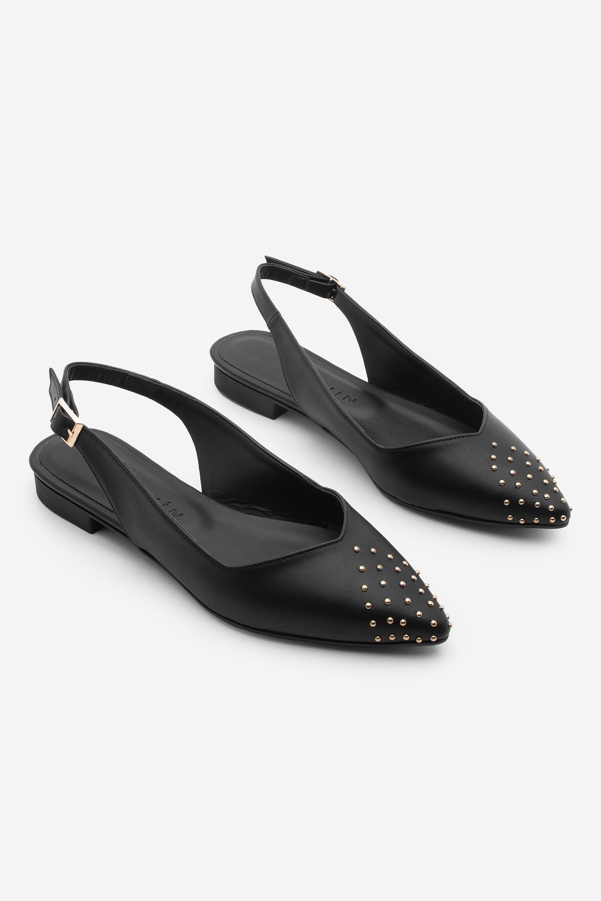 Kadın Sivri Burun Zımbalı Günlük Babet Arlina - Siyah