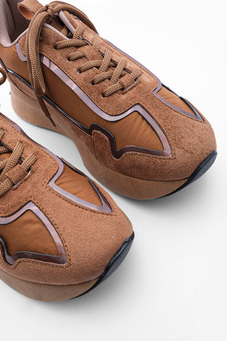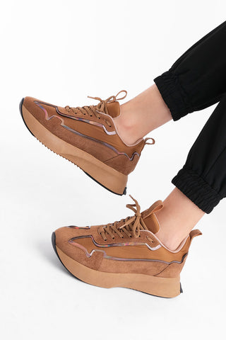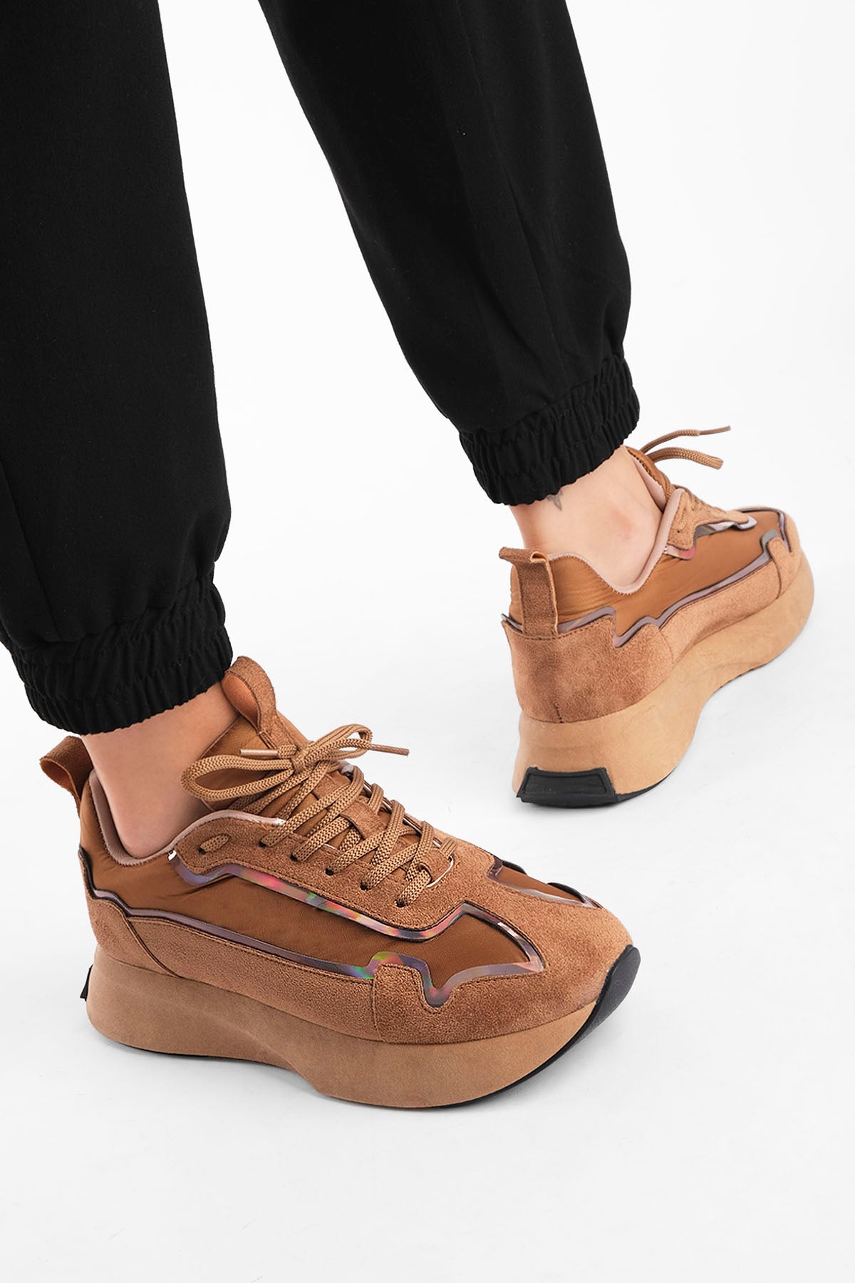 Kadın Sneaker Kalın Taban Spor Ayakkabı Puntes - Taba