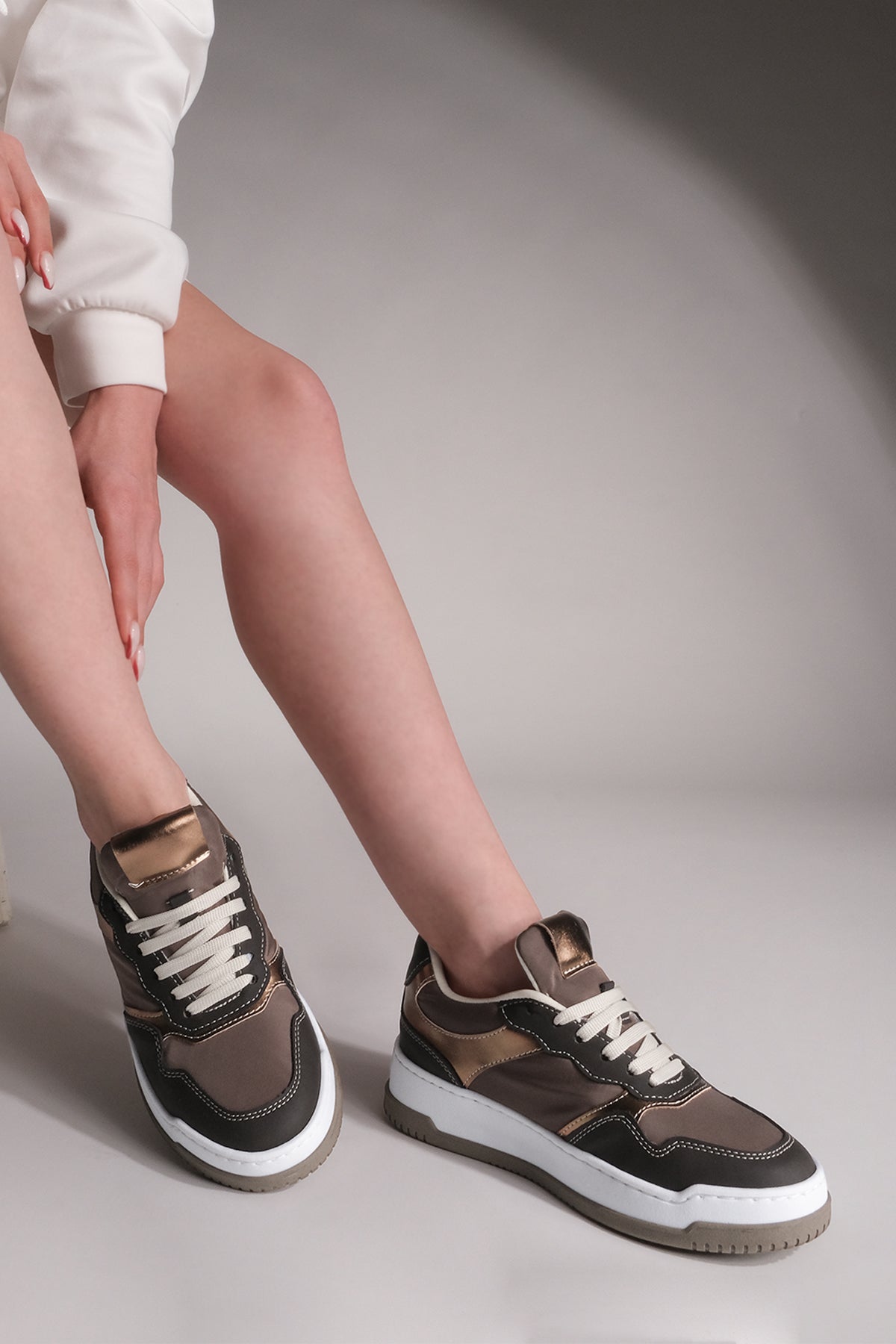 Kadın Sneaker Metalik Detaylı Spor Ayakkabı Atur - Kahve