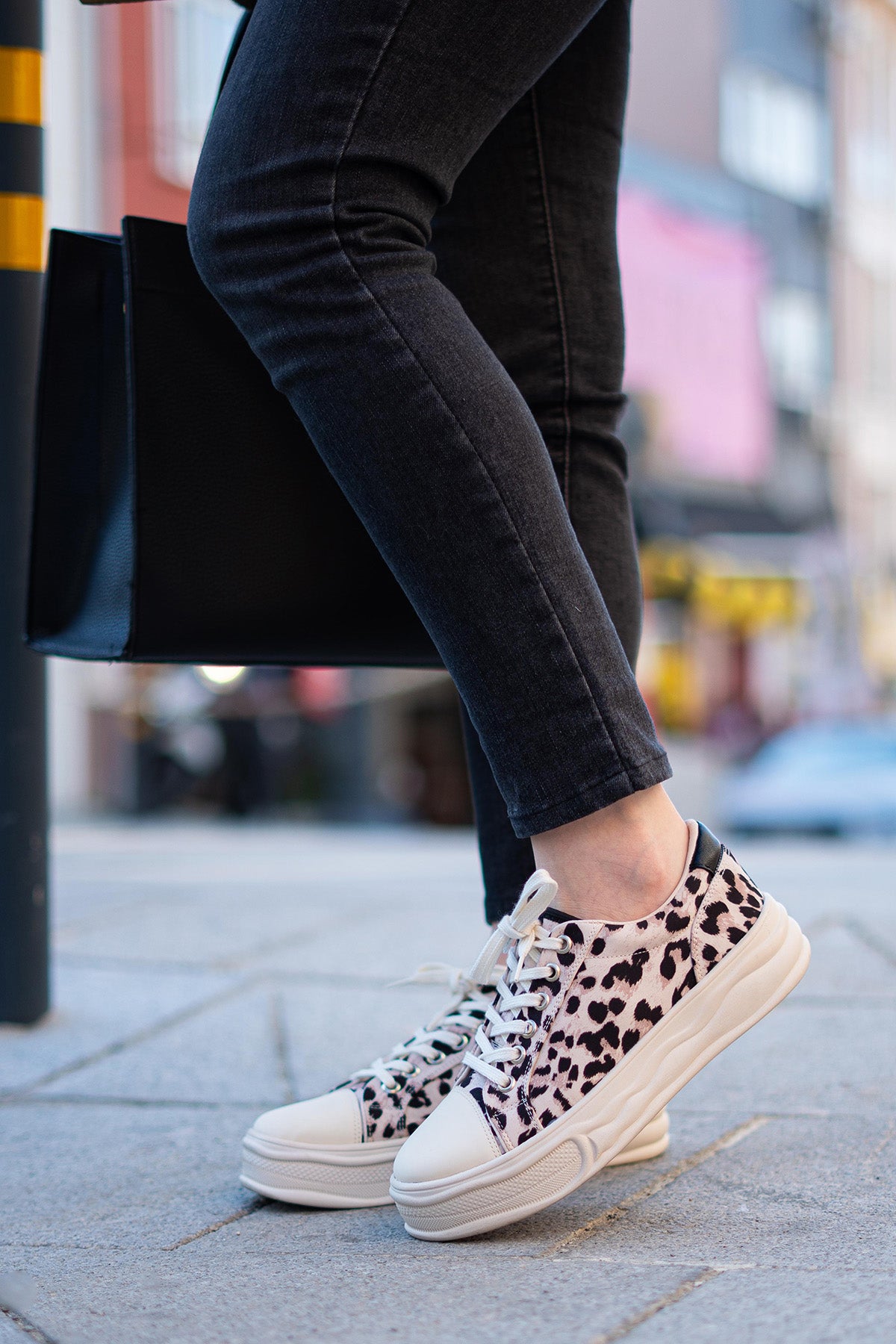 Kadın Sneaker Spor Ayakkabı Larka - Bej Leopar