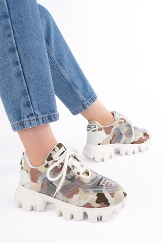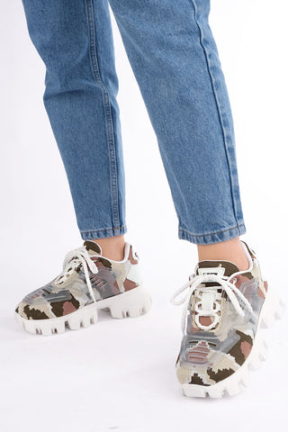 - Marjin'in benzersiz sneaker modellerinden Yehira, görenleri kendisine hayran bırakıyor. Kamuflaj bez kumaş ve şeffaf bantlarla bezenmiş ön kısmına eşlik eden yüksek tabanıyla spor aktivitelerinizde ya da günlük kombinlerinizde mutlaka yer alması gereken bağcıklı sneaker; siyah, beyaz, bej renkleriyle online alışverişlerinize özel indirim fırsatlarıyla sizleri bekliyor.