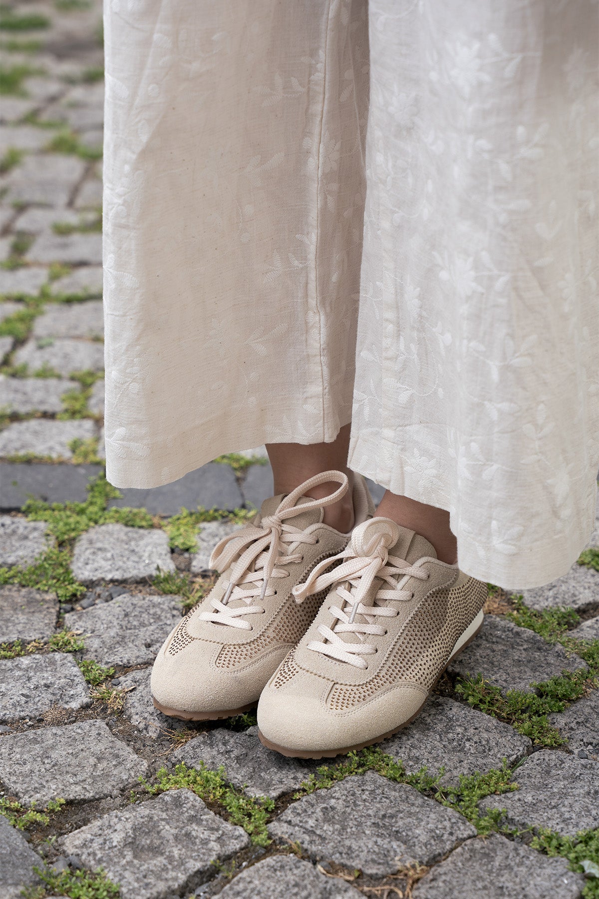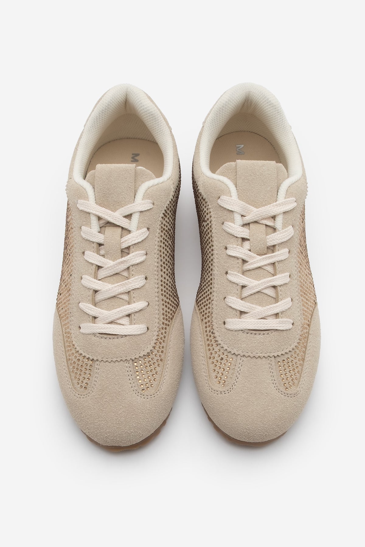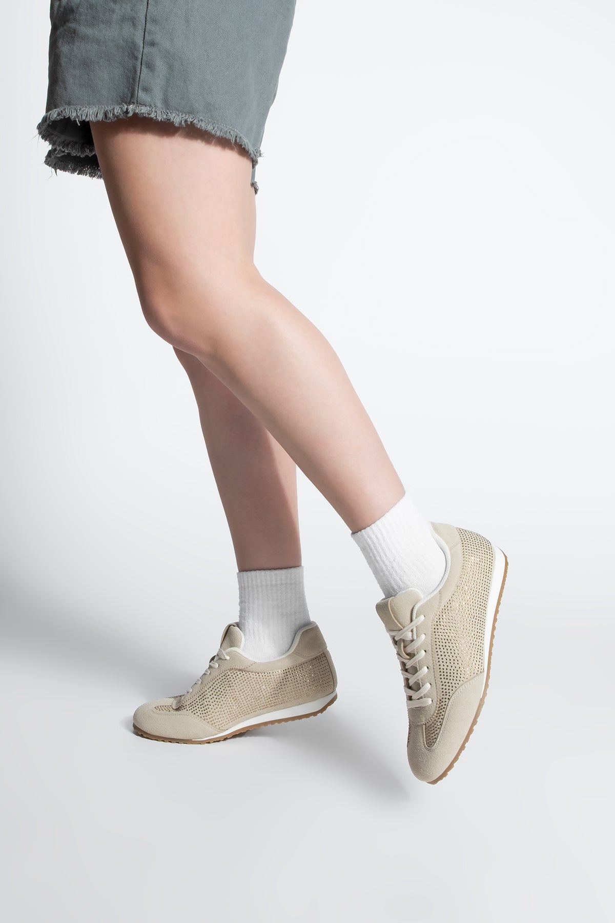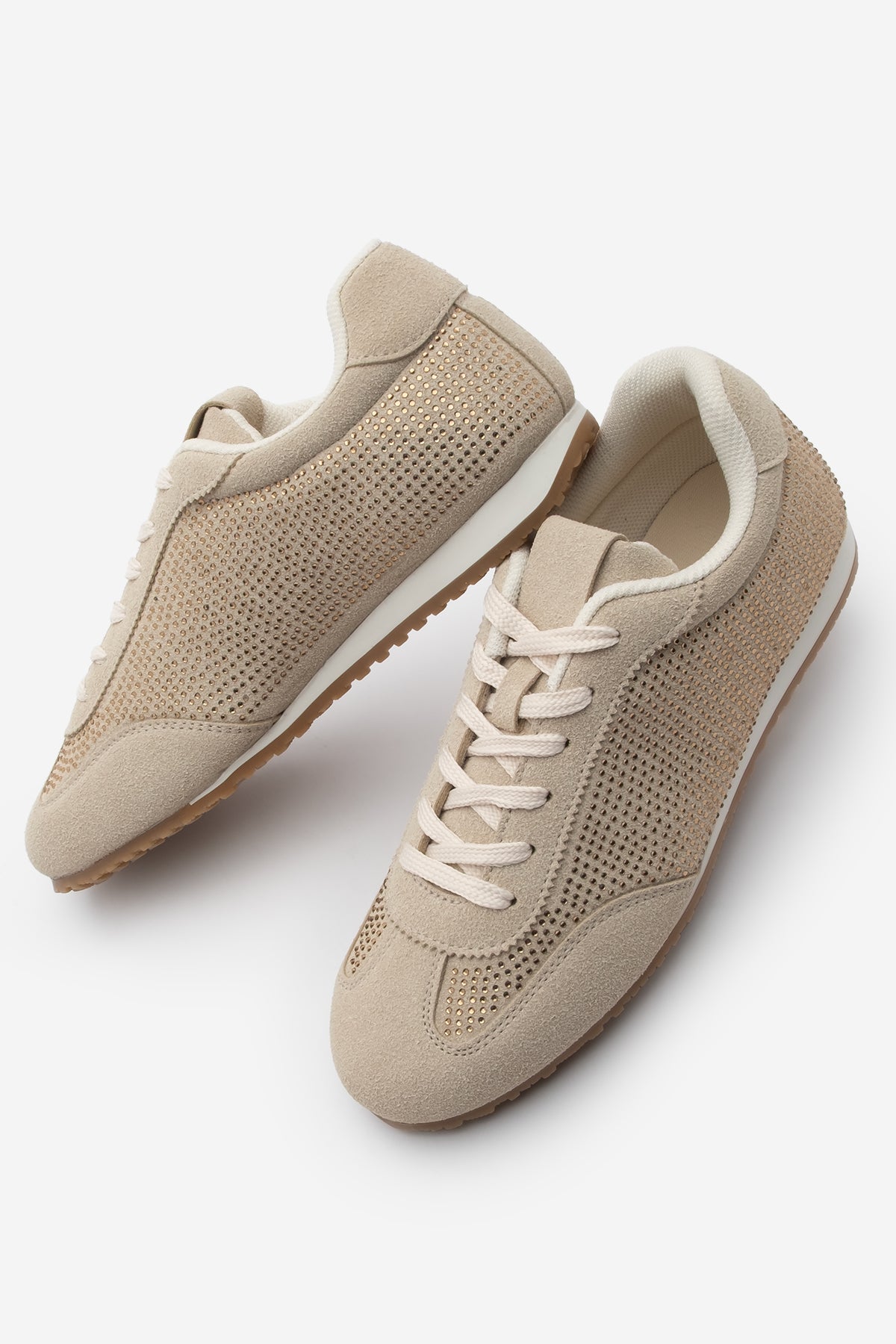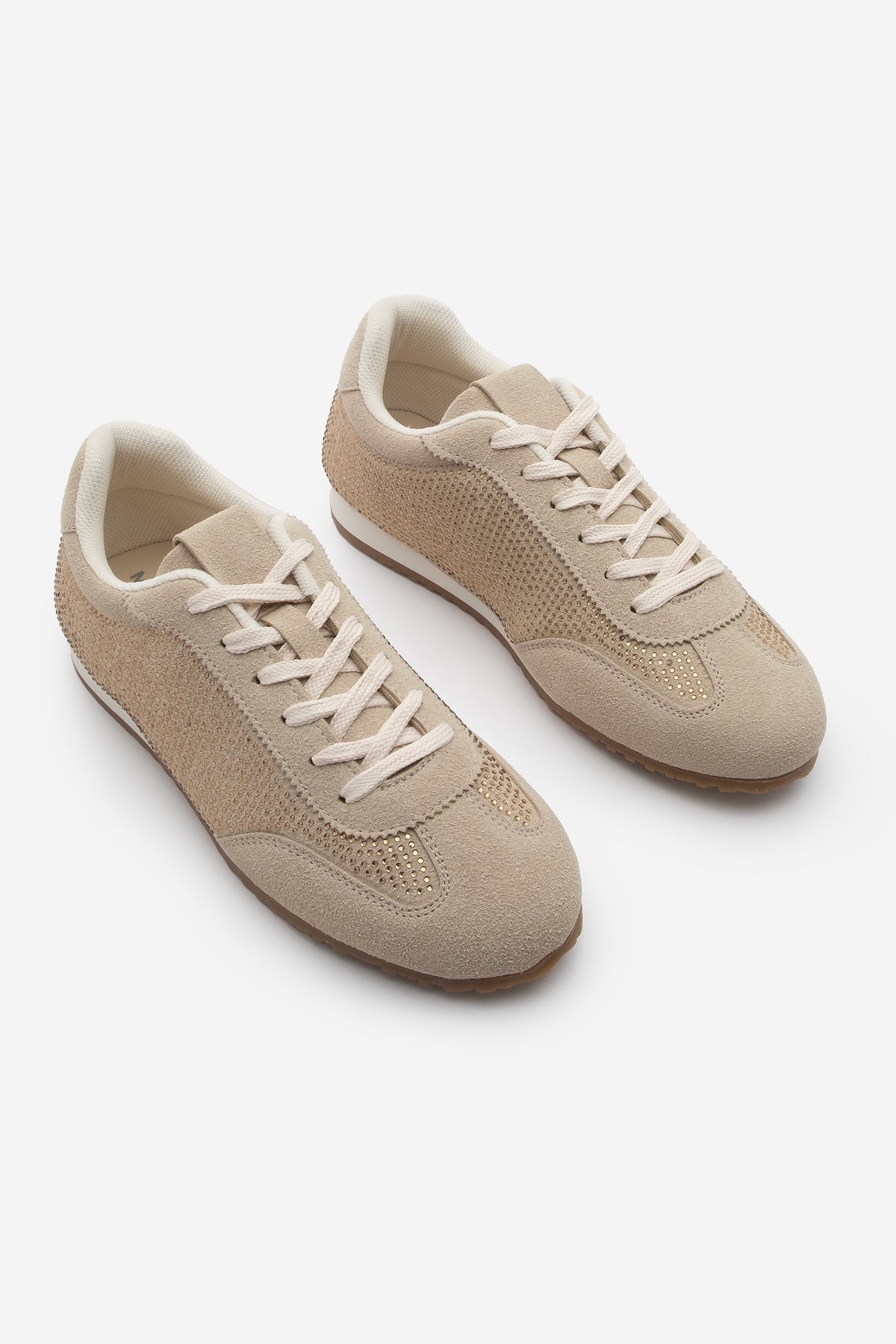 Kadın Sneaker Taşlı Spor Ayakkabı Dorni - Bej Süet
