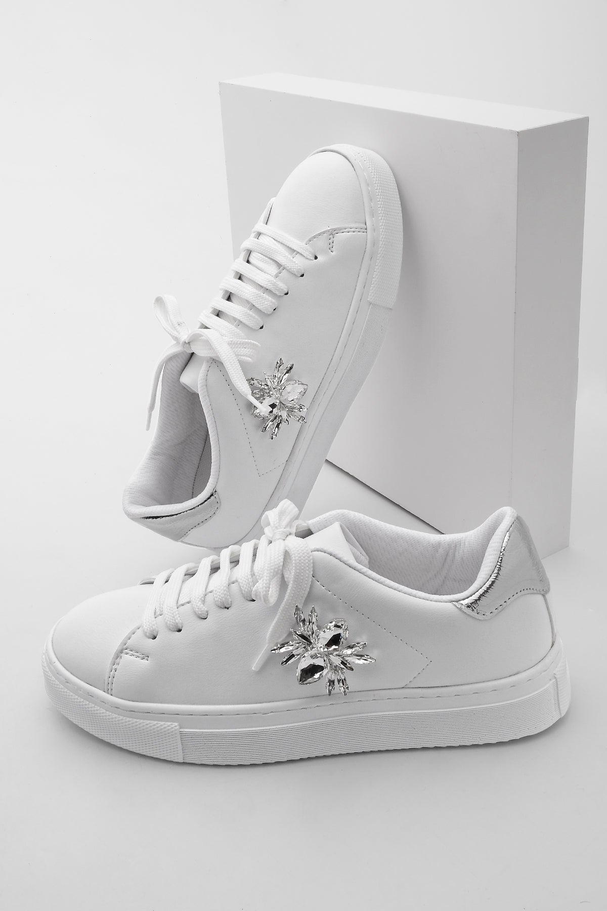 Kadın Sneaker Taşlı Spor Ayakkabı Zilva - Beyaz