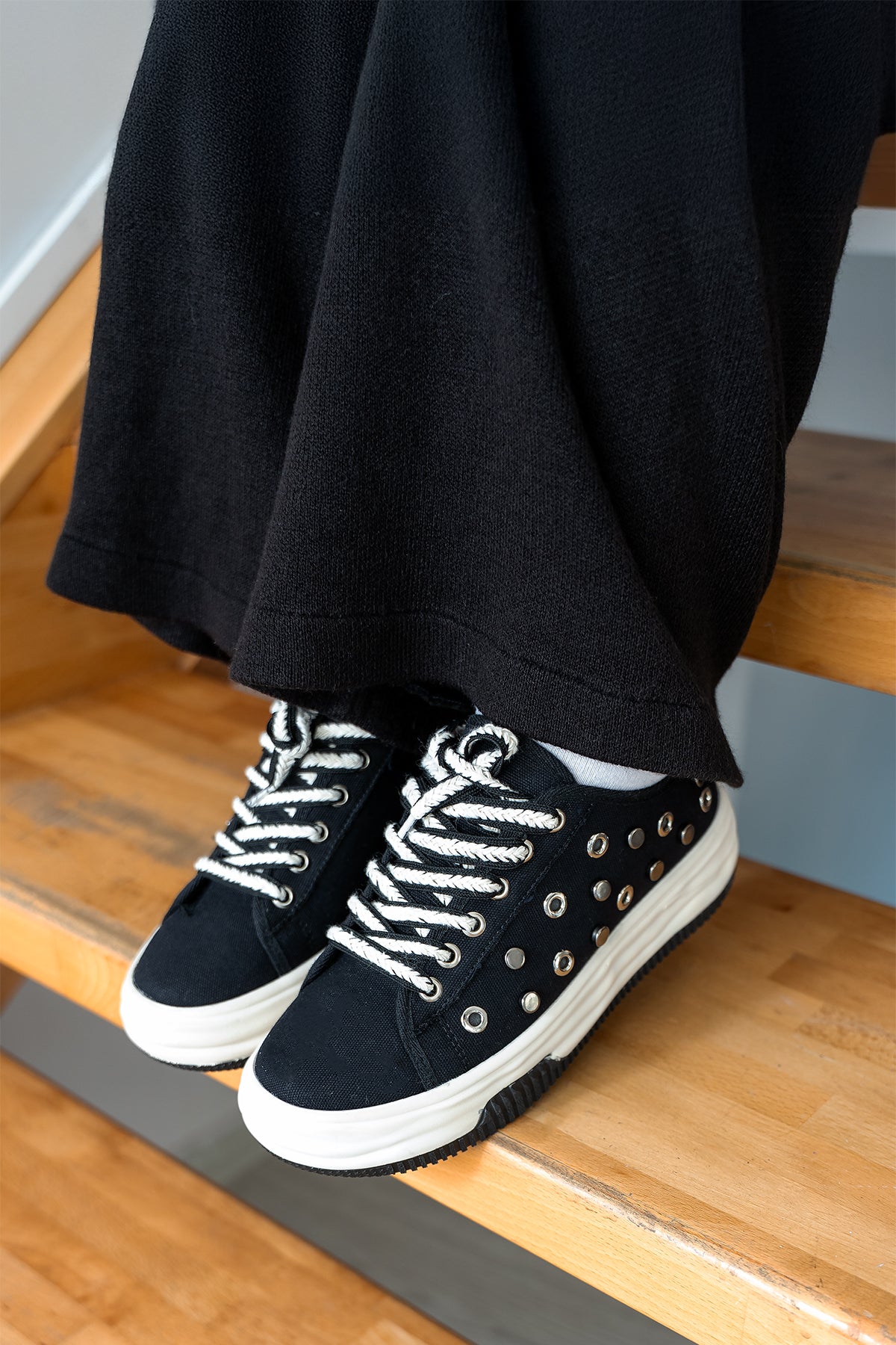 Kadın Sneaker Troklu Zımbalı Spor Ayakkabı Viben - Siyah