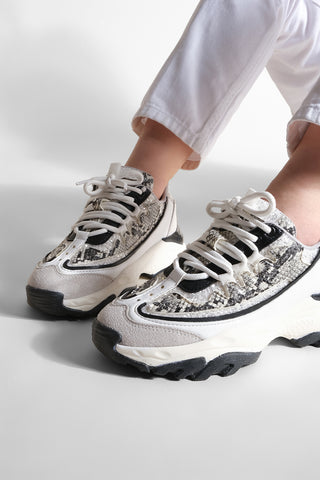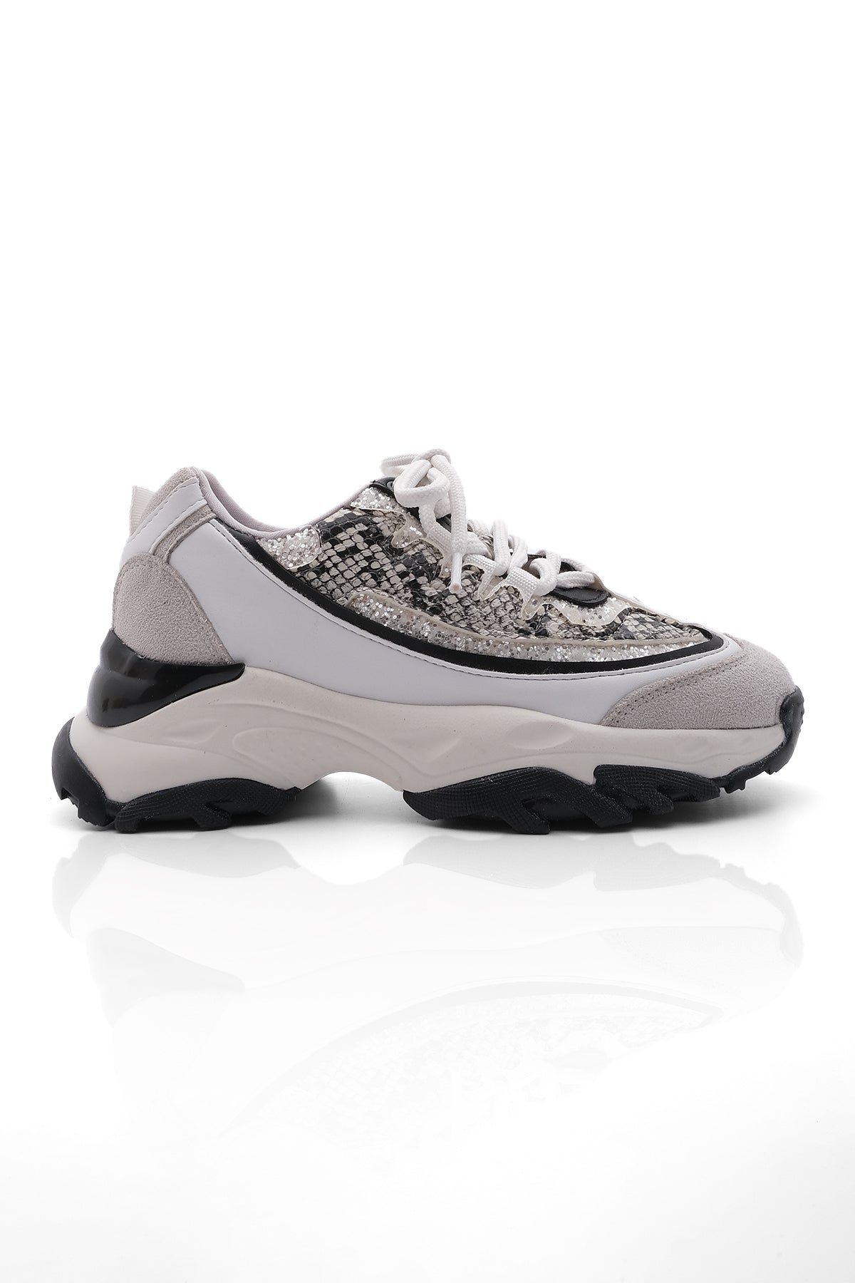 Kadın Sneaker Yılan Desenli Pullu Spor Ayakkabı Petor - Beyaz