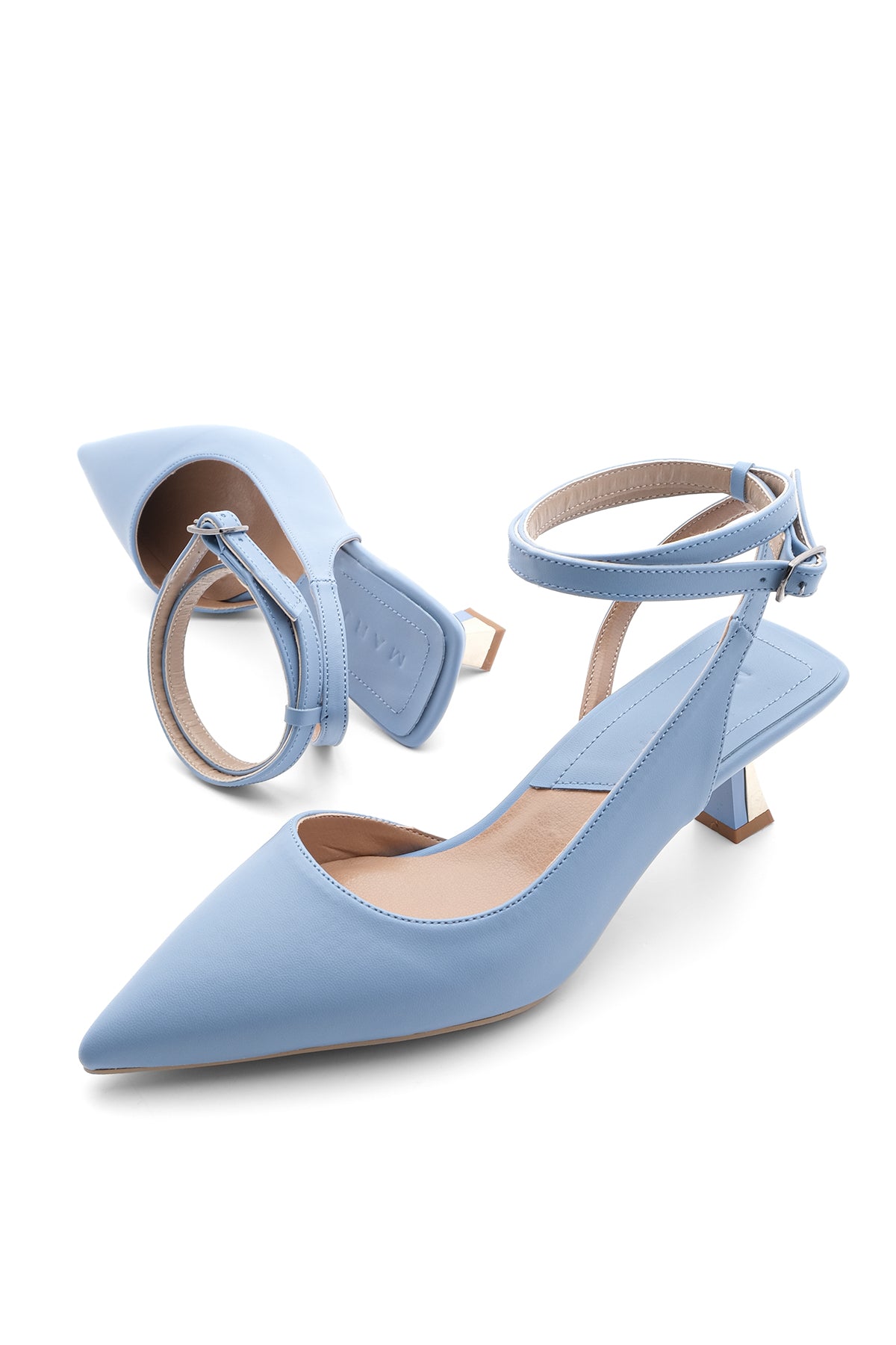 Kadın Stiletto Ayna Ökçe Detaylı Topuklu Ayakkabı Posten - Mavi