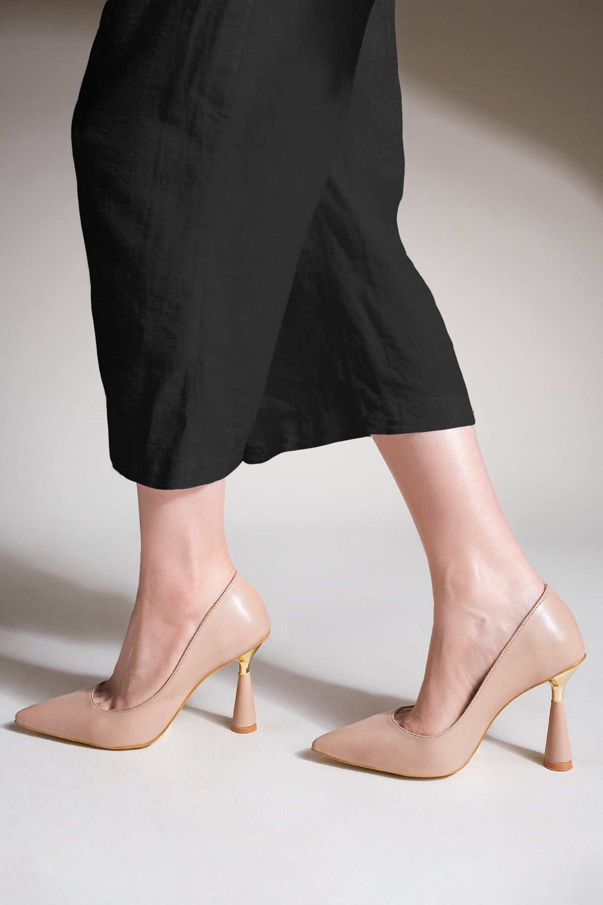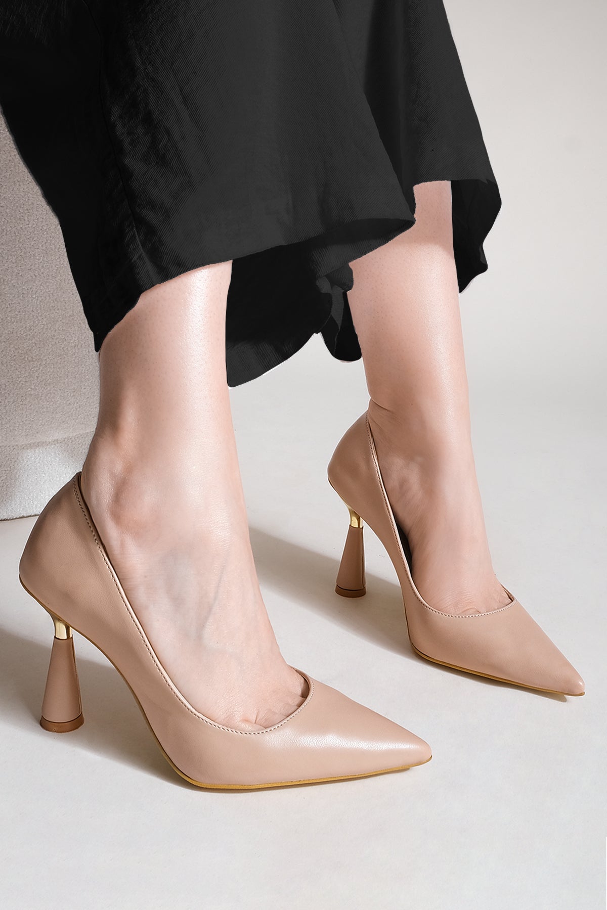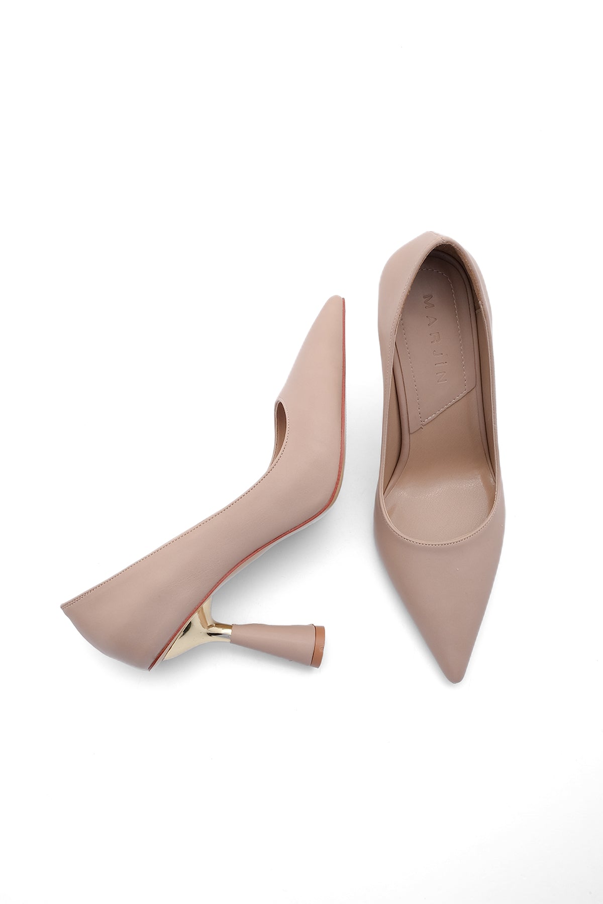 Kadın Stiletto Ayna Ökçe Topuklu Ayakkabı Estor - Bej