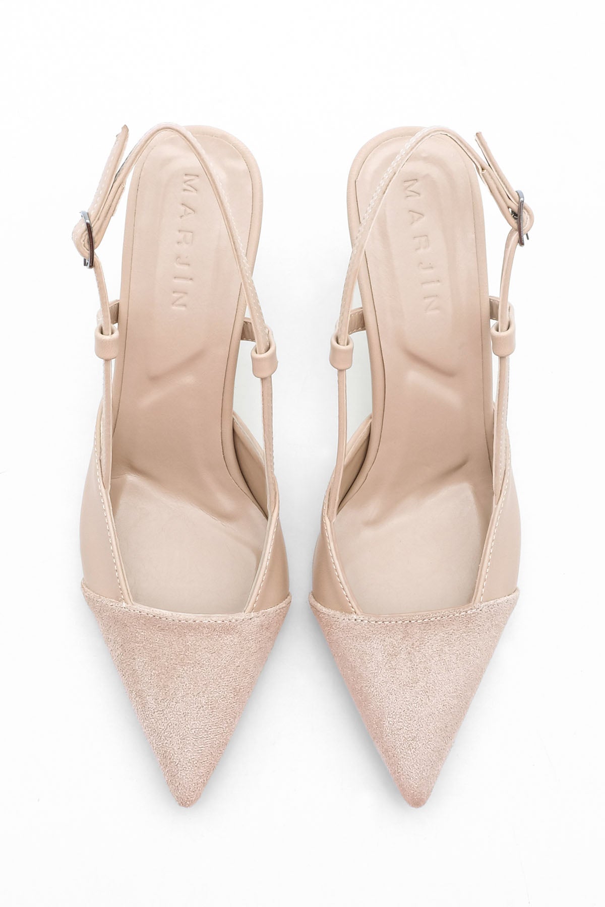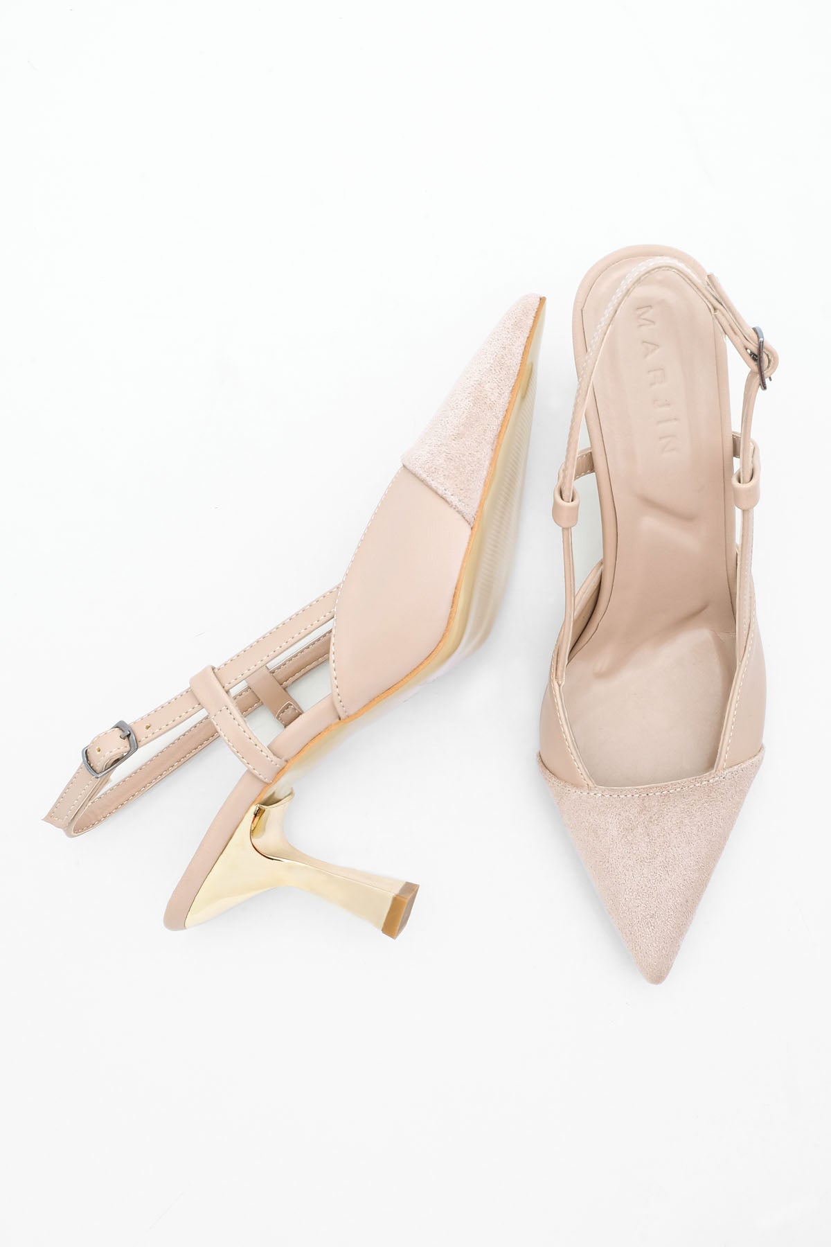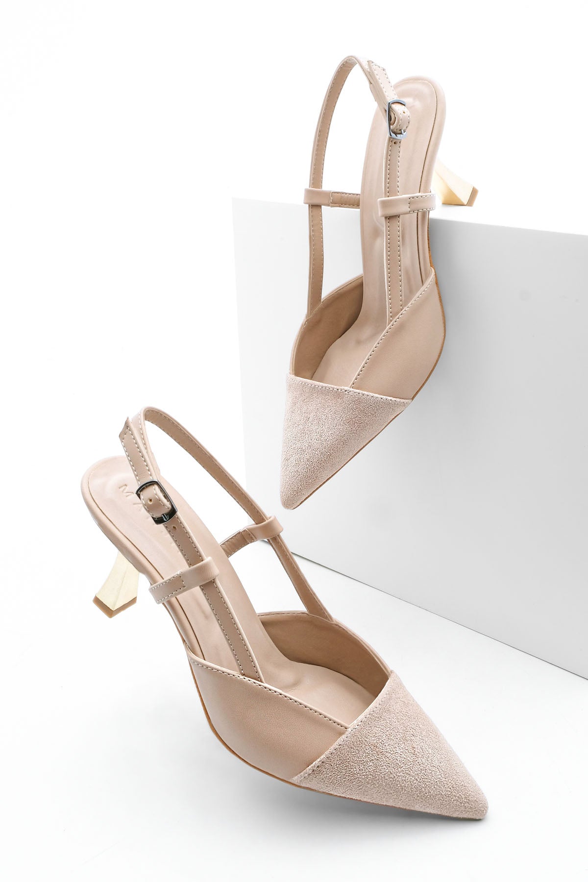 Kadın Stiletto Ayna Ökçe Topuklu Ayakkabı Sirele - Bej Süet