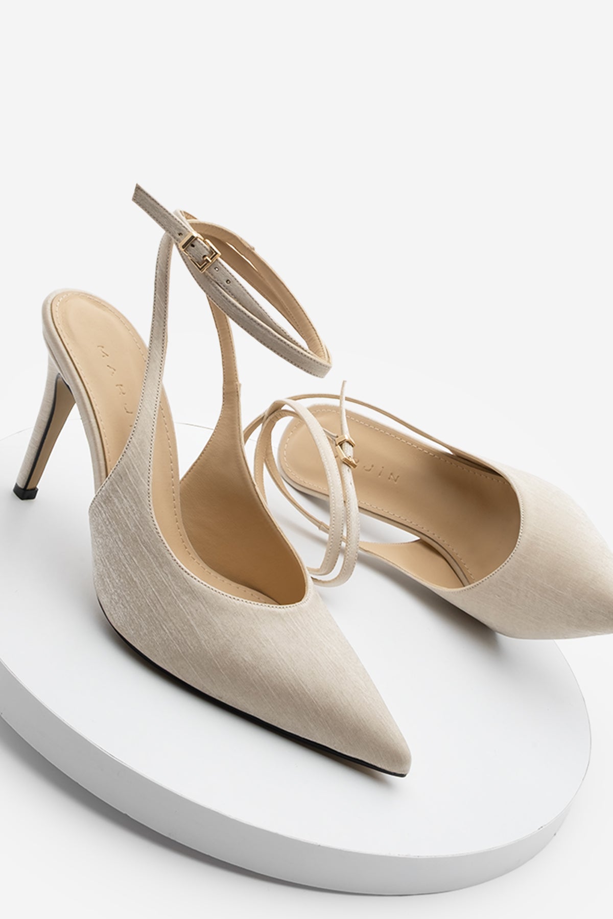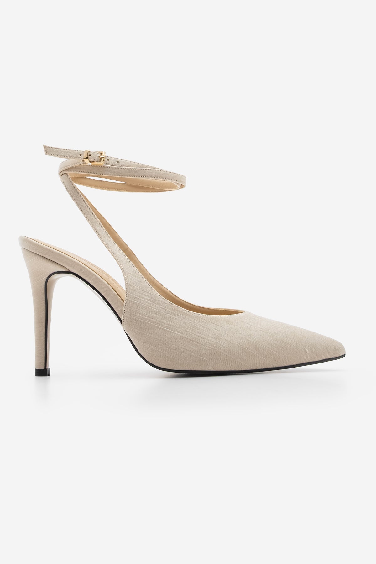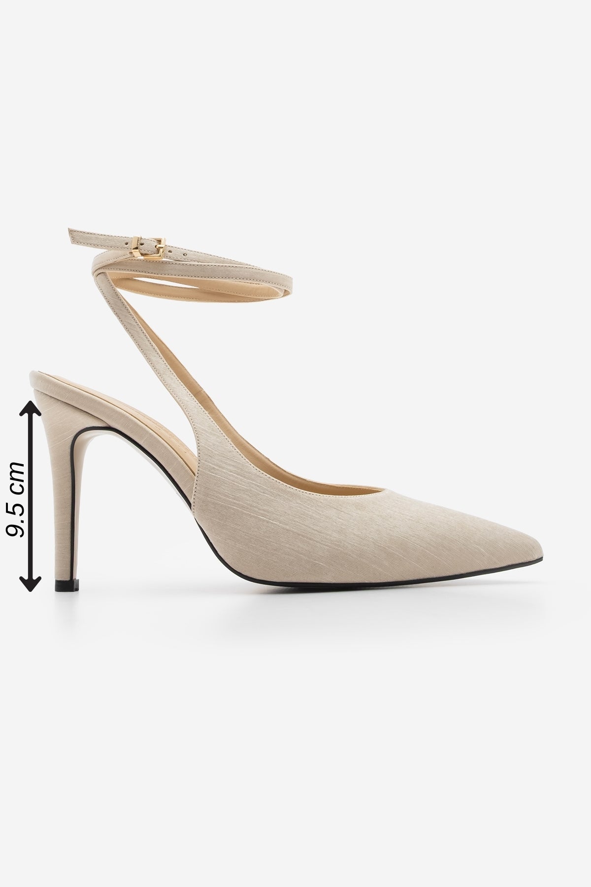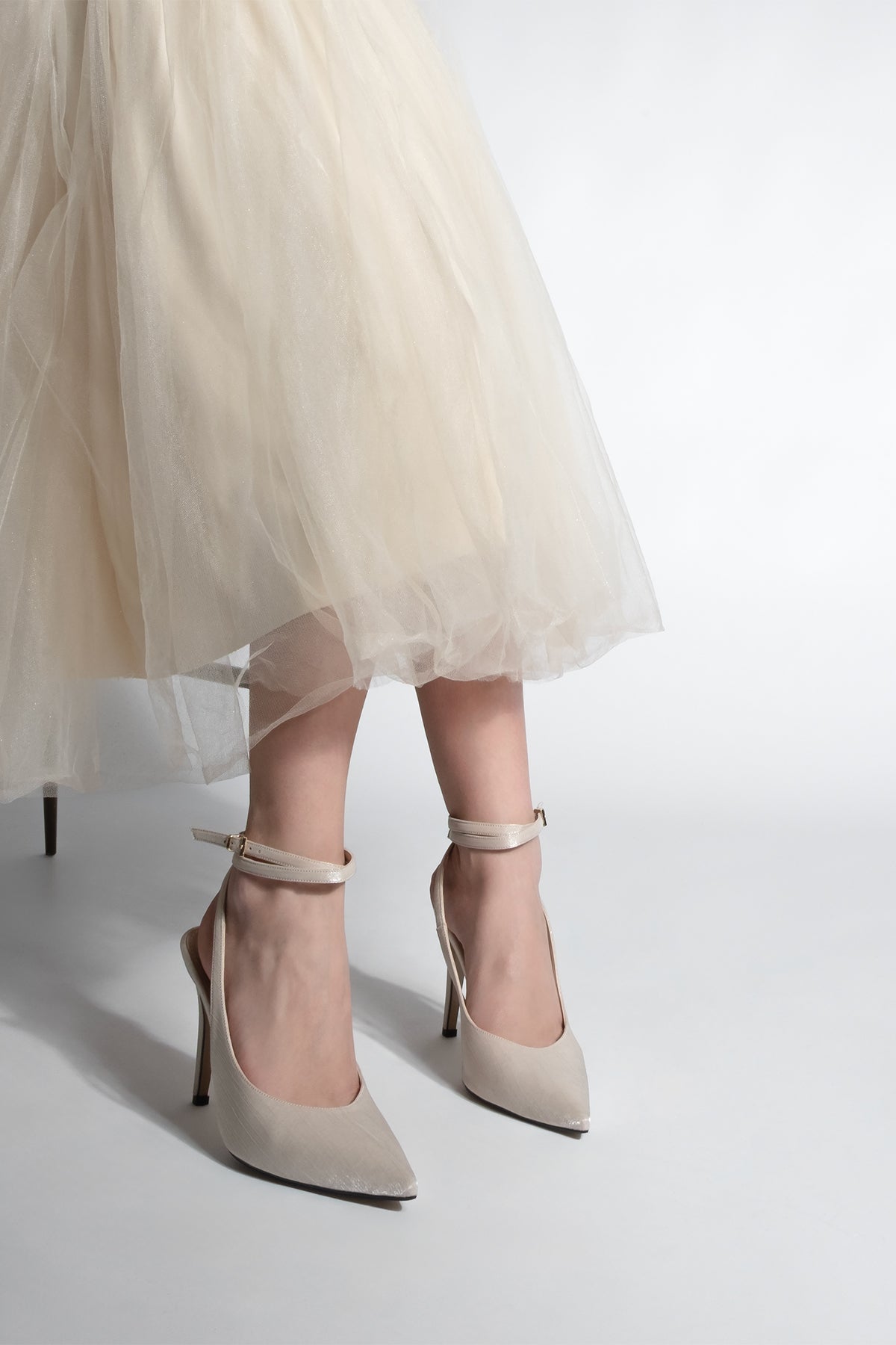 Kadın Stiletto Bilekten Bağlamalı Topuklu Ayakkabı Gisan - Bej Saten