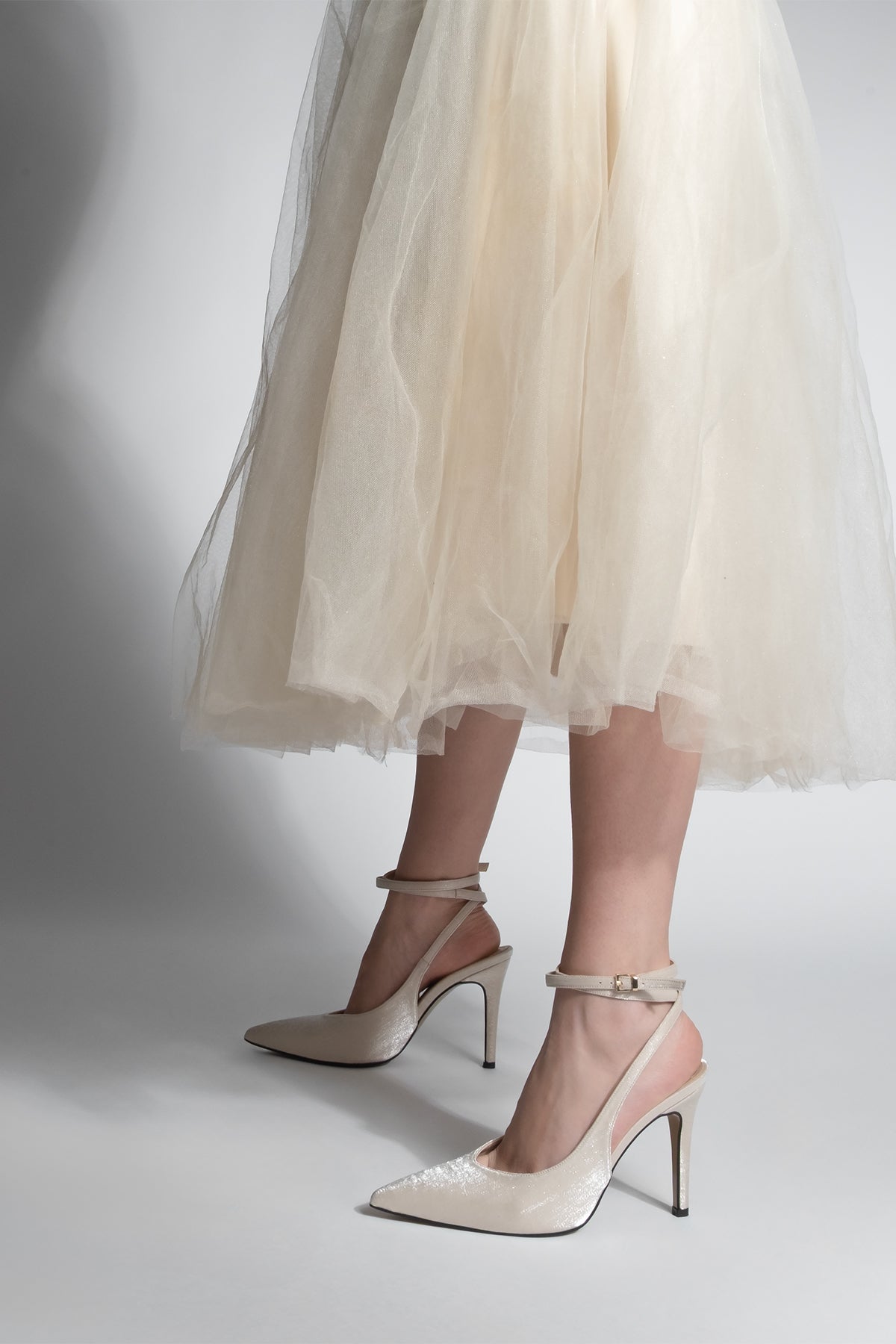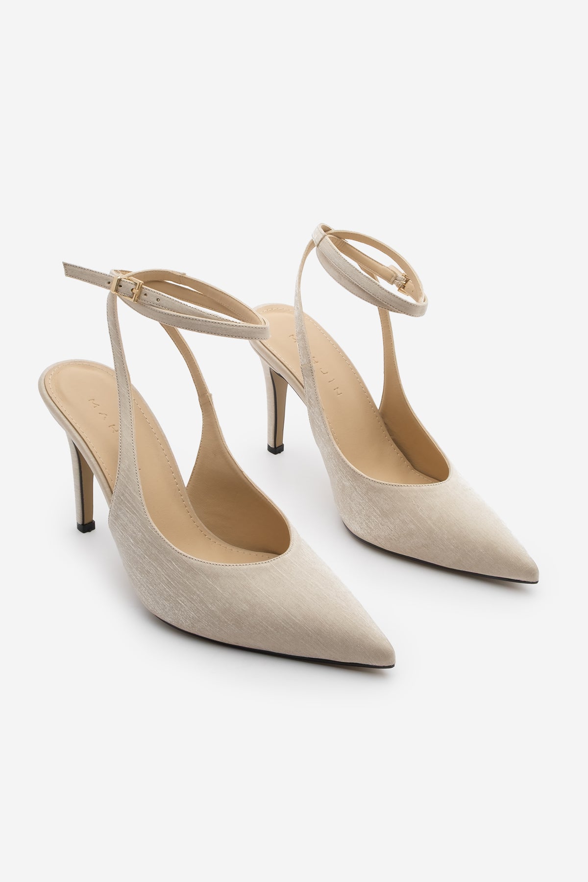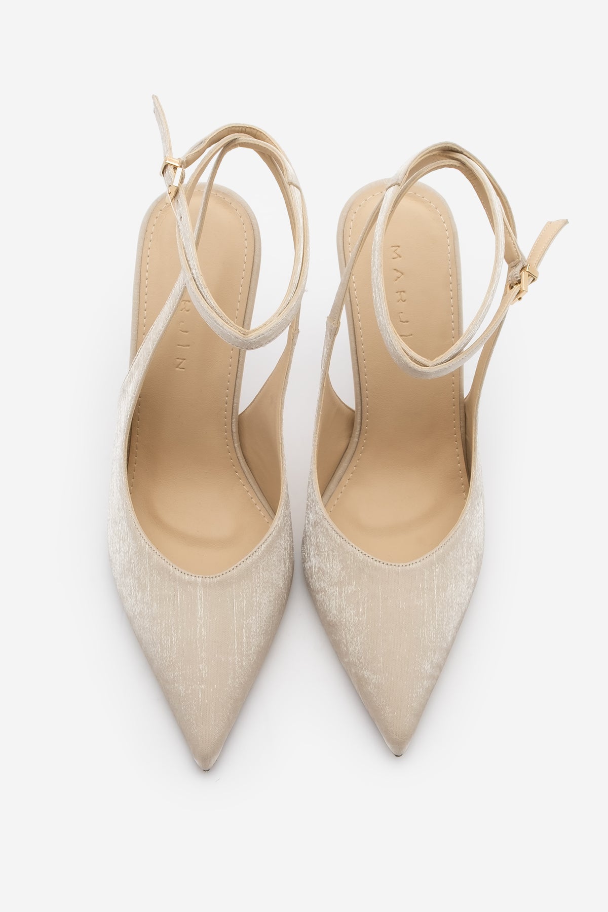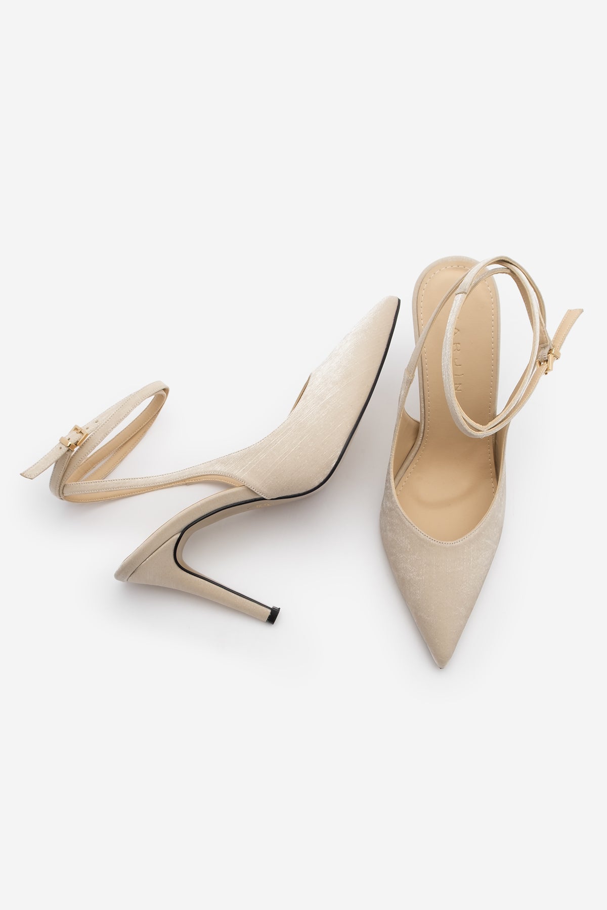 Kadın Stiletto Bilekten Bağlamalı Topuklu Ayakkabı Gisan - Bej Saten