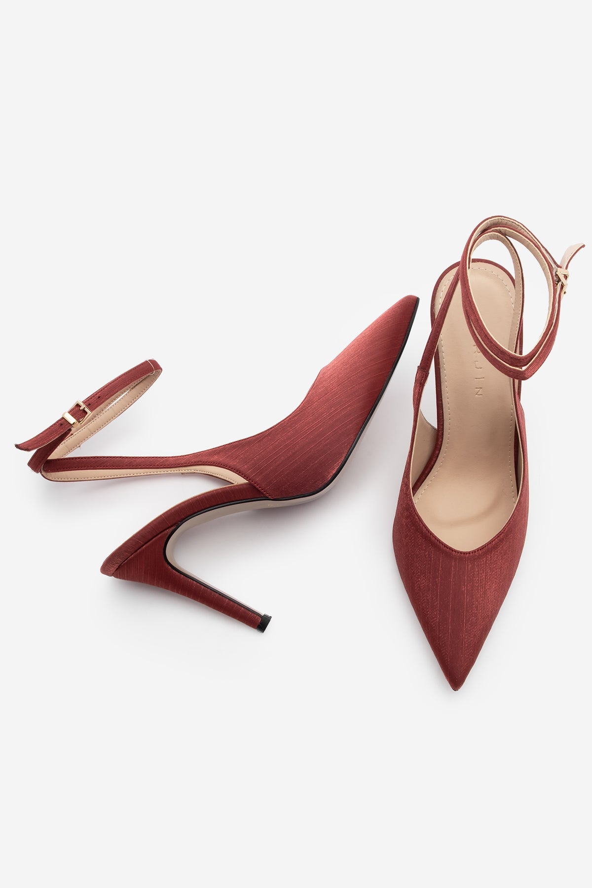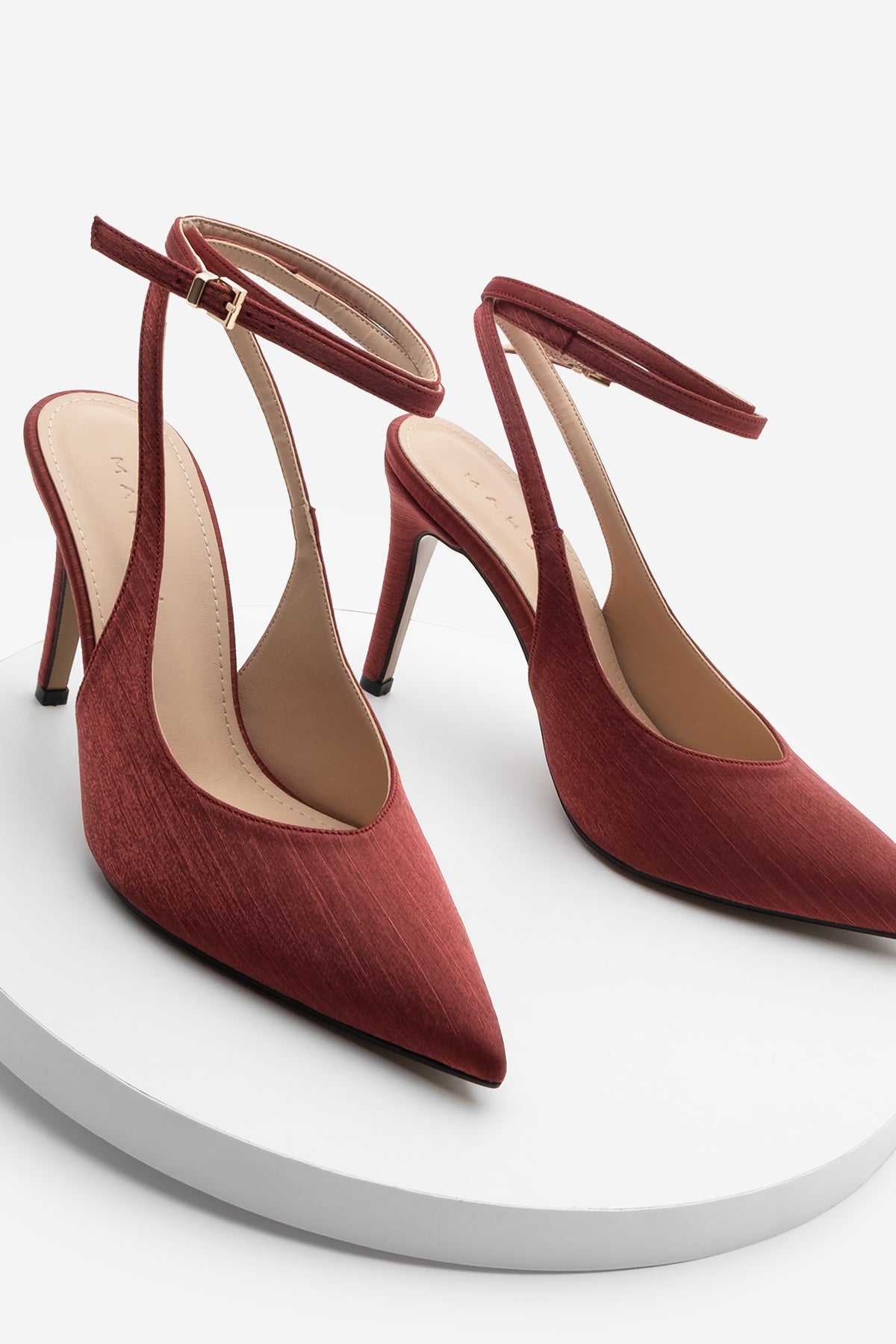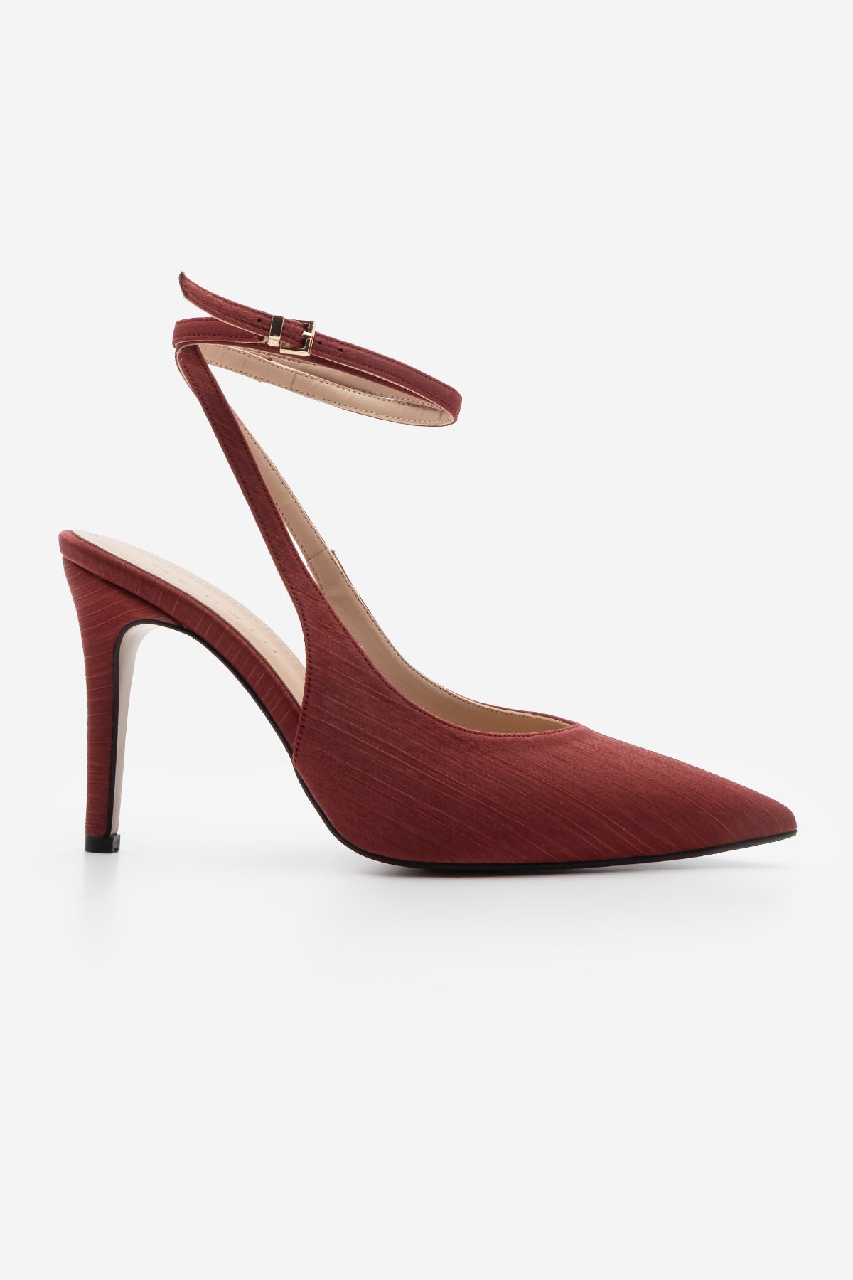 Kadın Stiletto Bilekten Bağlamalı Topuklu Ayakkabı Gisan - Bordo Saten