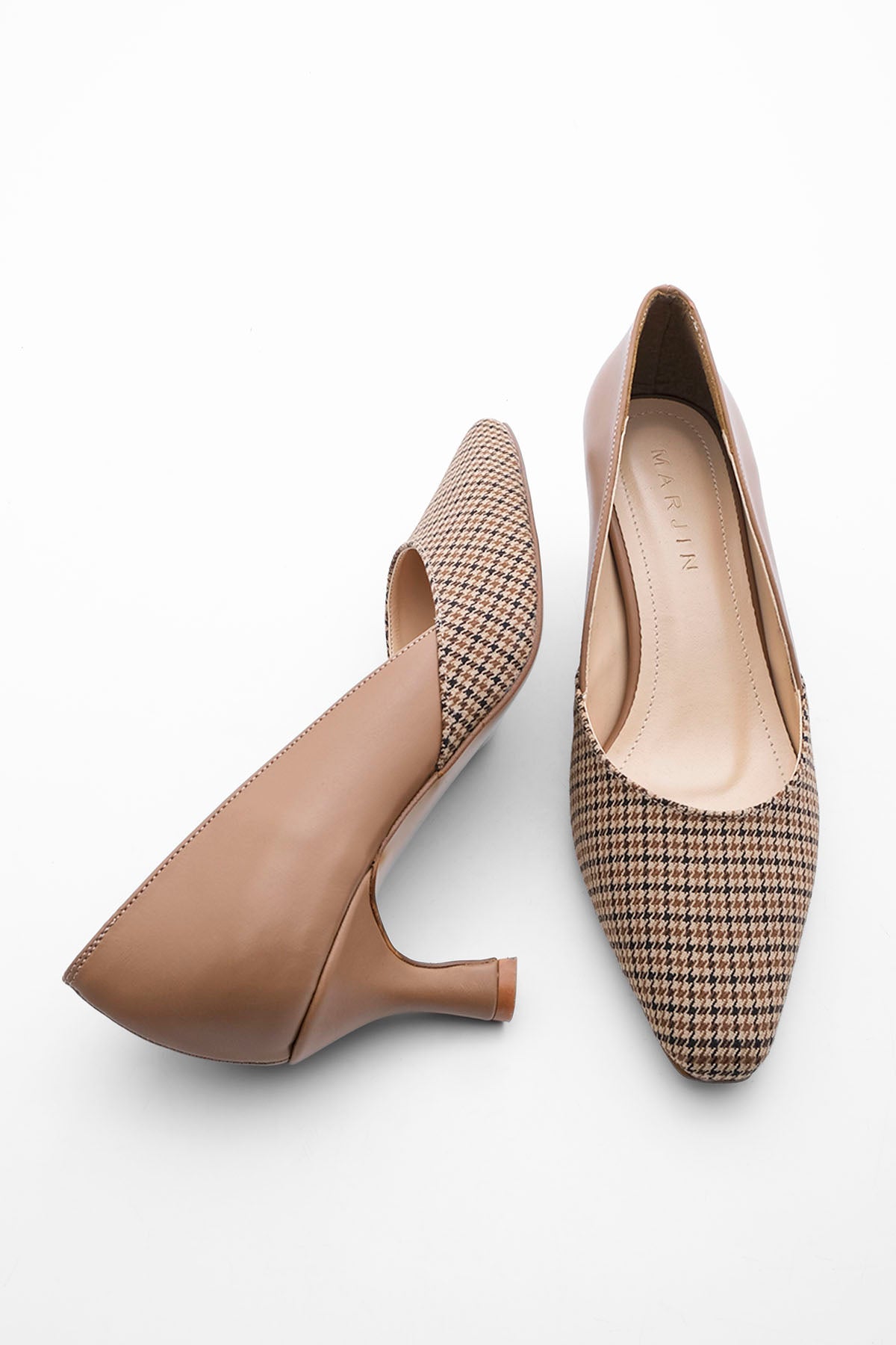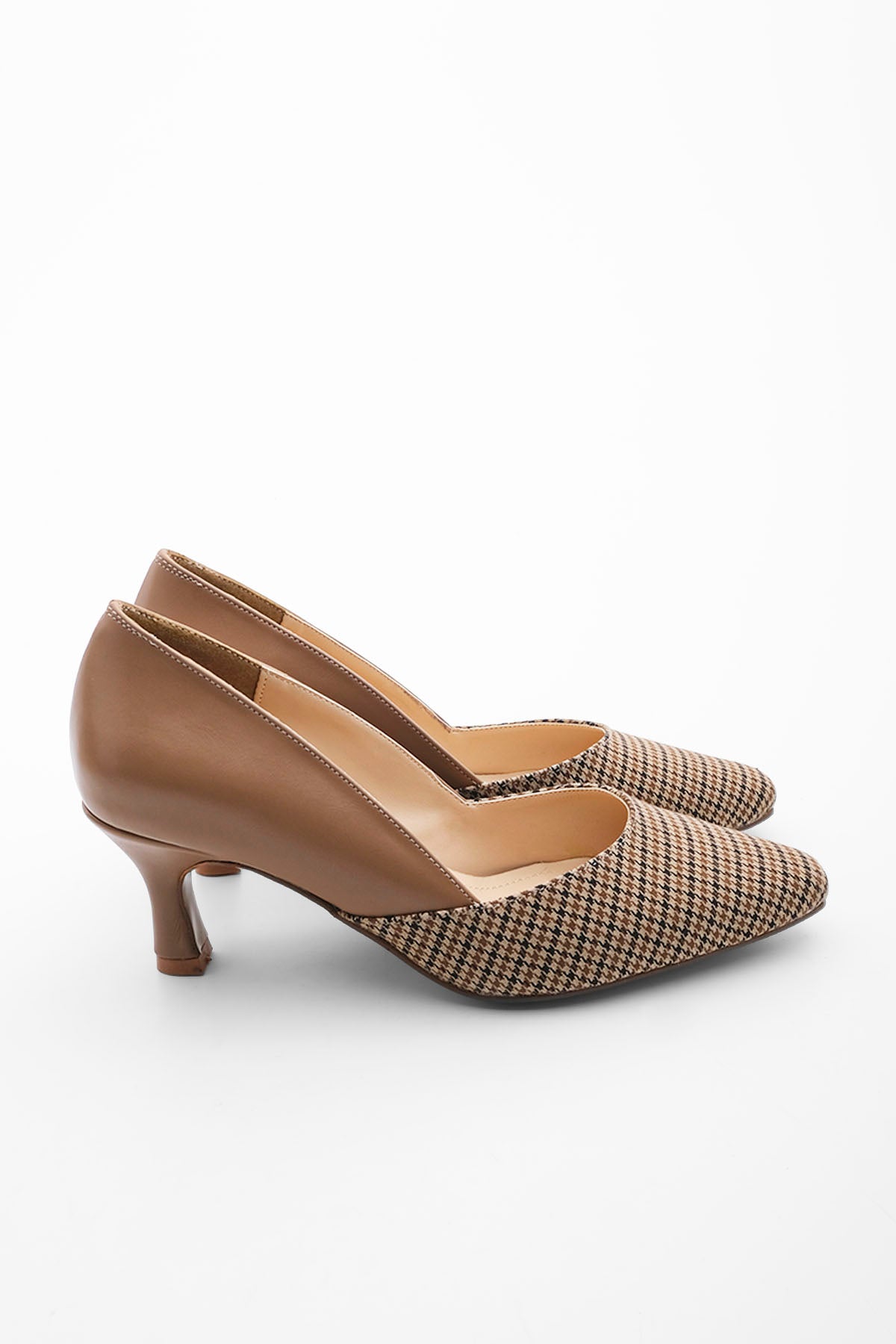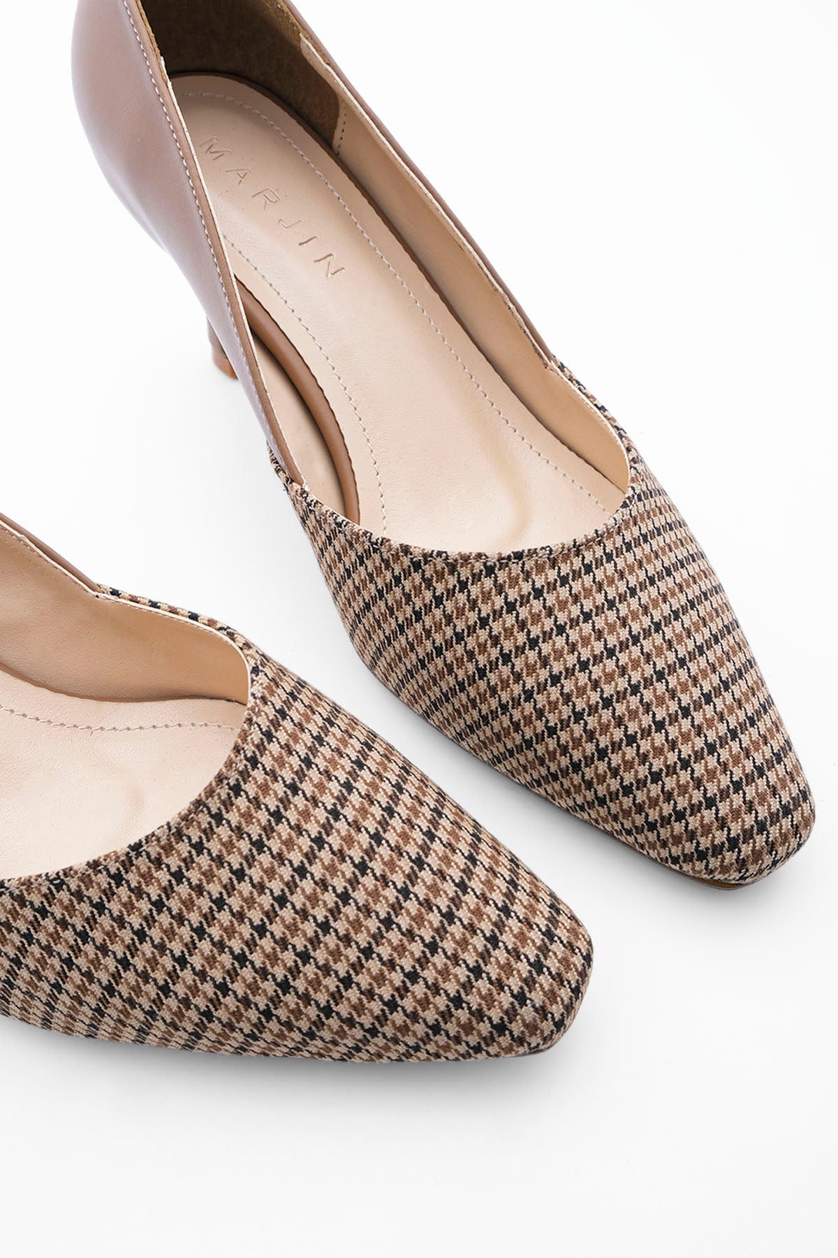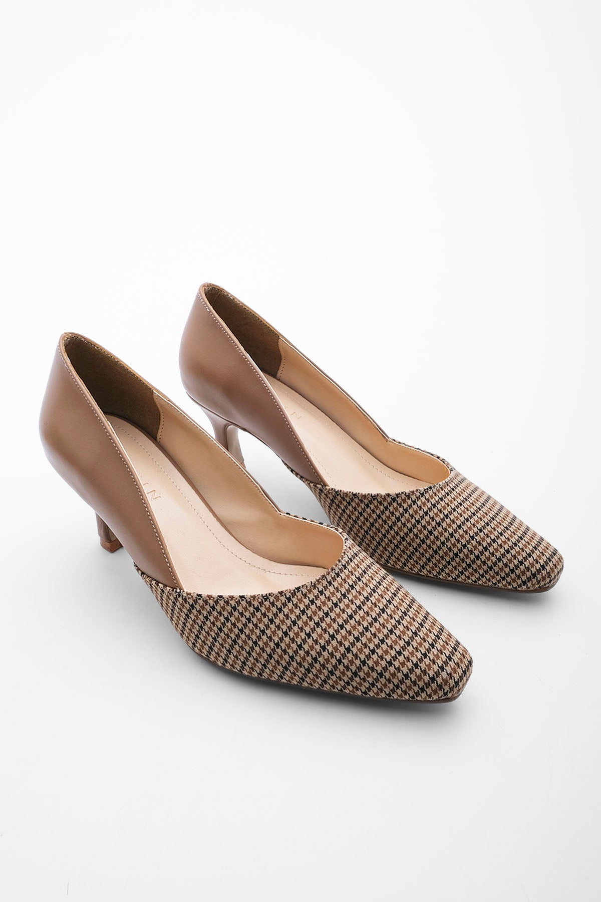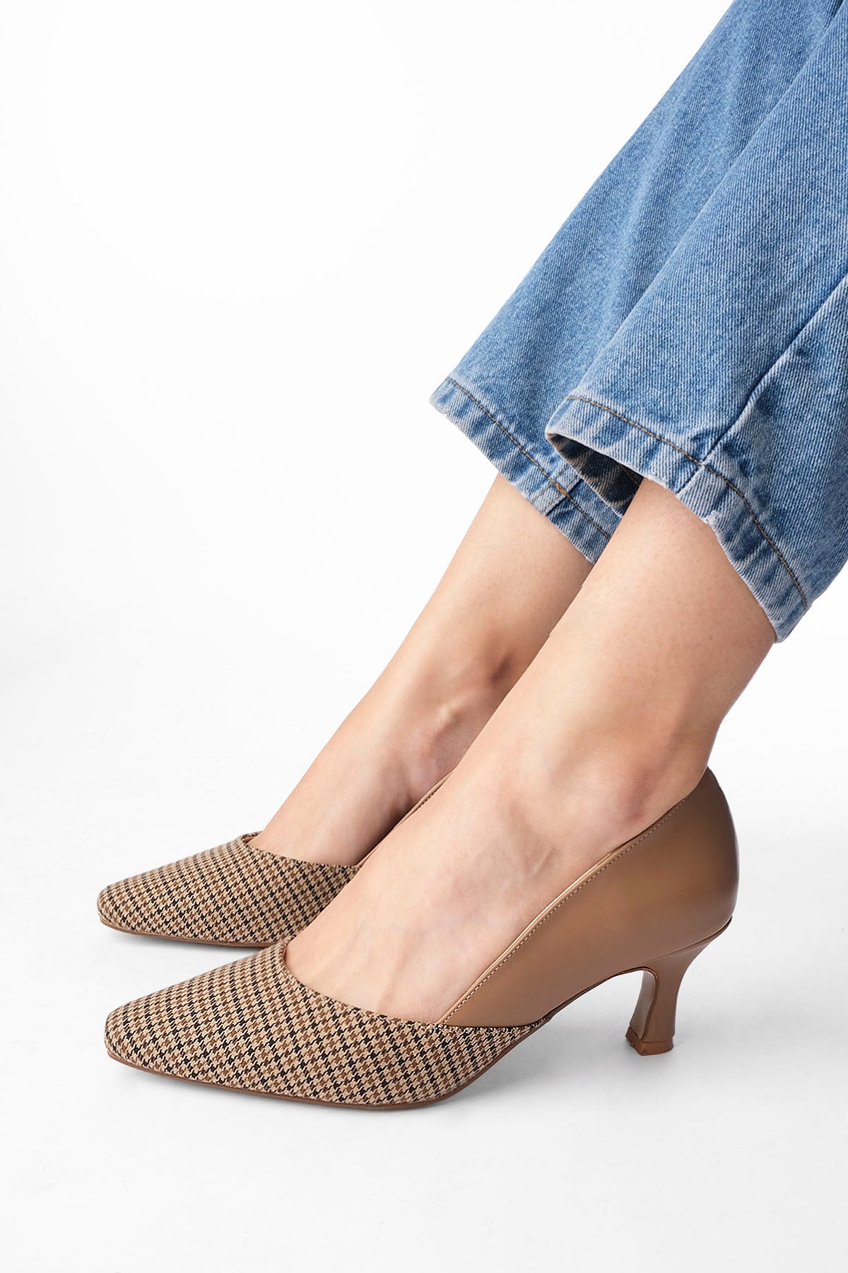 Kadın Stiletto Ekoseli Topuklu Ayakkabı Vonez - Vizon