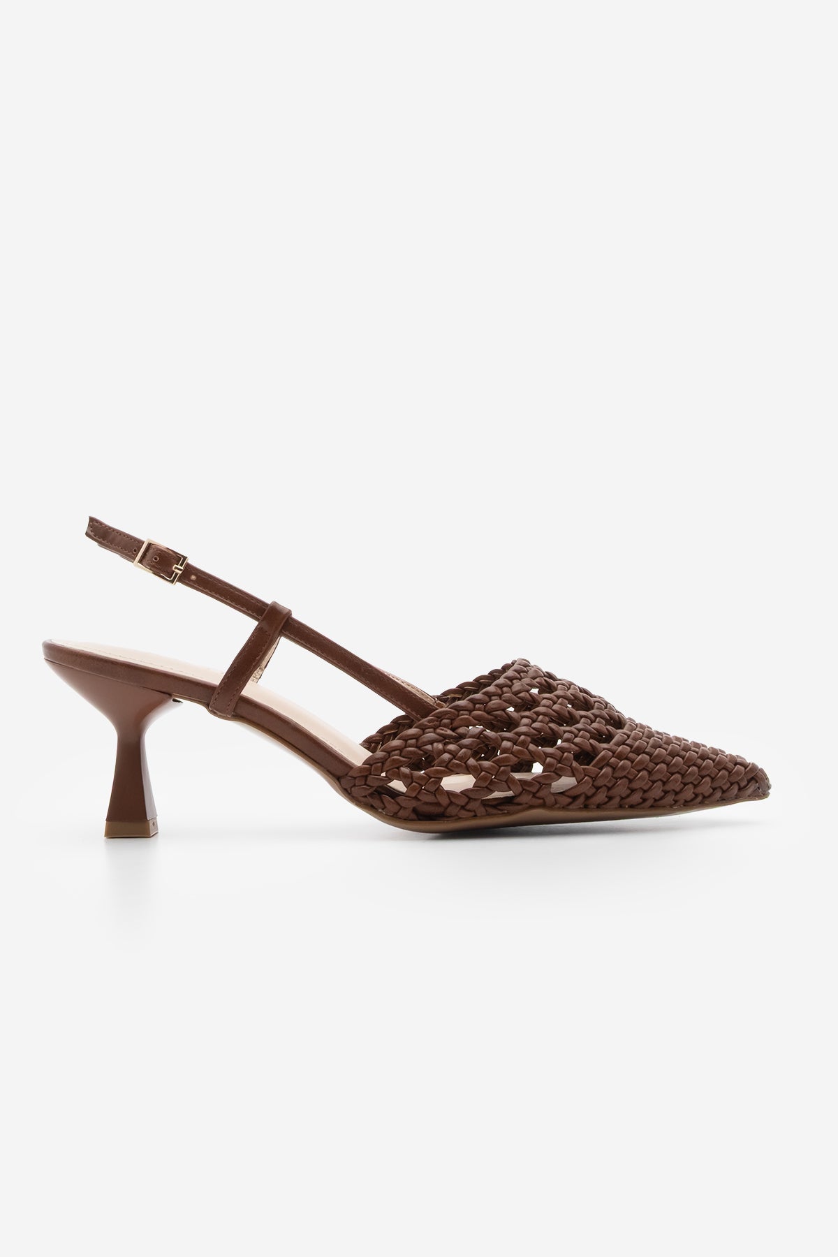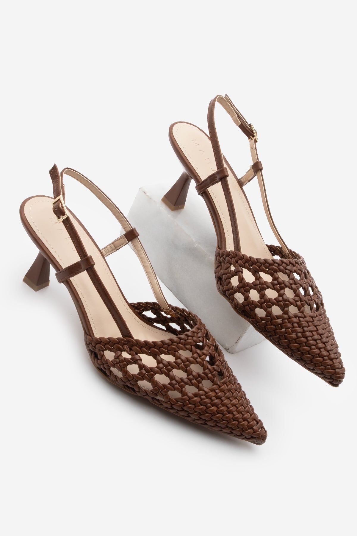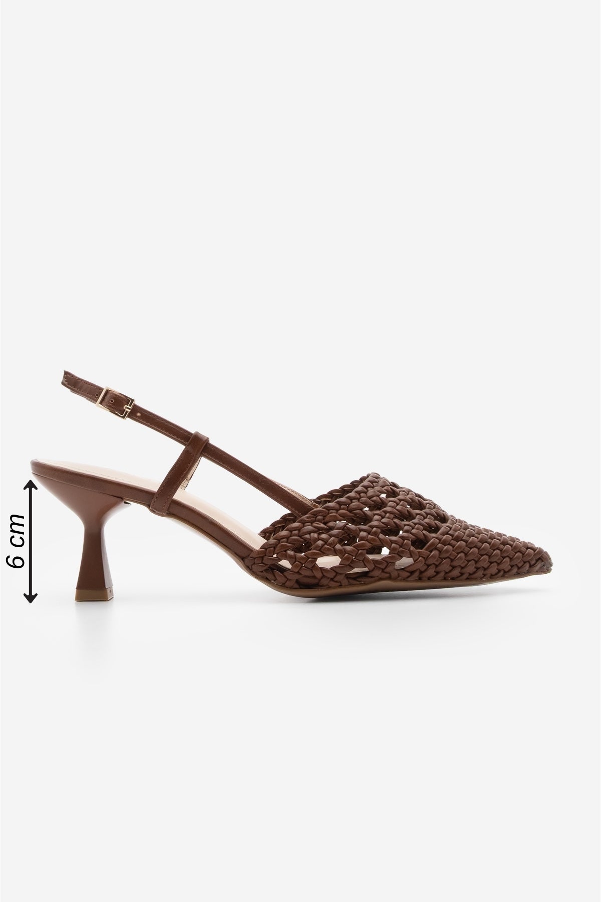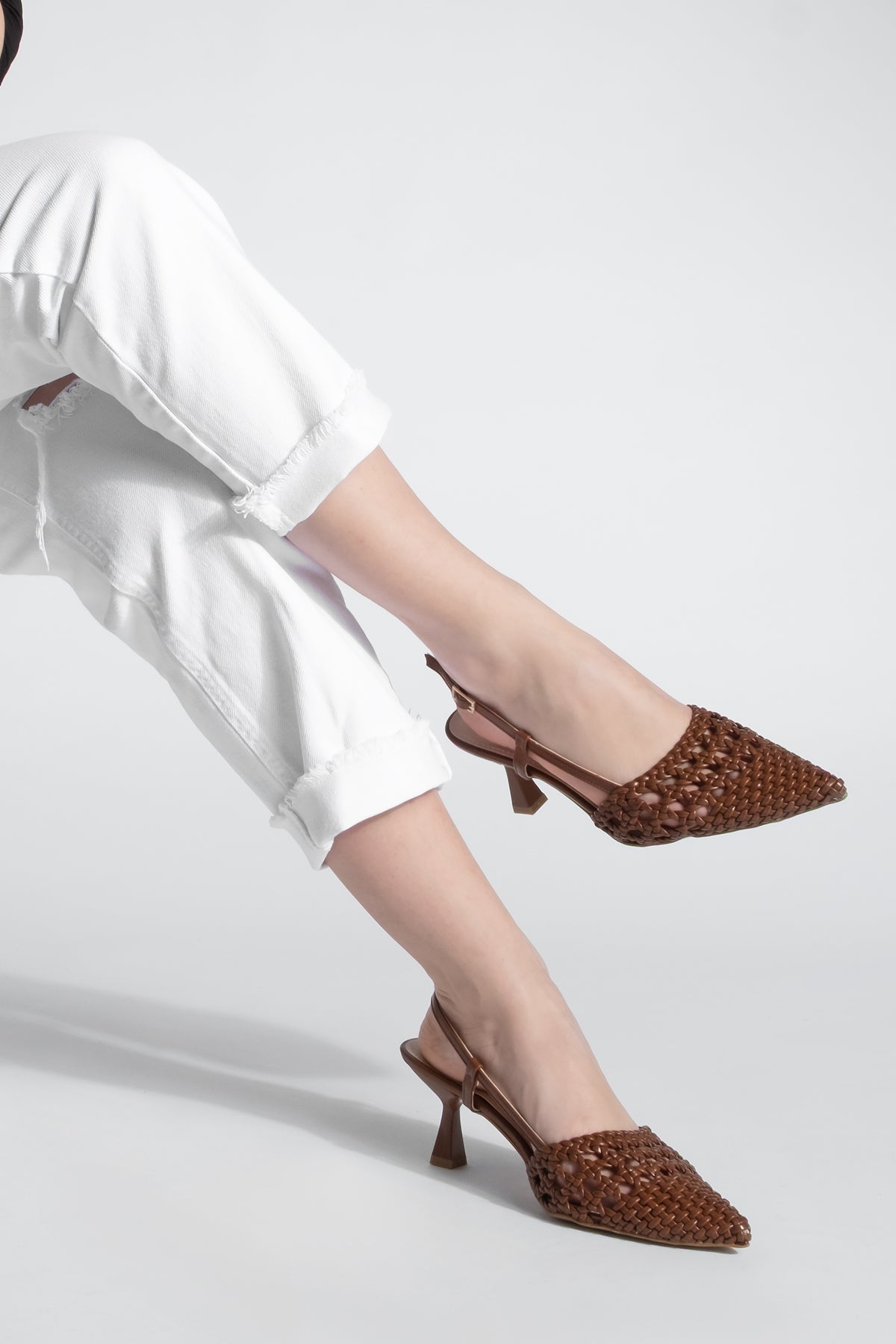 Kadın Stiletto El Örgülü Topuklu Ayakkabı Todela - Taba
