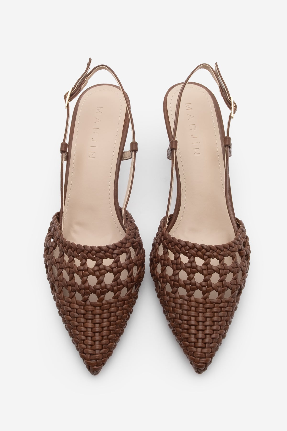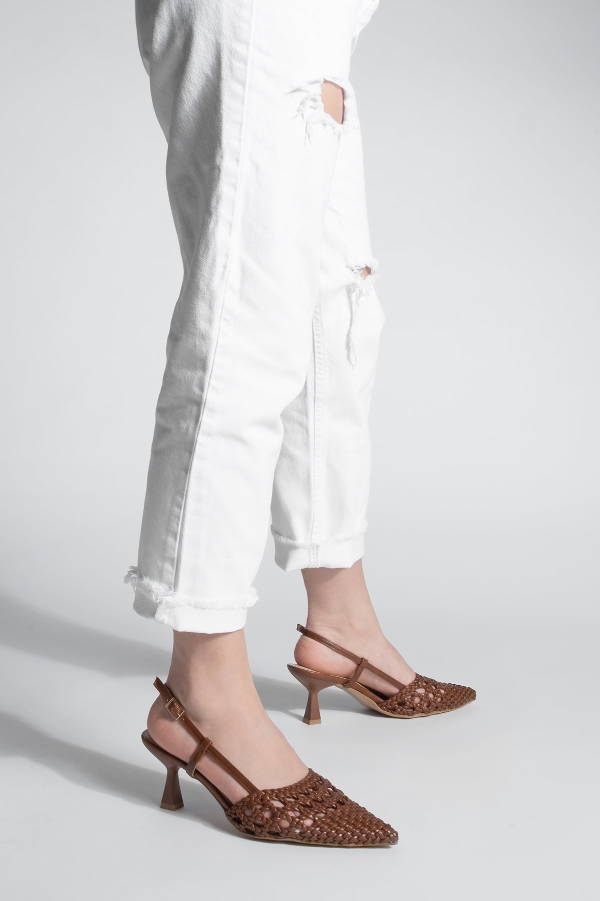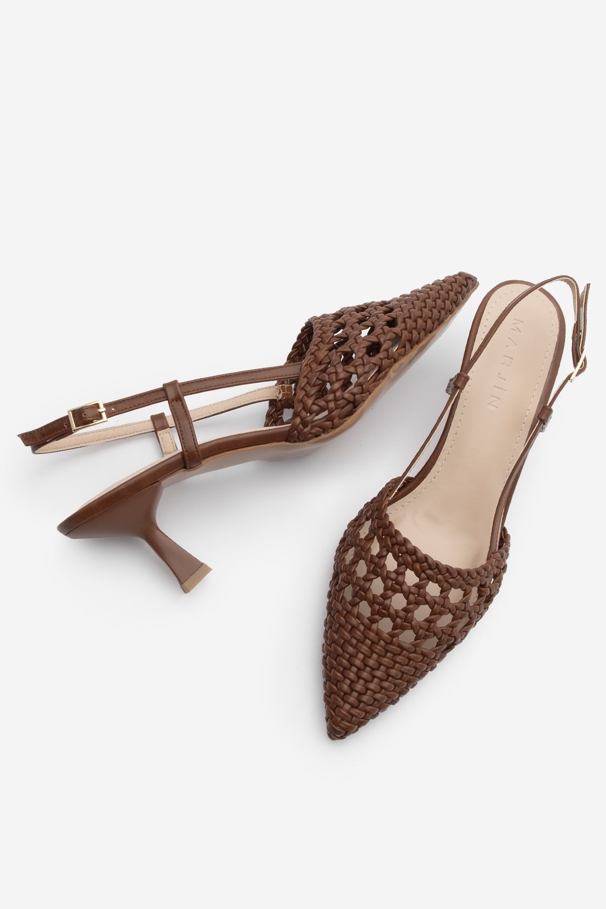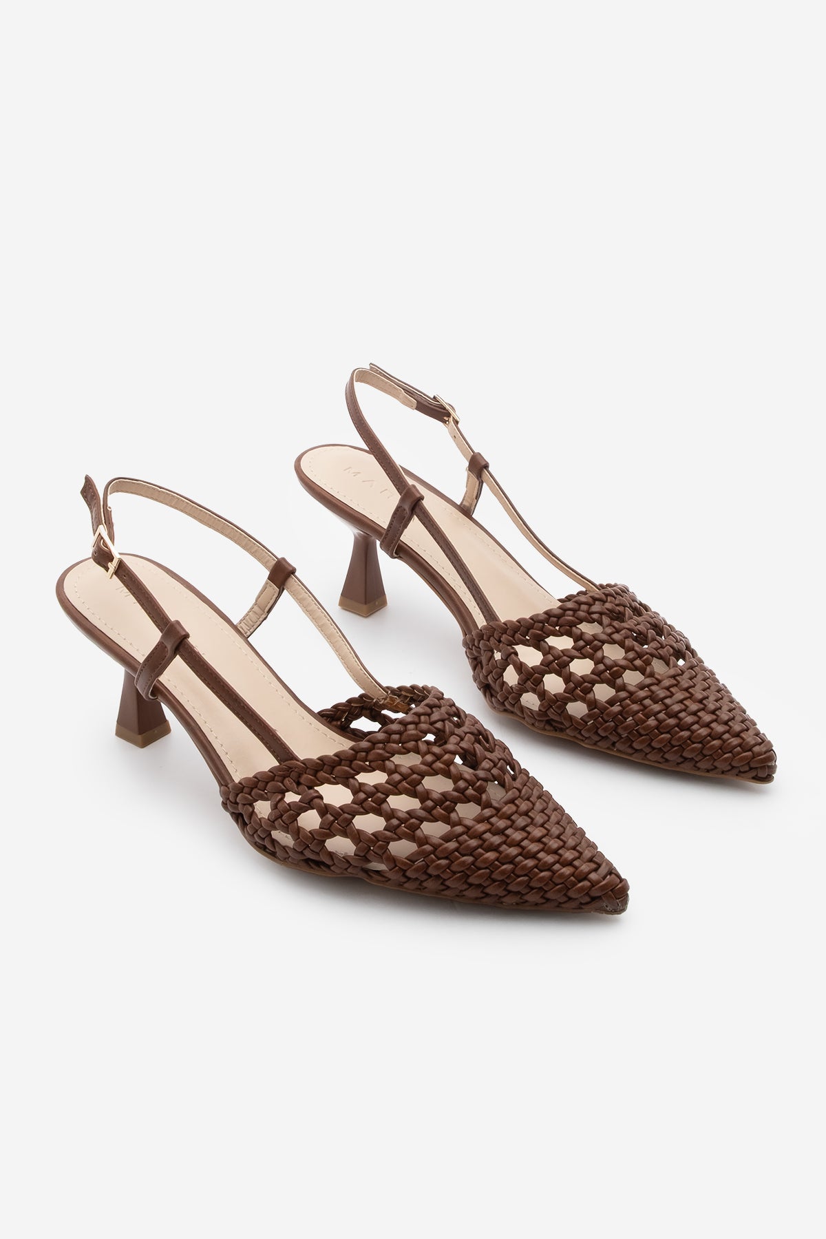 Kadın Stiletto El Örgülü Topuklu Ayakkabı Todela - Taba