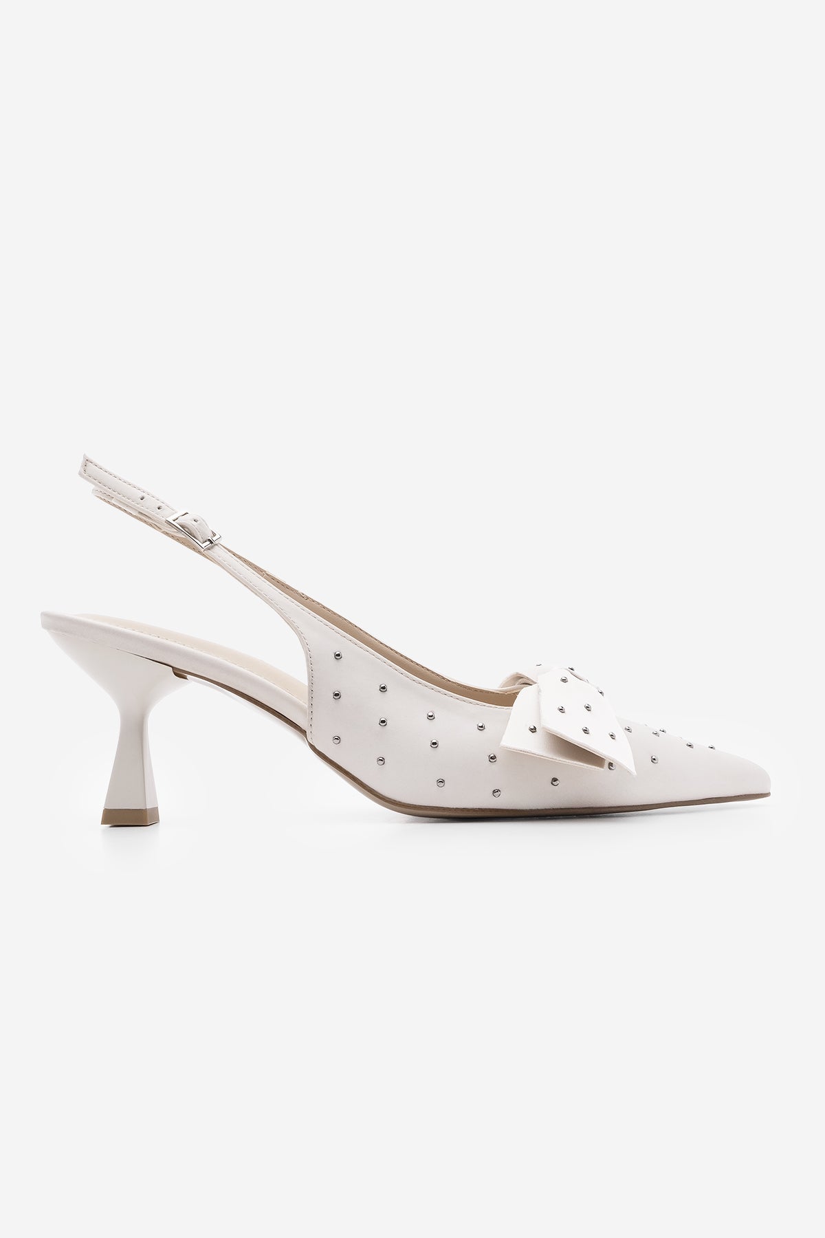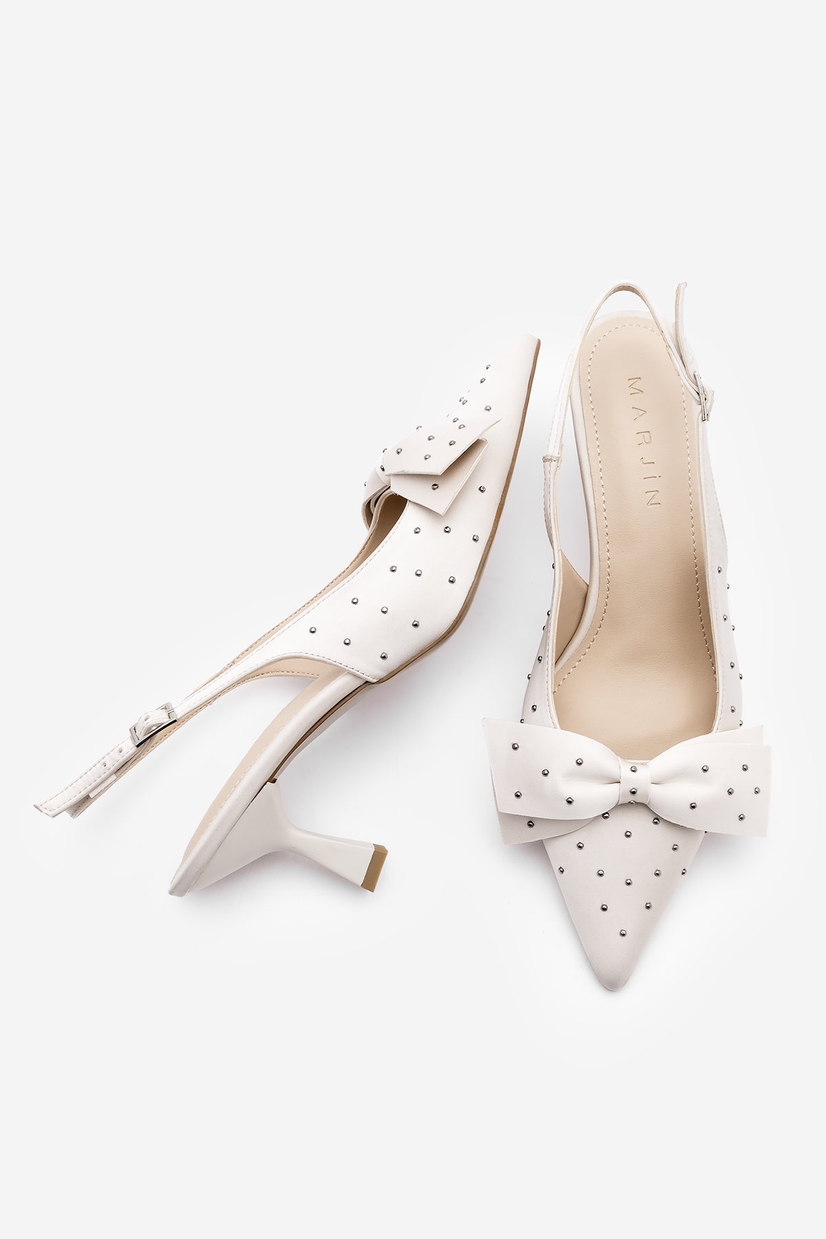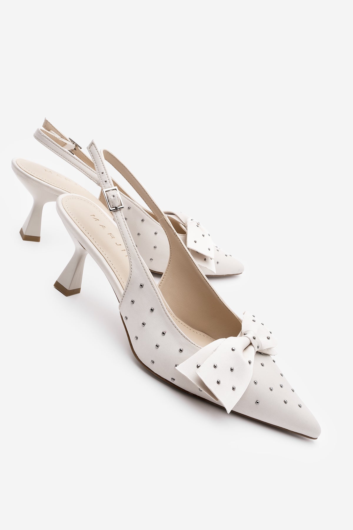 Kadın Stiletto Fiyonklu Topuklu Ayakkabı Borina - Ekru Saten