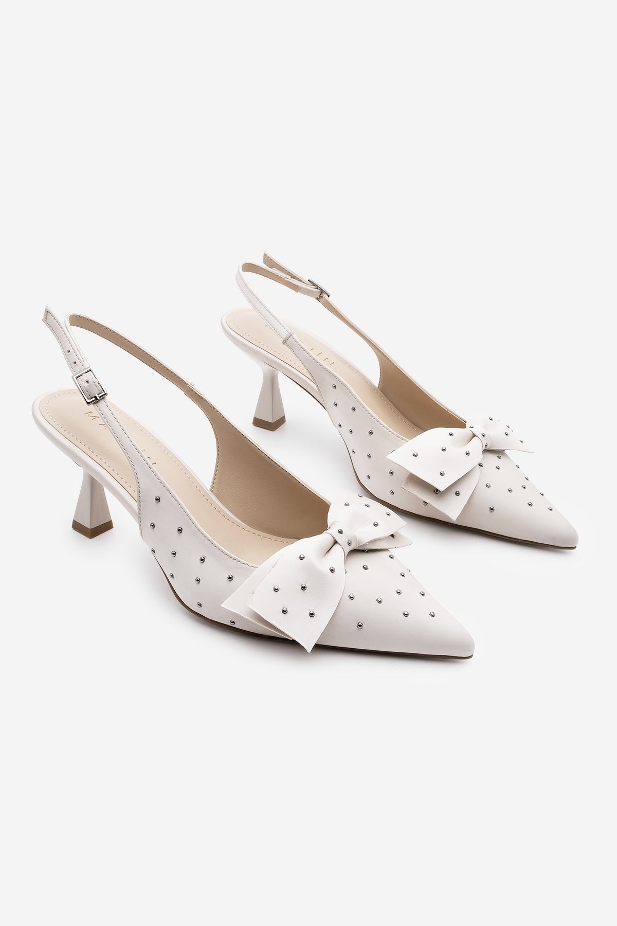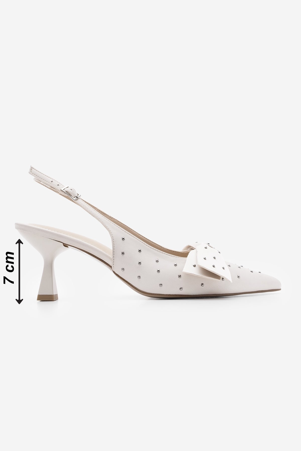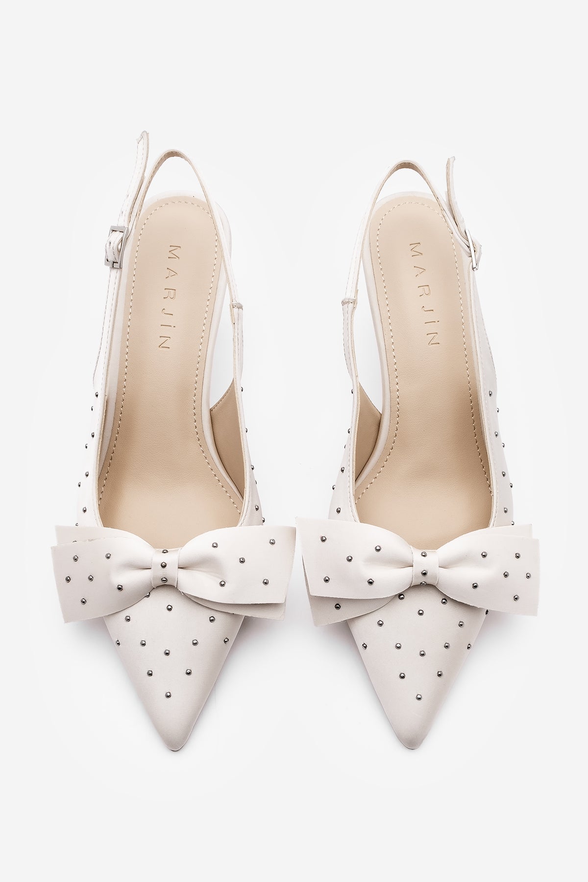Kadın Stiletto Fiyonklu Topuklu Ayakkabı Borina - Ekru Saten