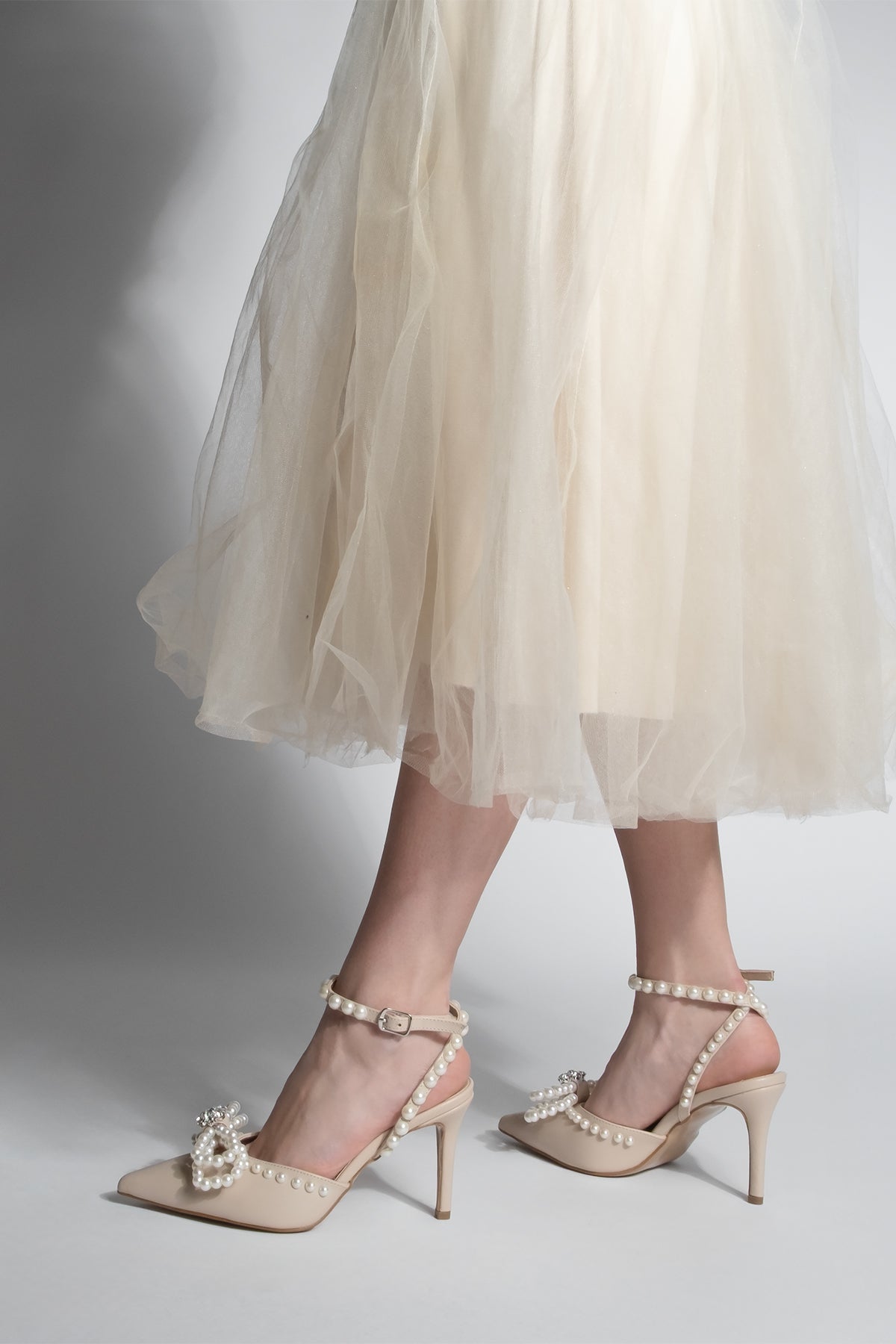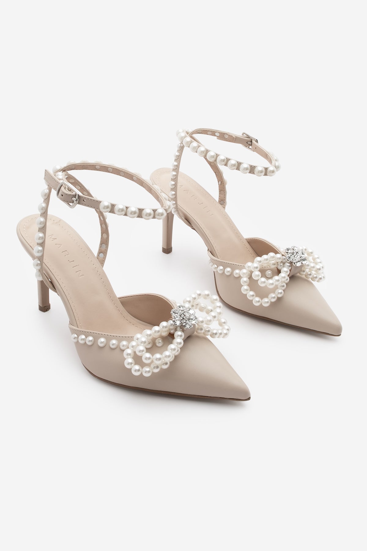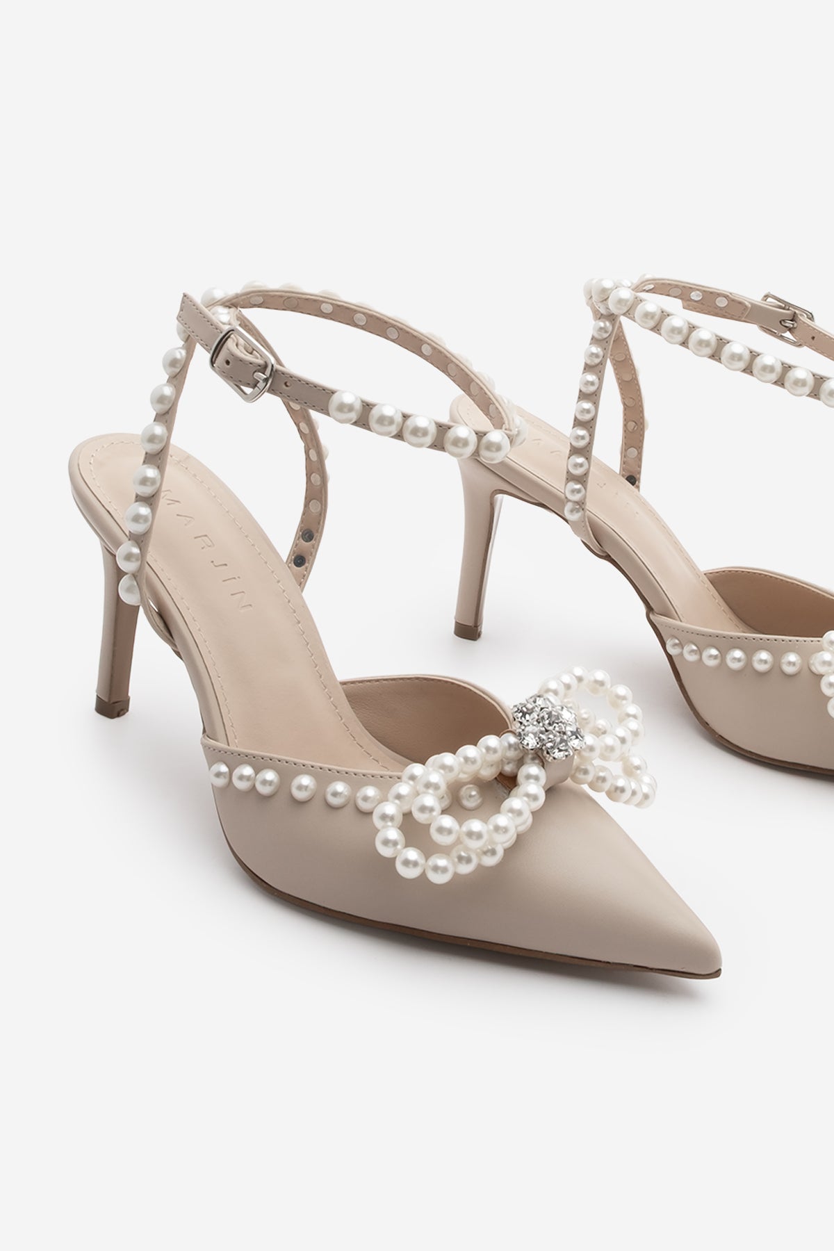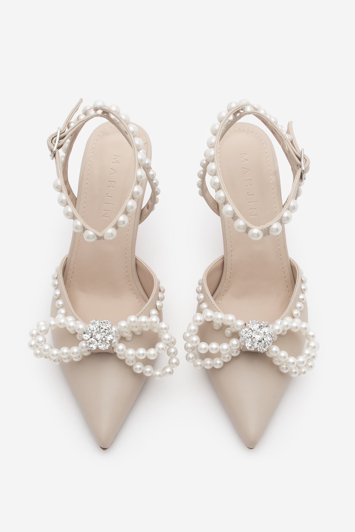 Kadın Stiletto İncili Taşlı Topuklu Ayakkabı Robis - Bej