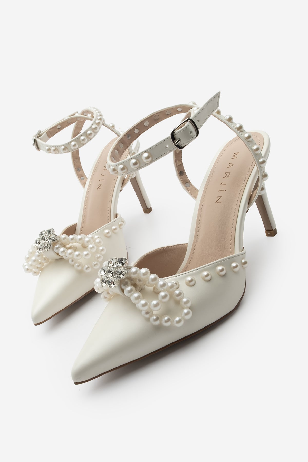 Marjin Kadın Stiletto İncili Taşlı Topuklu Ayakkabı Robis: Benzersiz bir zarafet için tasarlandı! Robis Stiletto, incili taş süslemeleri ve bilekten bağlamalı tasarımıyla özel günlerin en gözde parçası olmaya aday. Sivri burun yapısı asil bir duruş sağlarken, sedef rengi ışıltısıyla gelinliklerden abiye elbiselere kadar her kombini kusursuzca tamamlıyor. Düğün, nişan ve özel davetlerde ihtişamınızı ortaya çıkaracak bu stiletto ile ışıldamaya hazır olun. Hayatınızın en özel anlarına unutulmaz bir dokunuş katın!