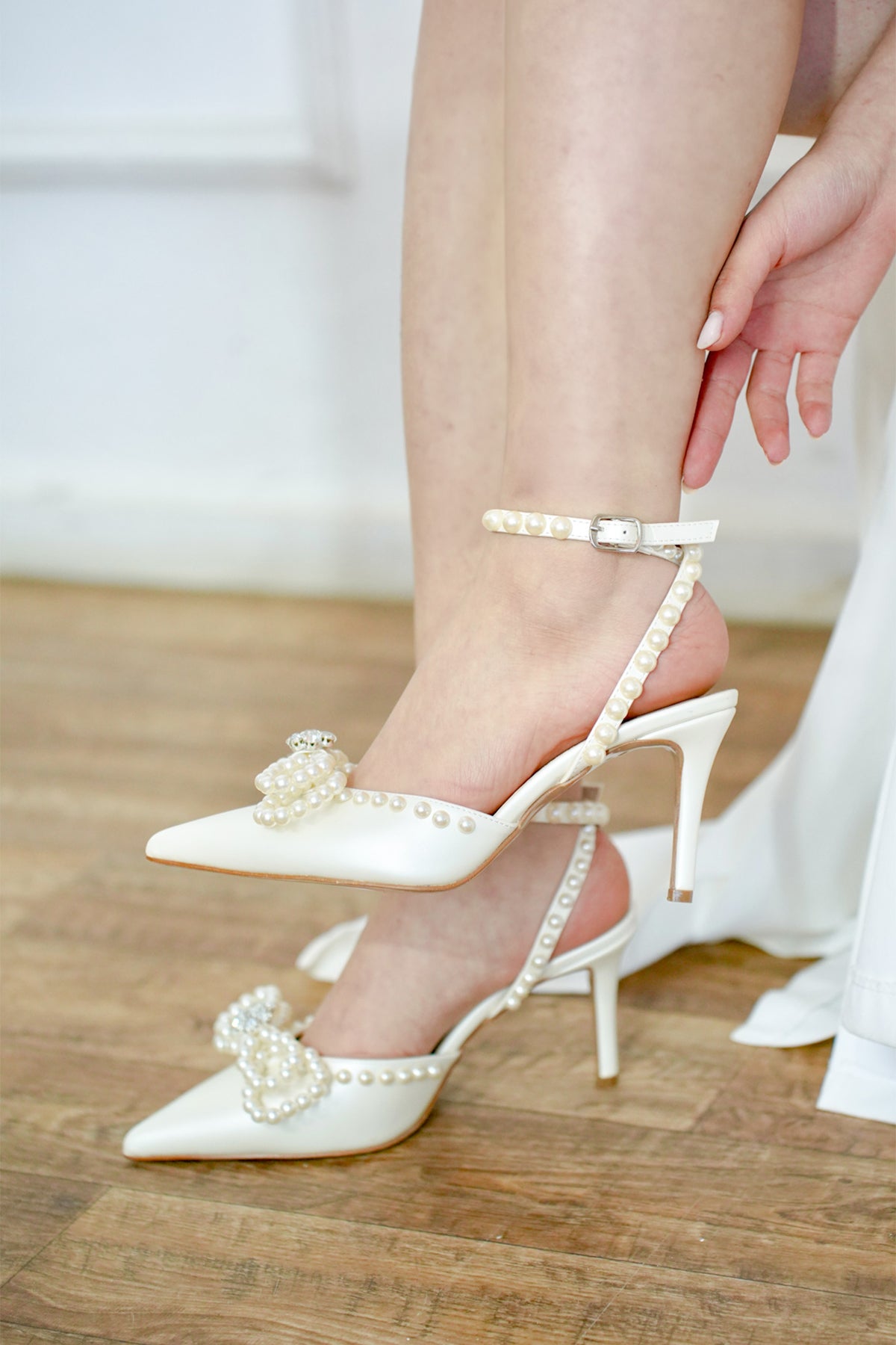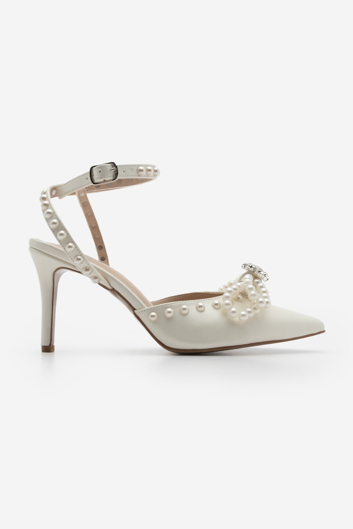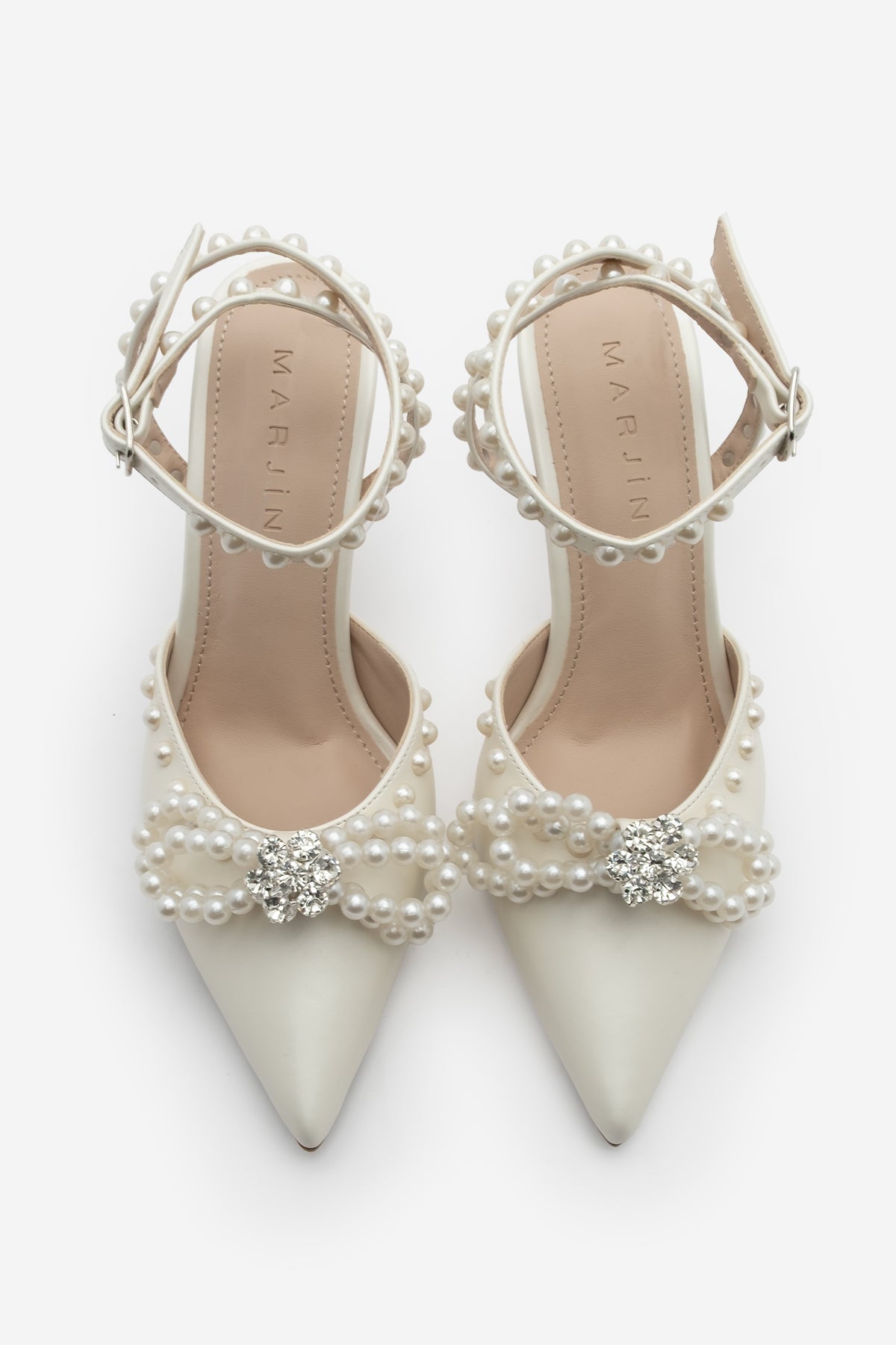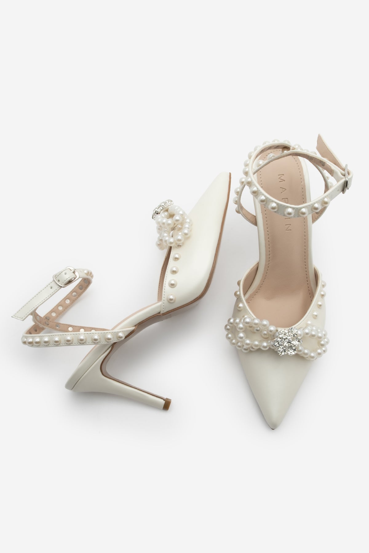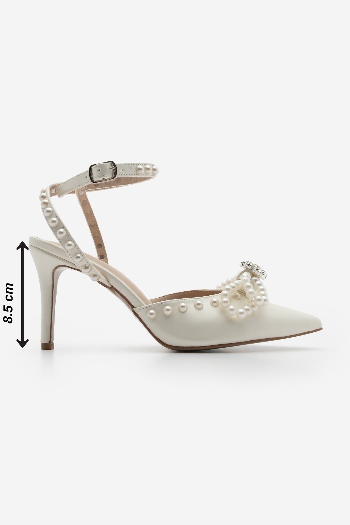 Kadın Stiletto İncili Taşlı Topuklu Ayakkabı Robis - Sedef