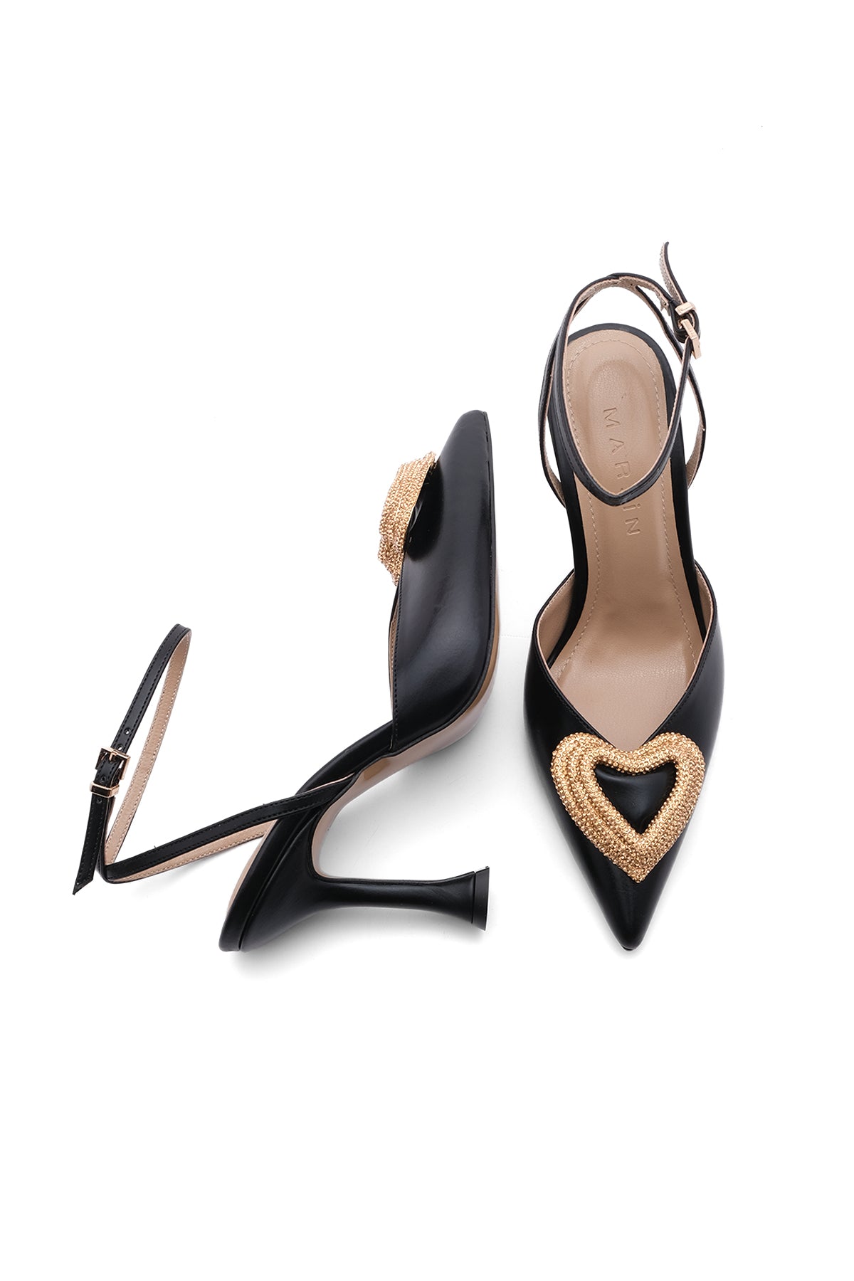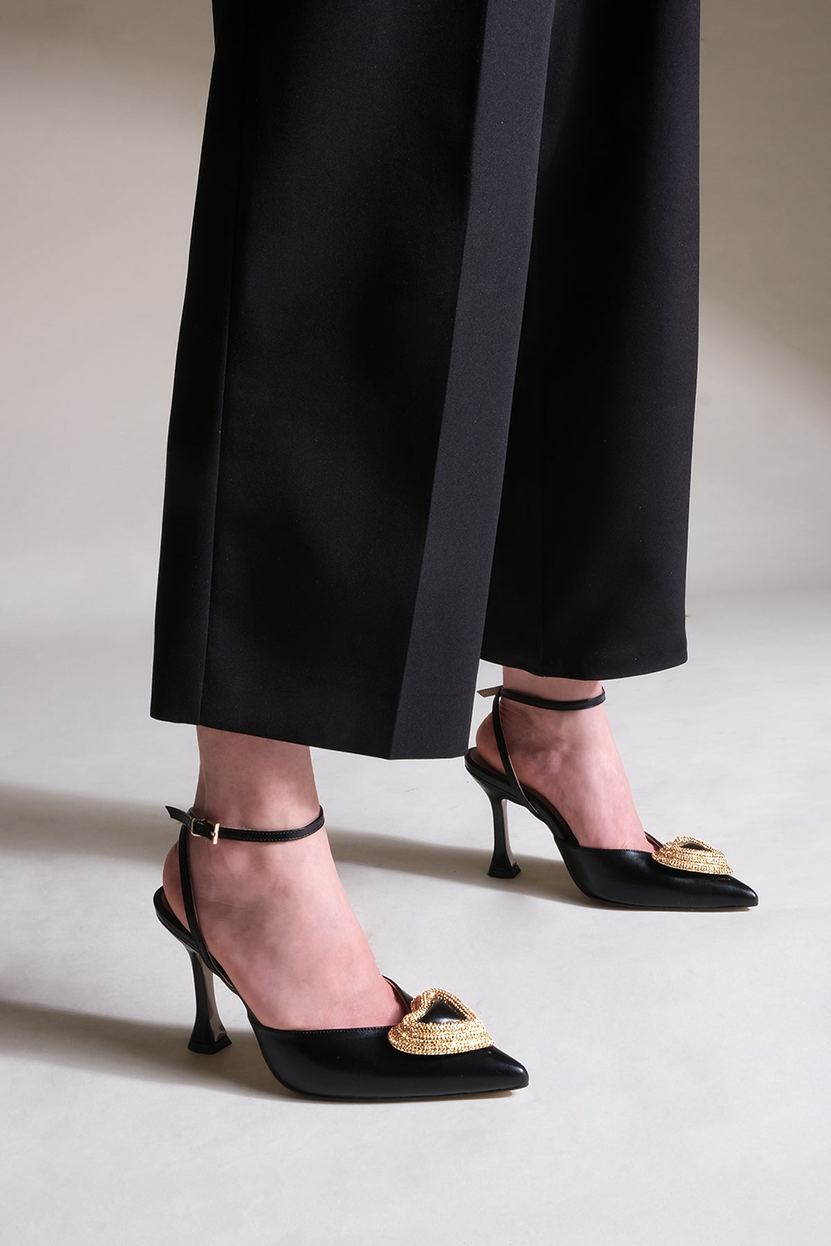 Kadın Stiletto Kalp Tokalı Topuklu Ayakkabı Tena - Siyah