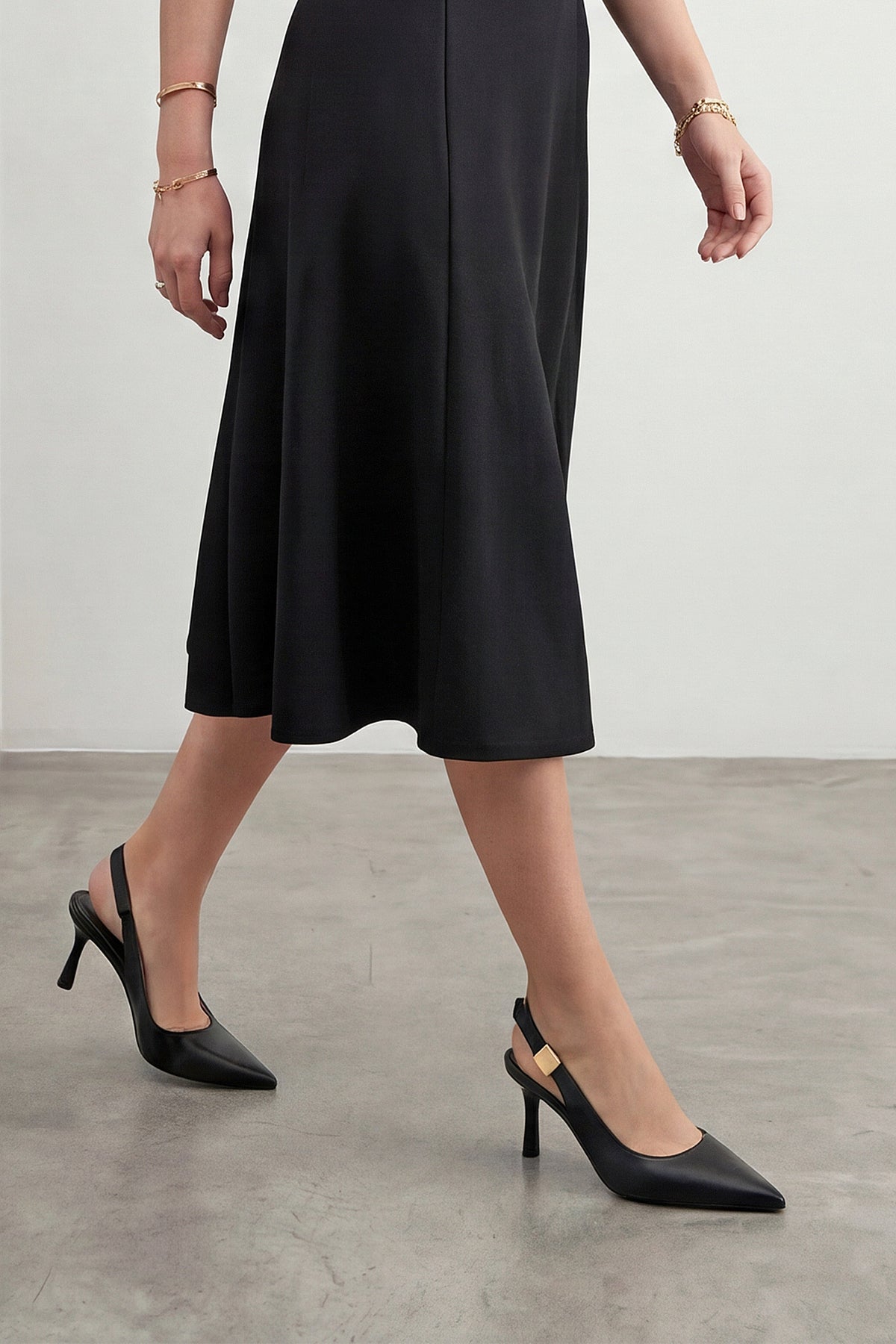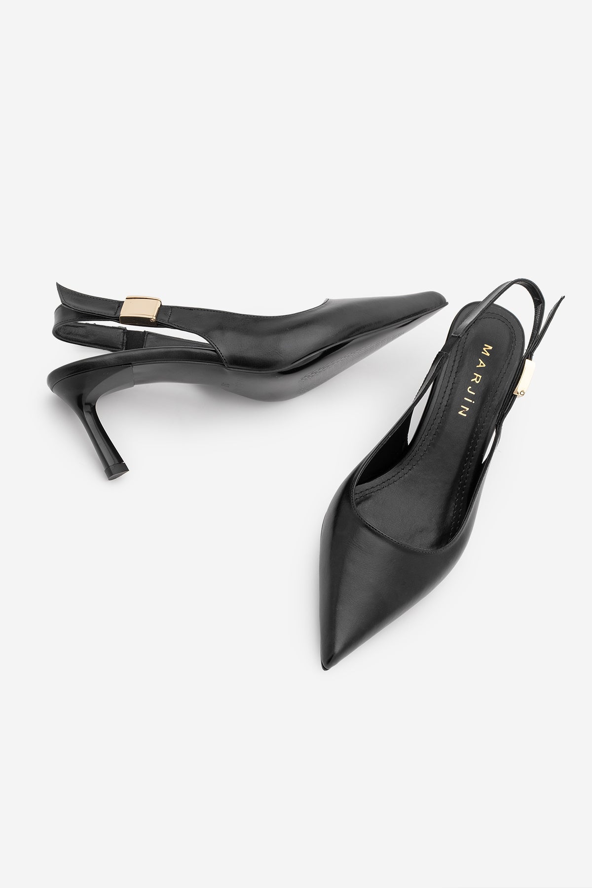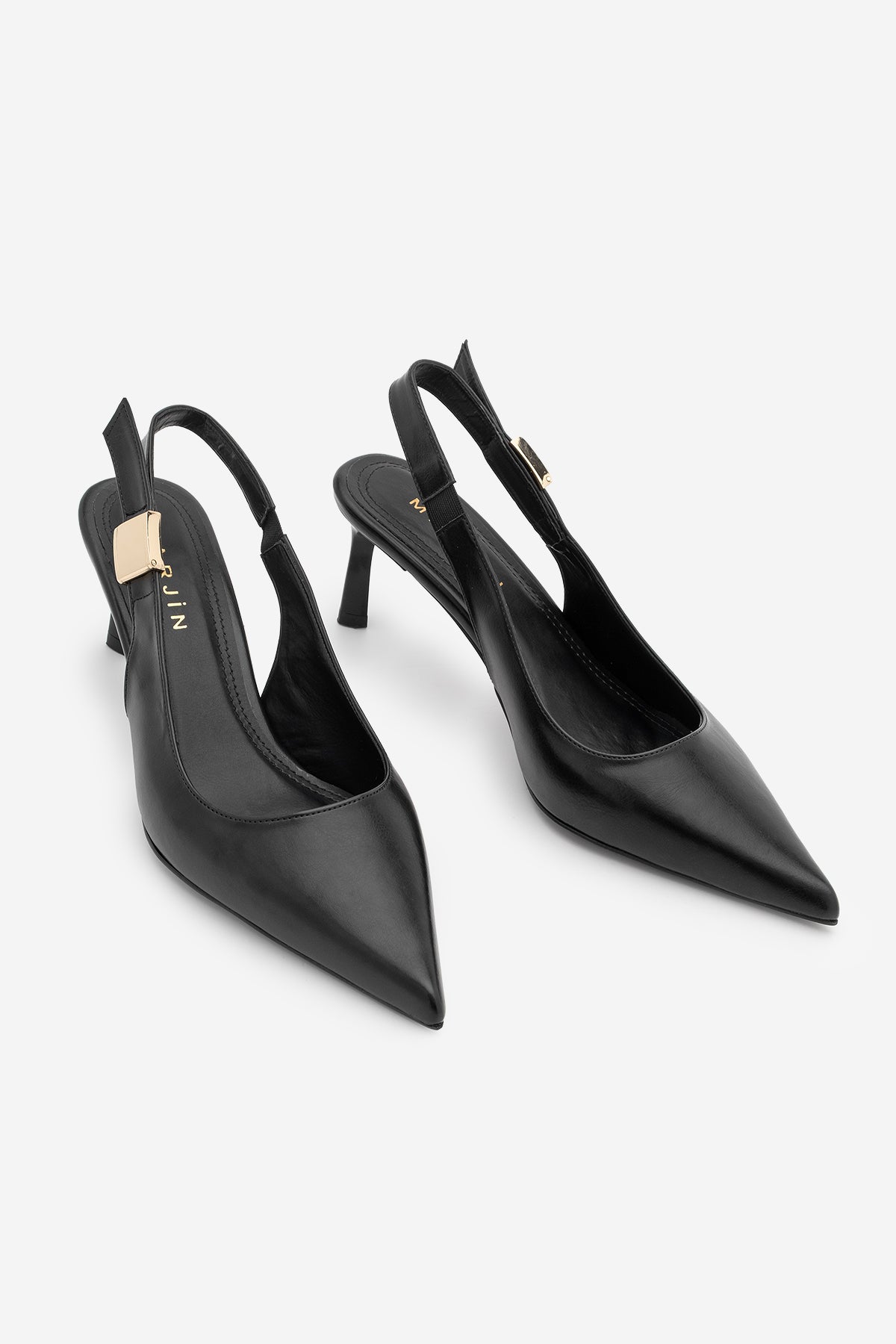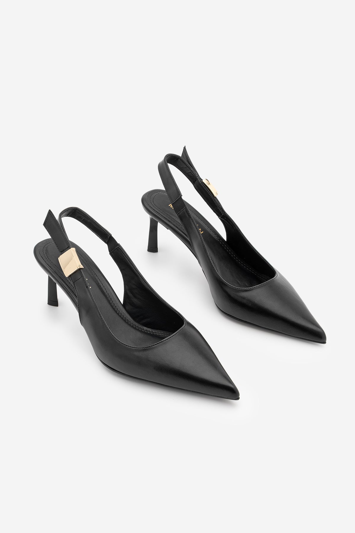 Kadın Stiletto Sivri Burun Tokalı Klasik Topuklu Ayakkabı Zelor - Siyah