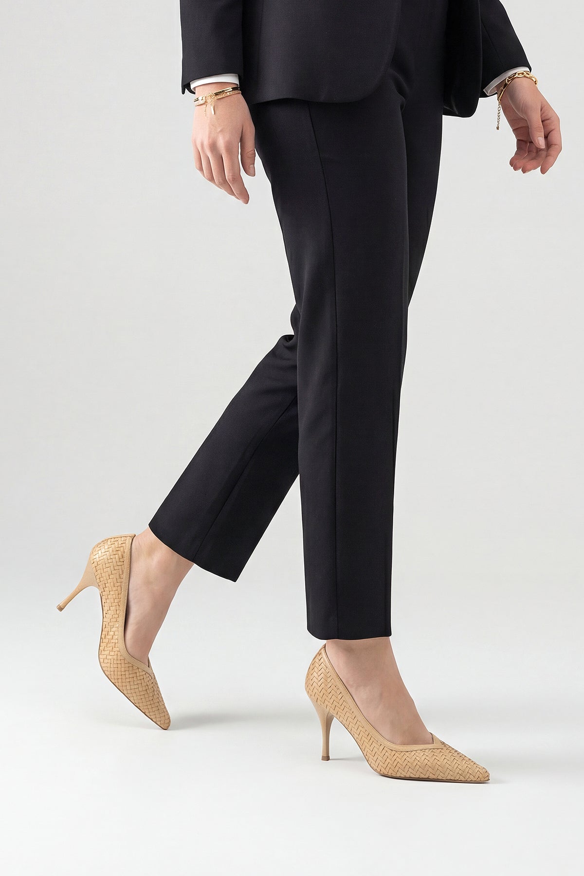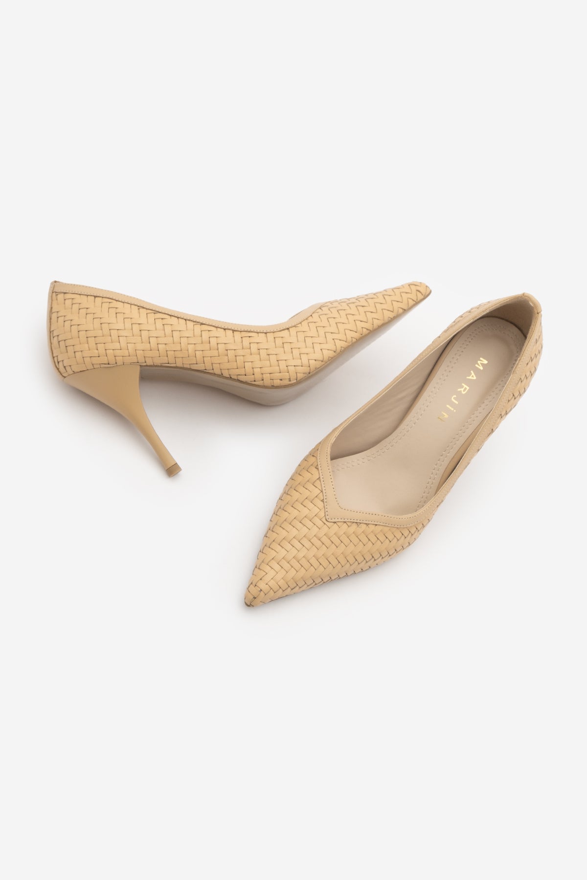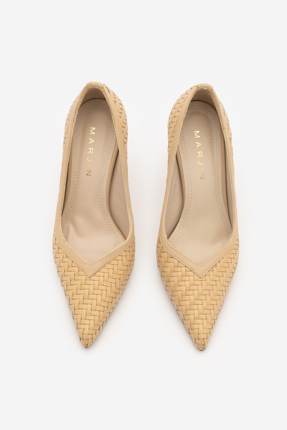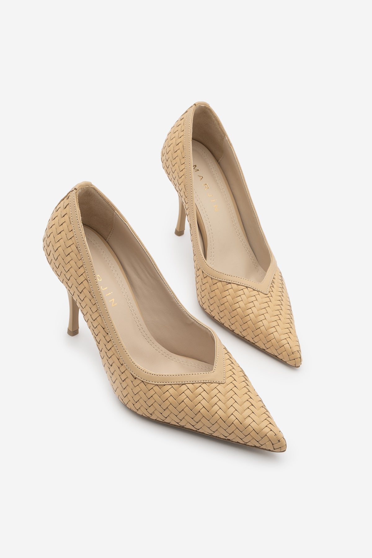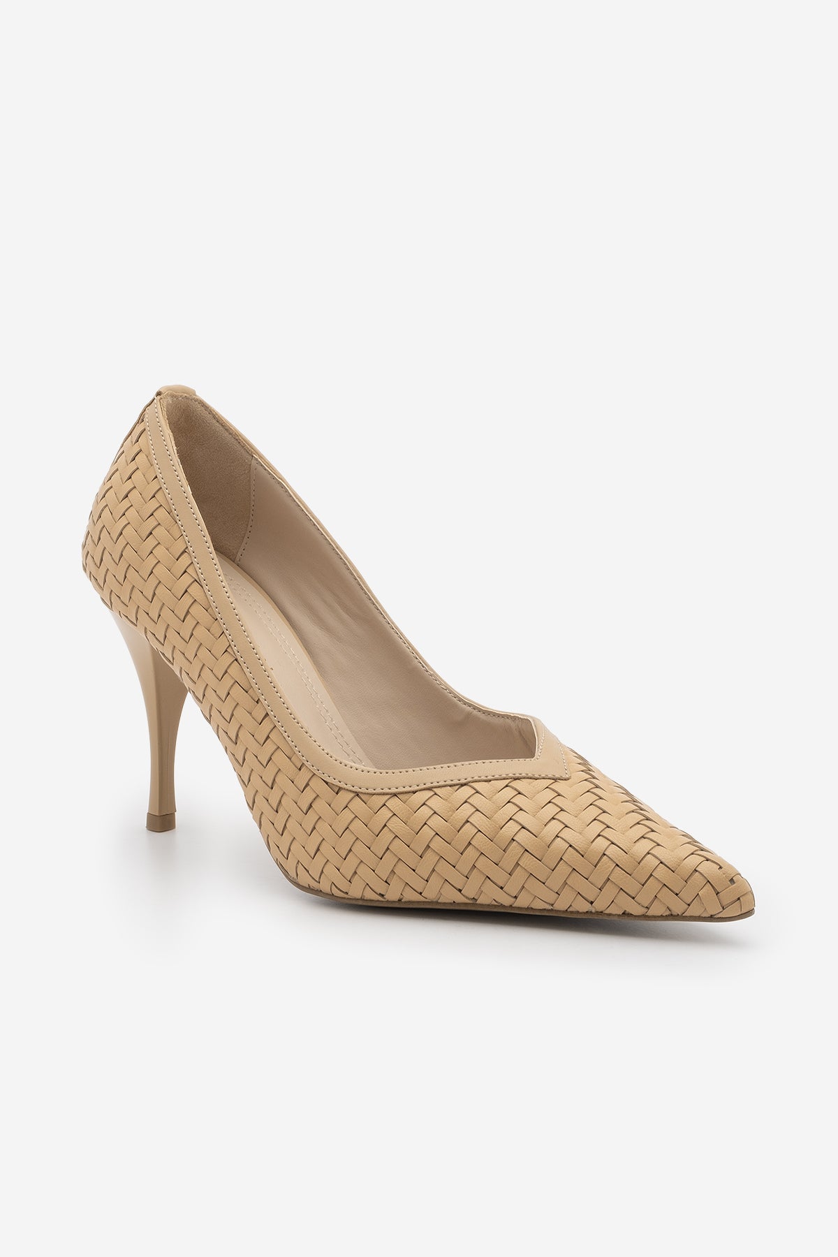 Kadın Stiletto Sivri Burun Örgü Desen Topuklu Ayakkabı Elnos - Camel