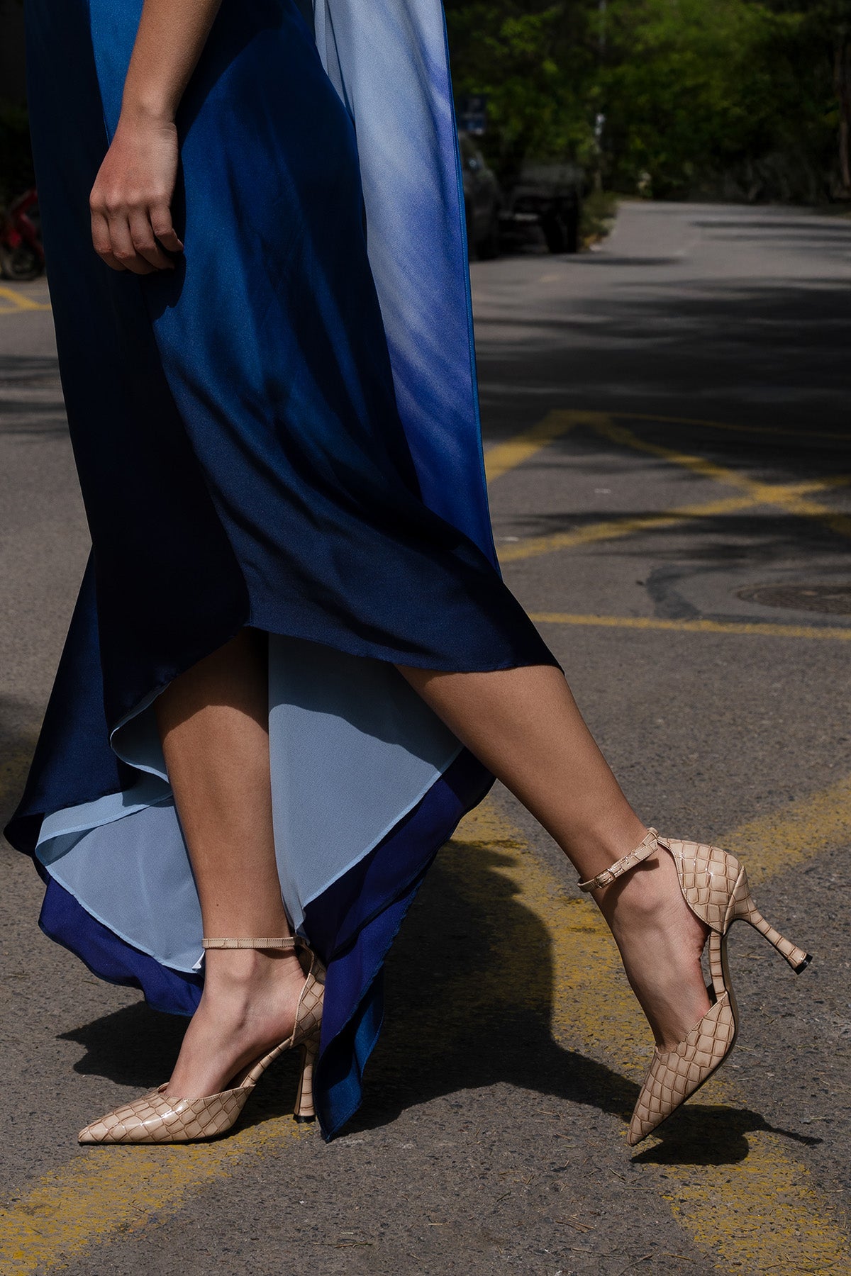Kadın Stiletto Sivri Burun Topuklu Ayakkabı Menlit - Bej Croco