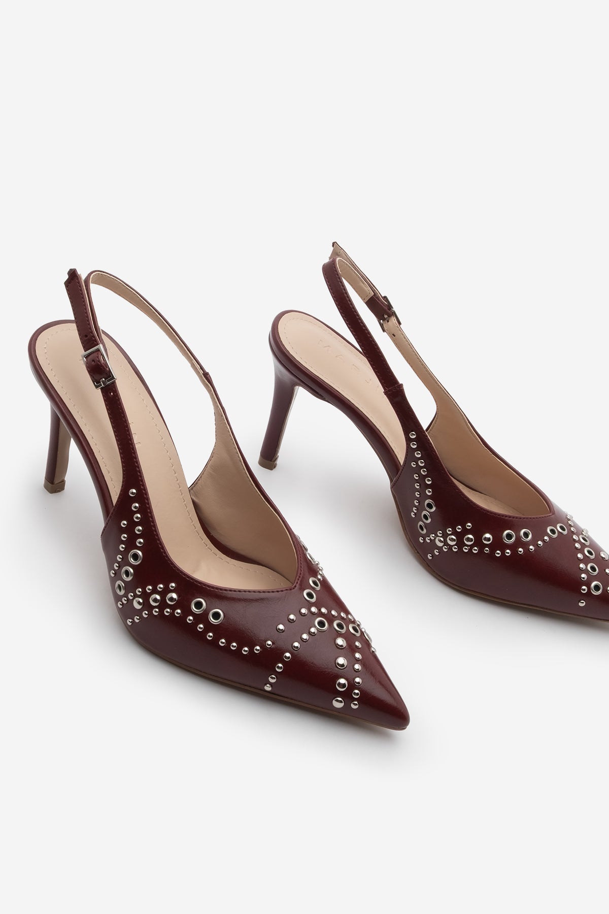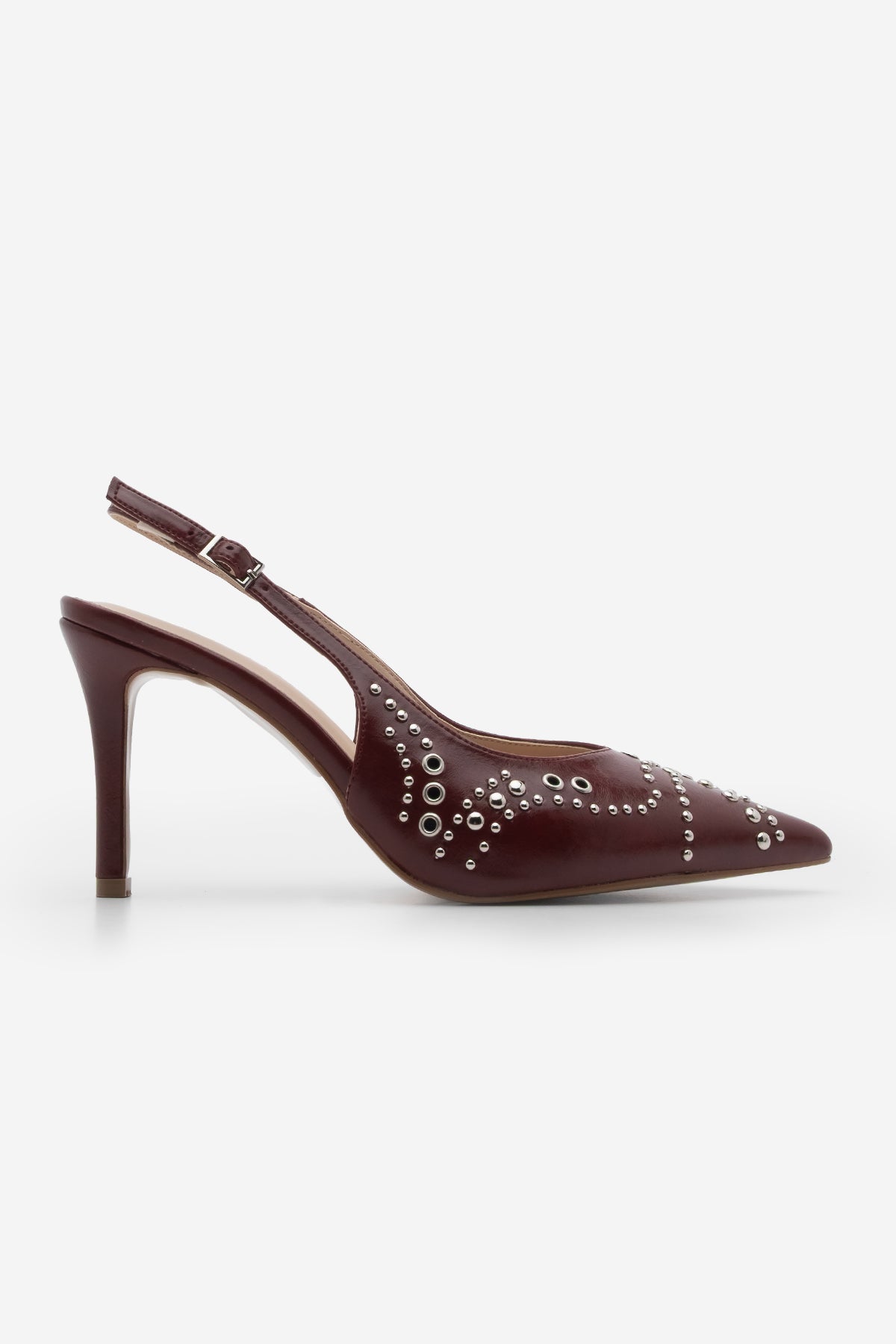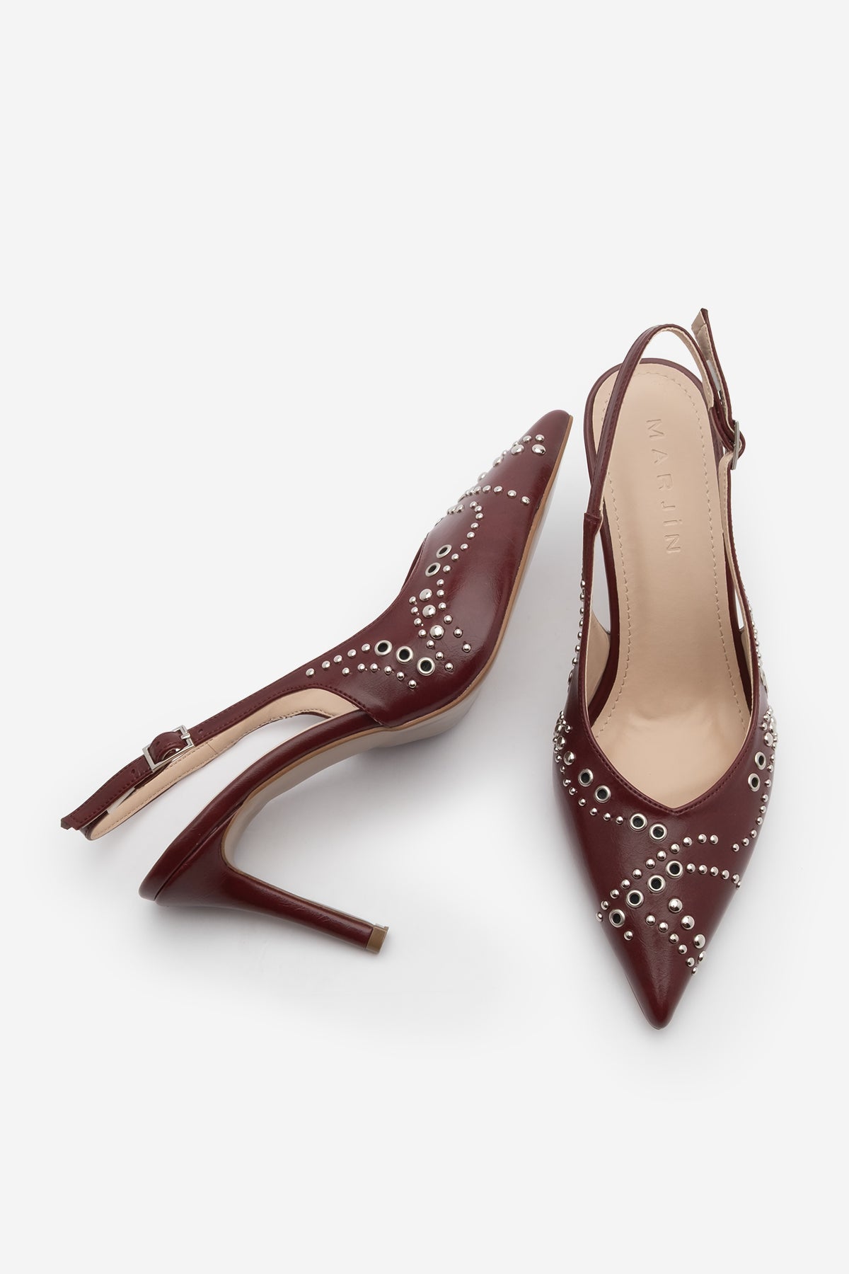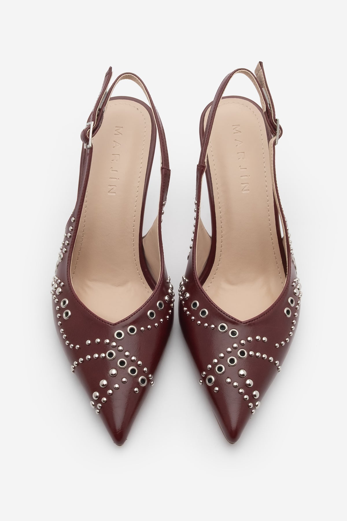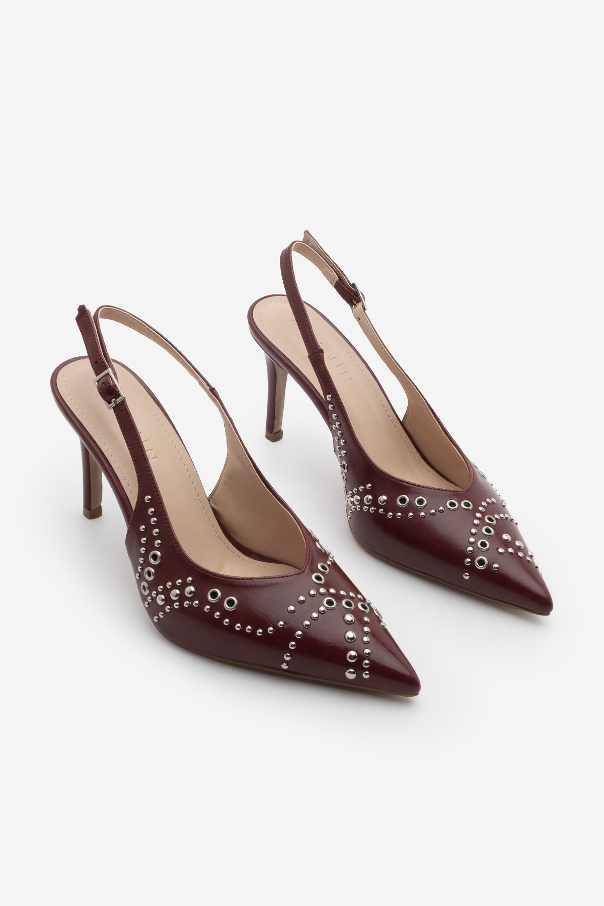Kadın Stiletto Sivri Burun Zımbalı Troklu Topuklu Ayakkabı Lorfi - Bordo