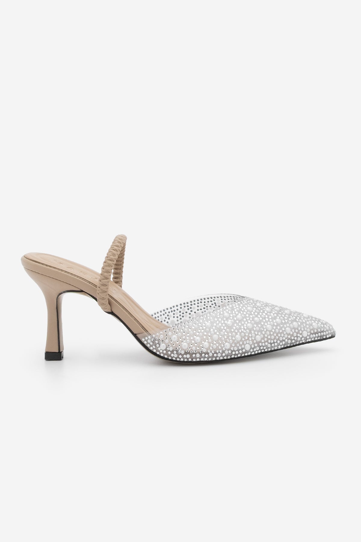 Kadın Stiletto Taşlı Abiye Topuklu Ayakkabı Lala - Bej