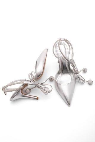 Kadın Stiletto Taşlı Topuklu Ayakkabı Sarep - Gümüş