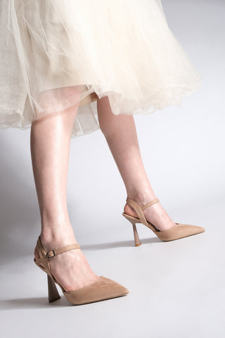 Kadın Stiletto Topuklu Ayakkabı Heti - Bej Süet