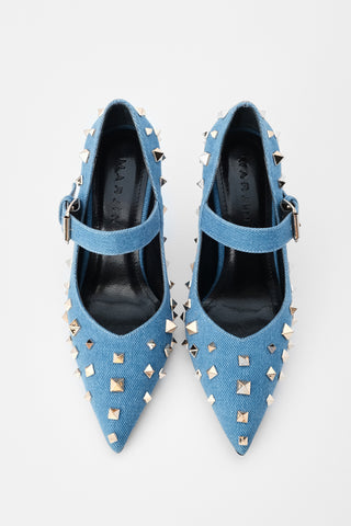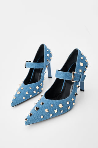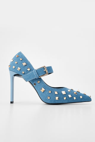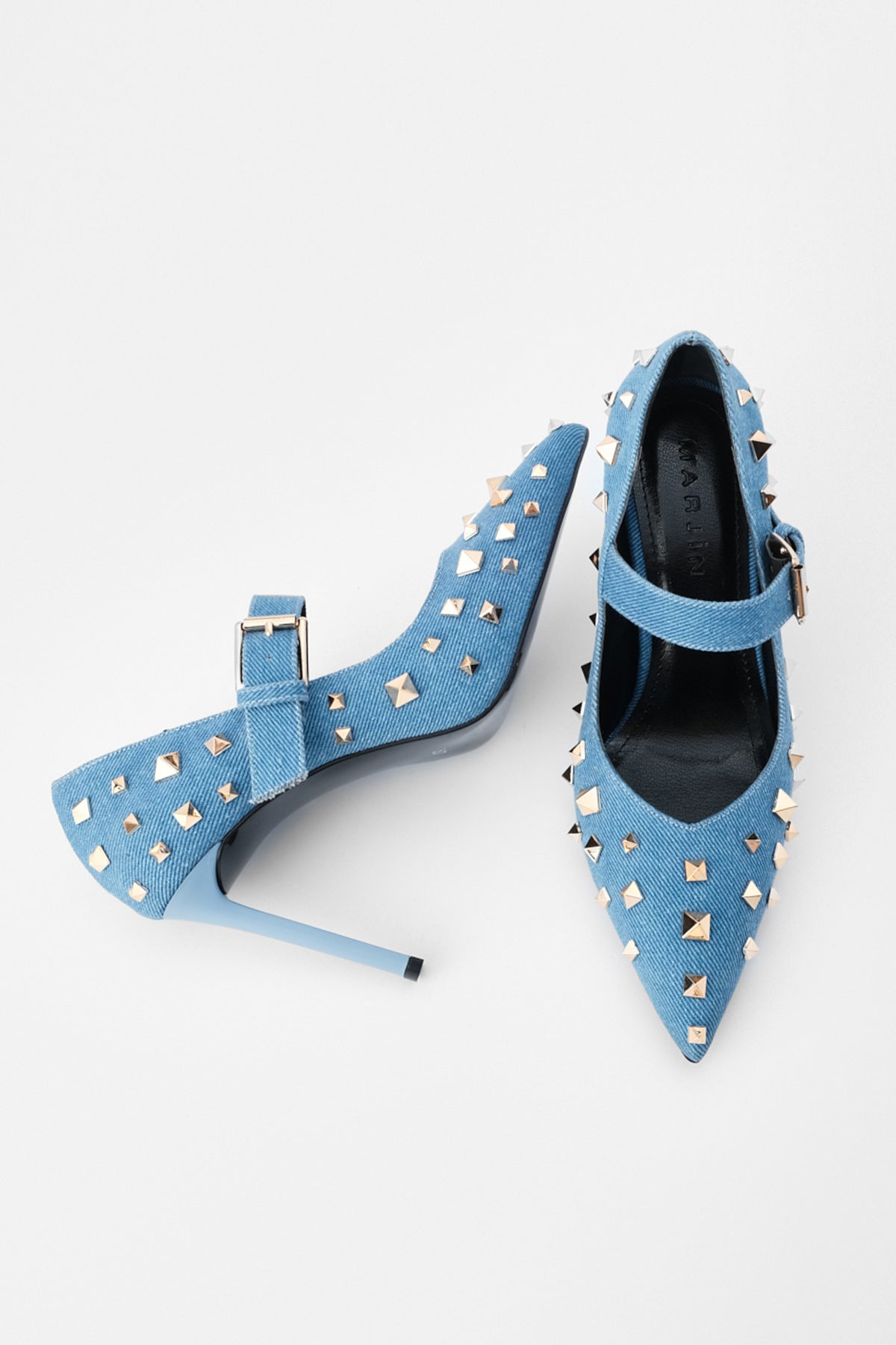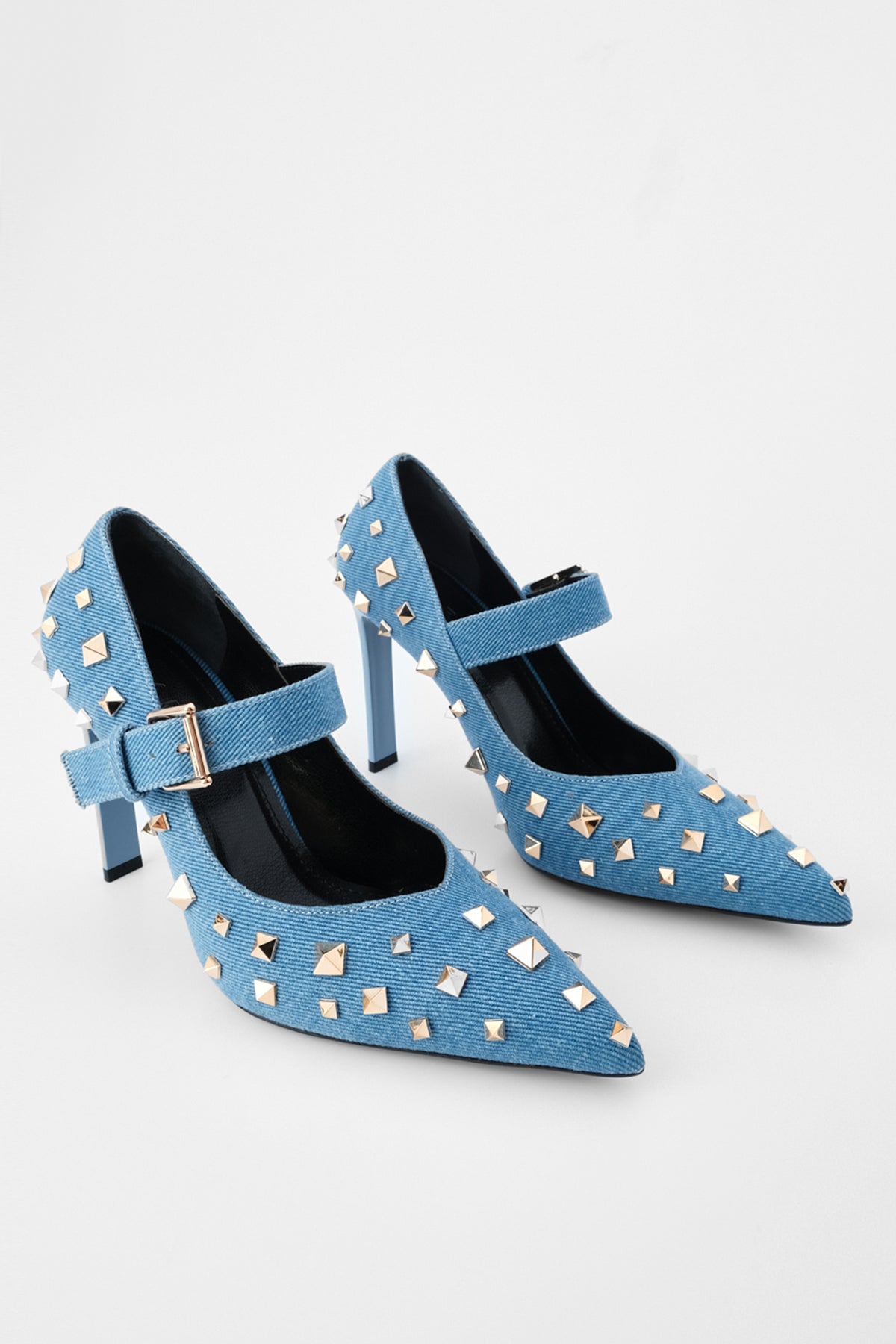 Kadın Stiletto Troklu Topuklu Ayakkabı Manes - Kot Mavi