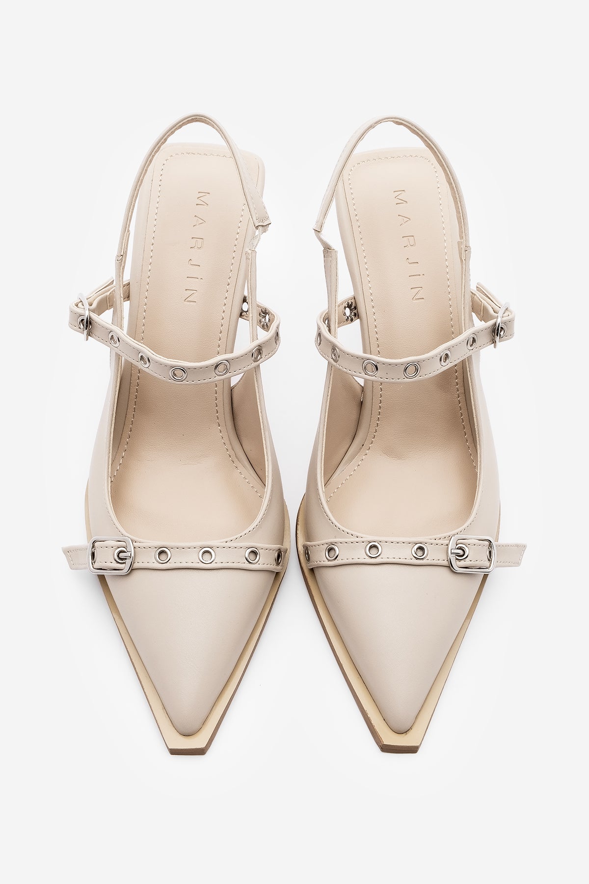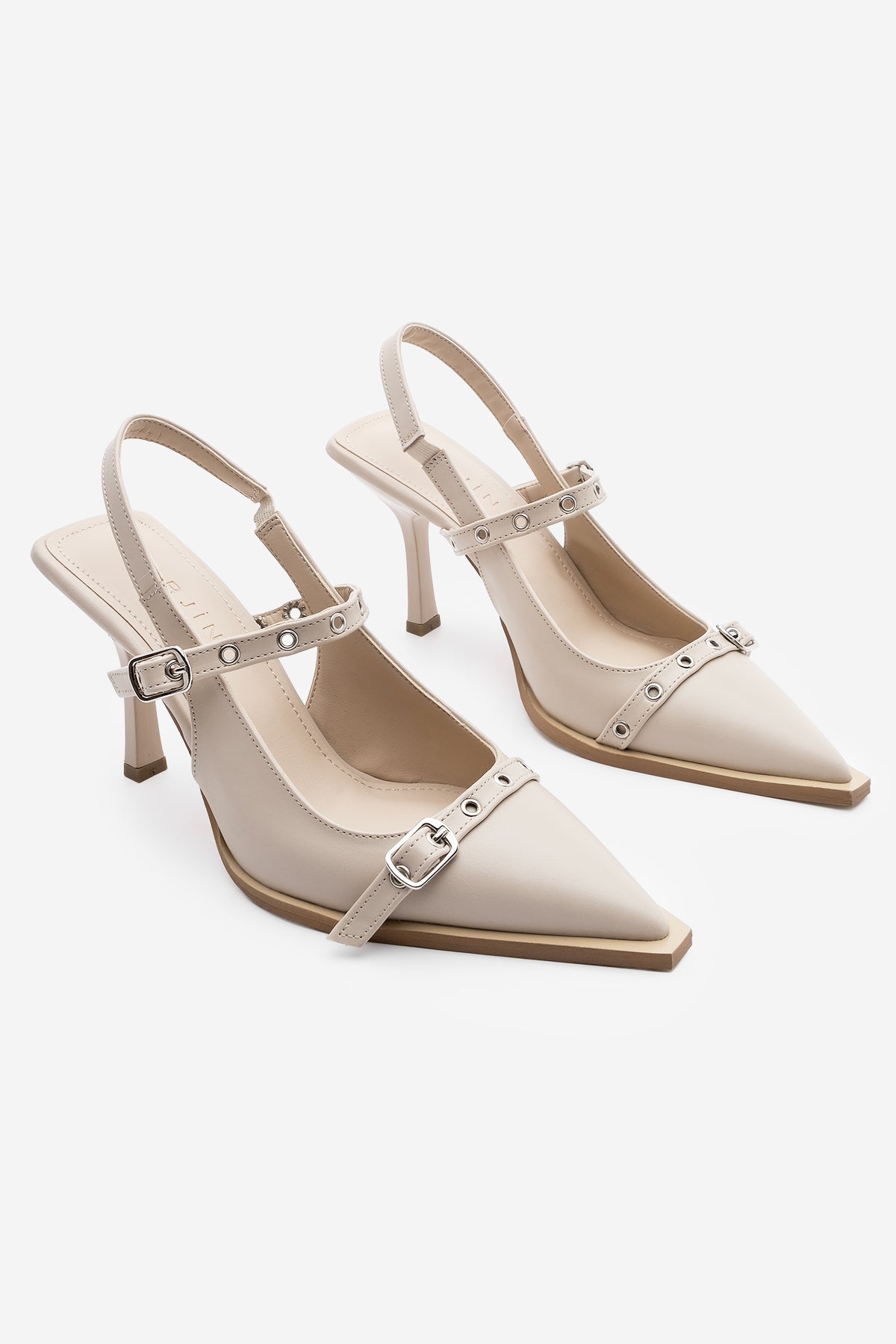 Kadın Stiletto Troklu Topuklu Ayakkabı Zekra - Ekru