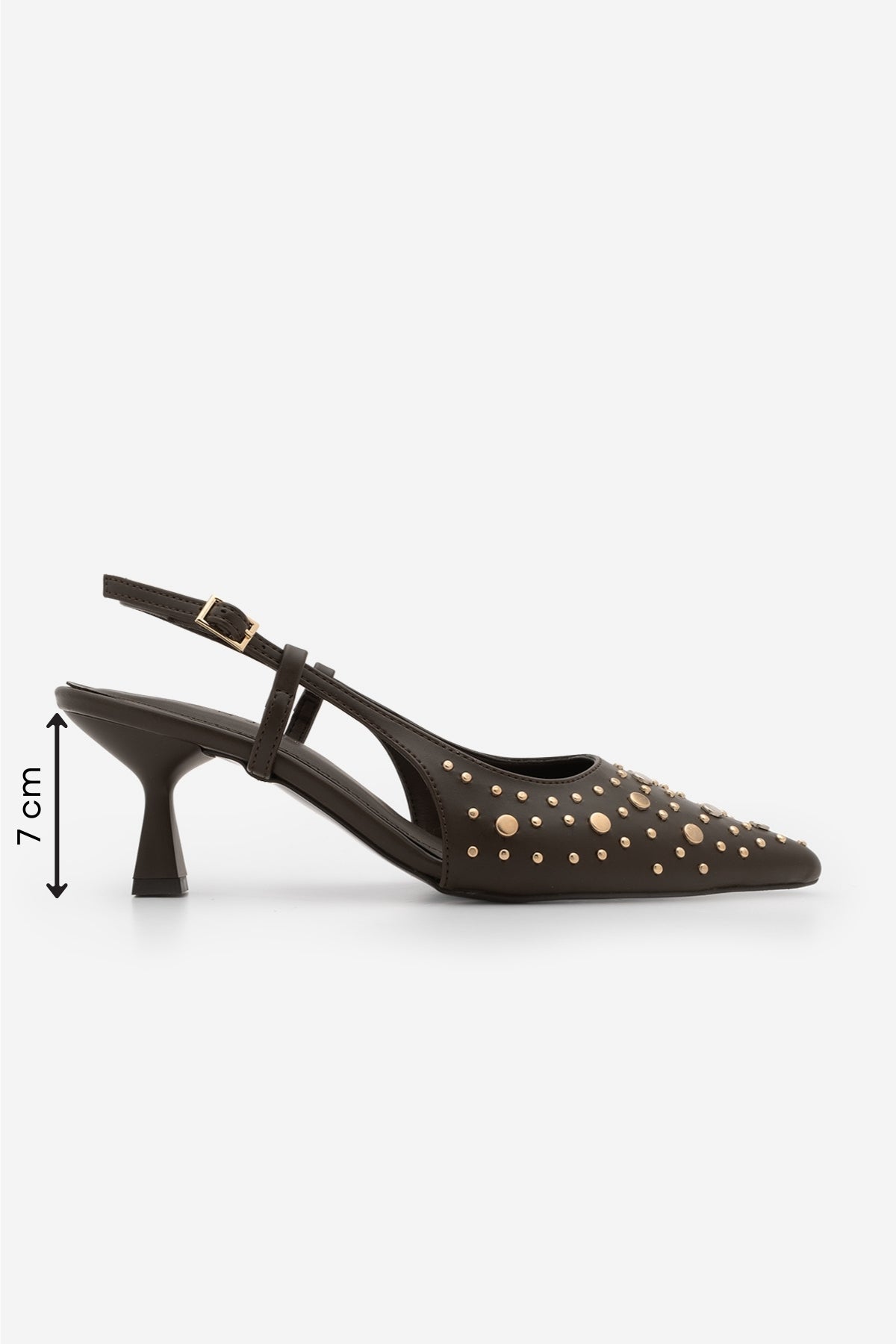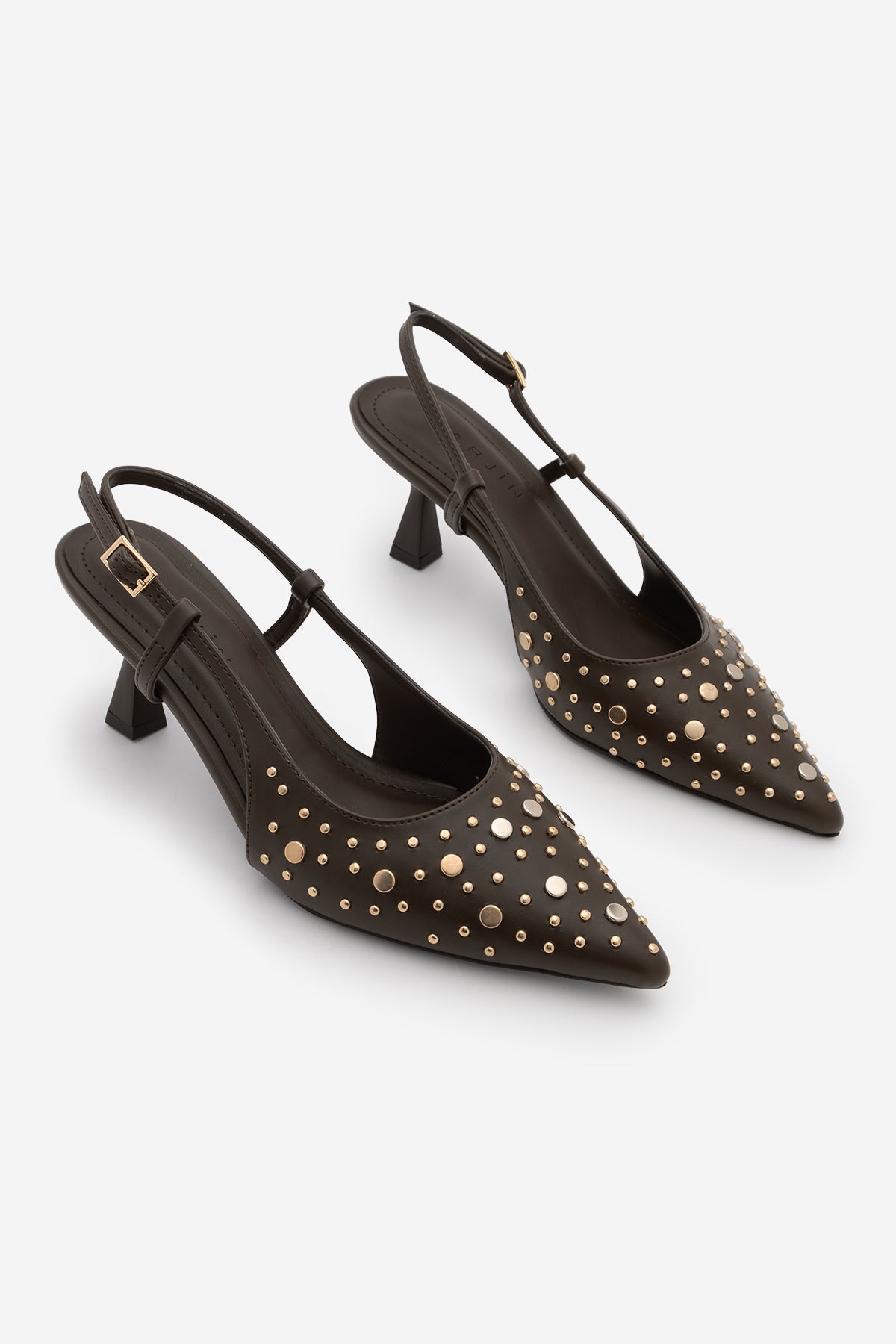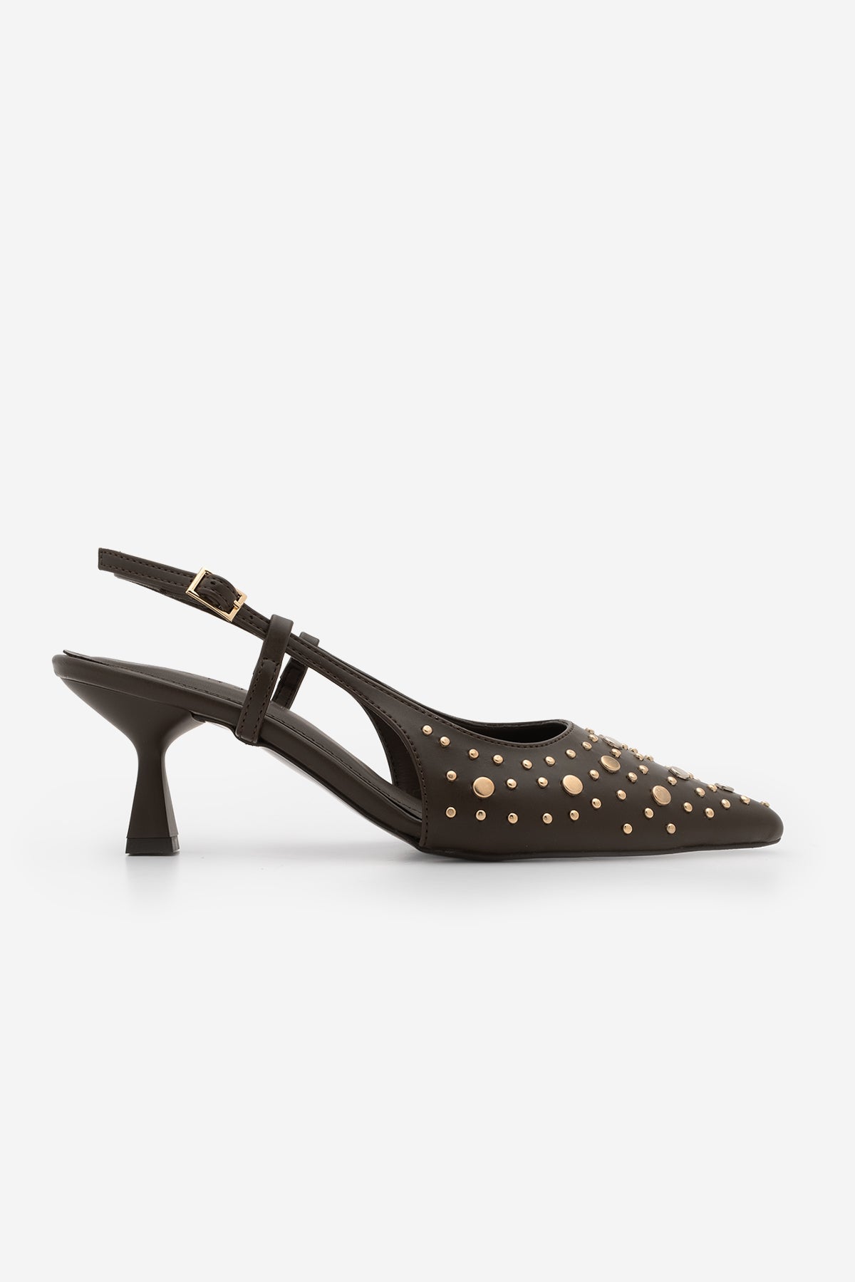 Kadın Stiletto Zımbalı Troklu Topuklu Ayakkabı Rofen - Kahve