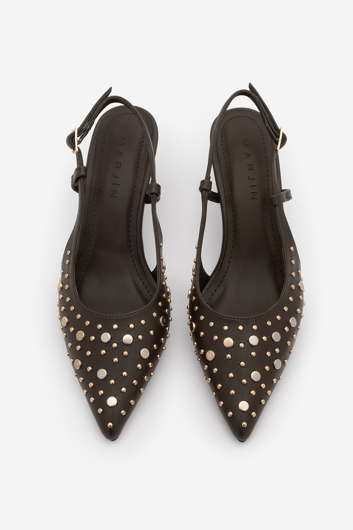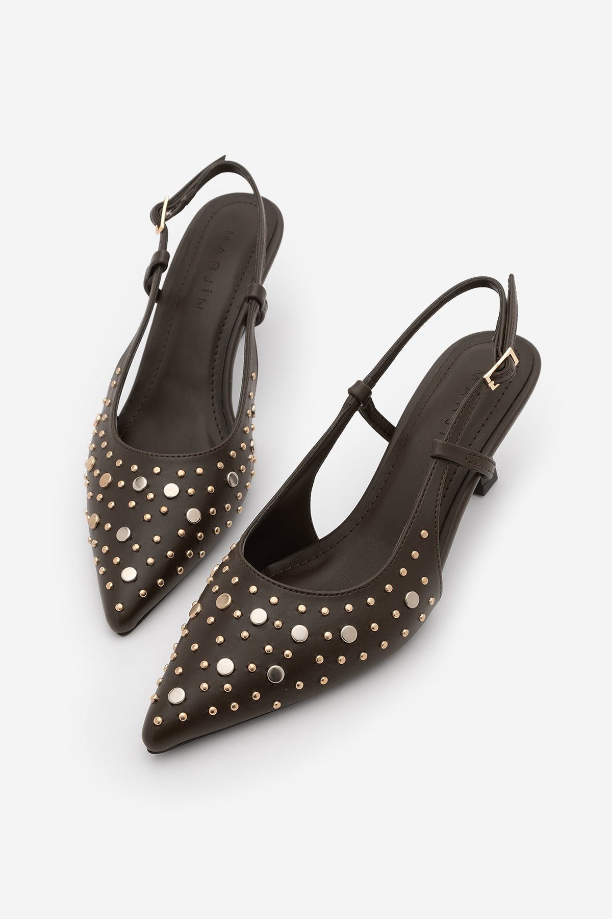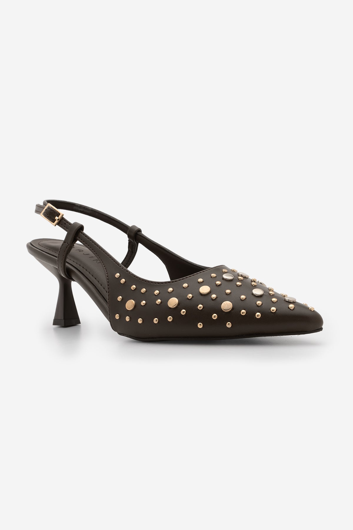 Kadın Stiletto Zımbalı Troklu Topuklu Ayakkabı Rofen - Kahve