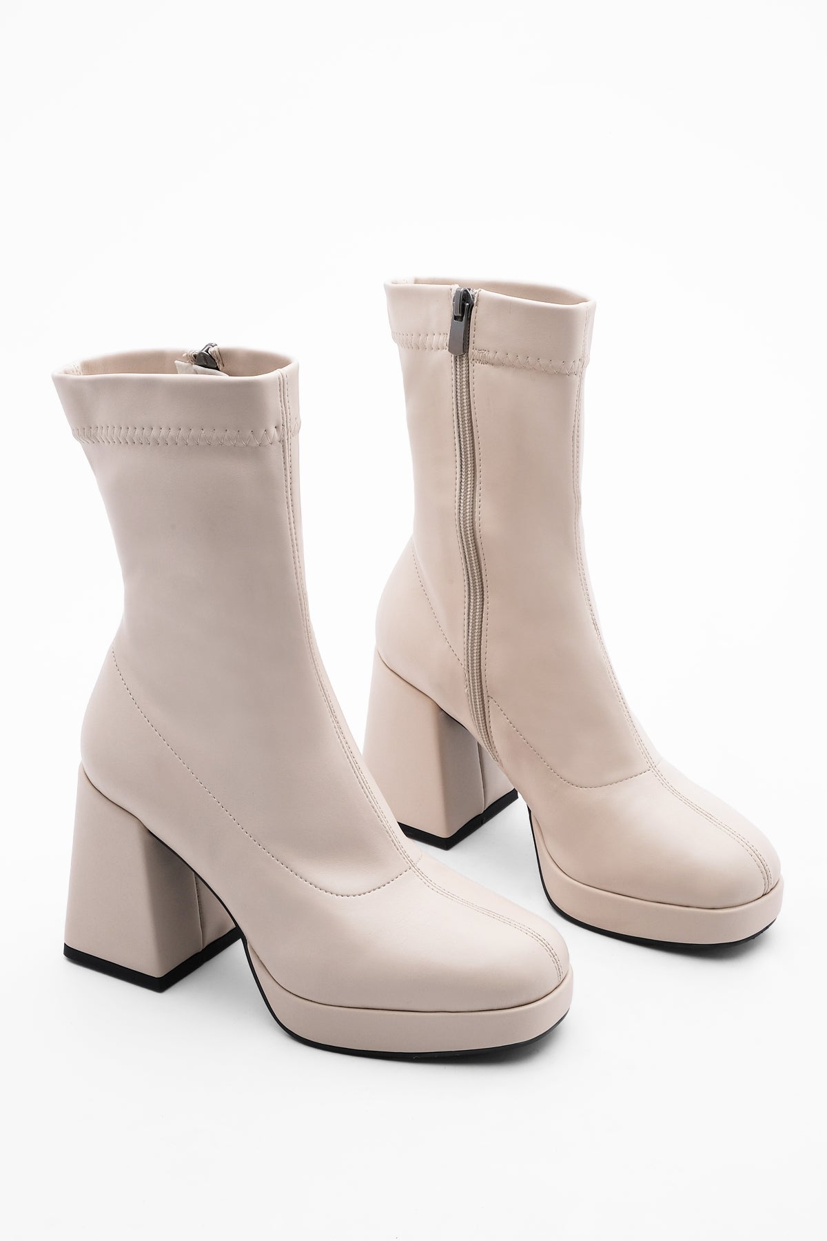 Kadın Streç Platform Topuklu Bot Hila - Bej