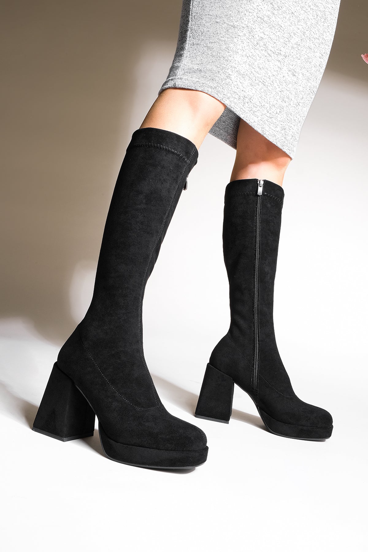 Kadın Streç Platform Topuklu Çizme Olena - Siyah Süet